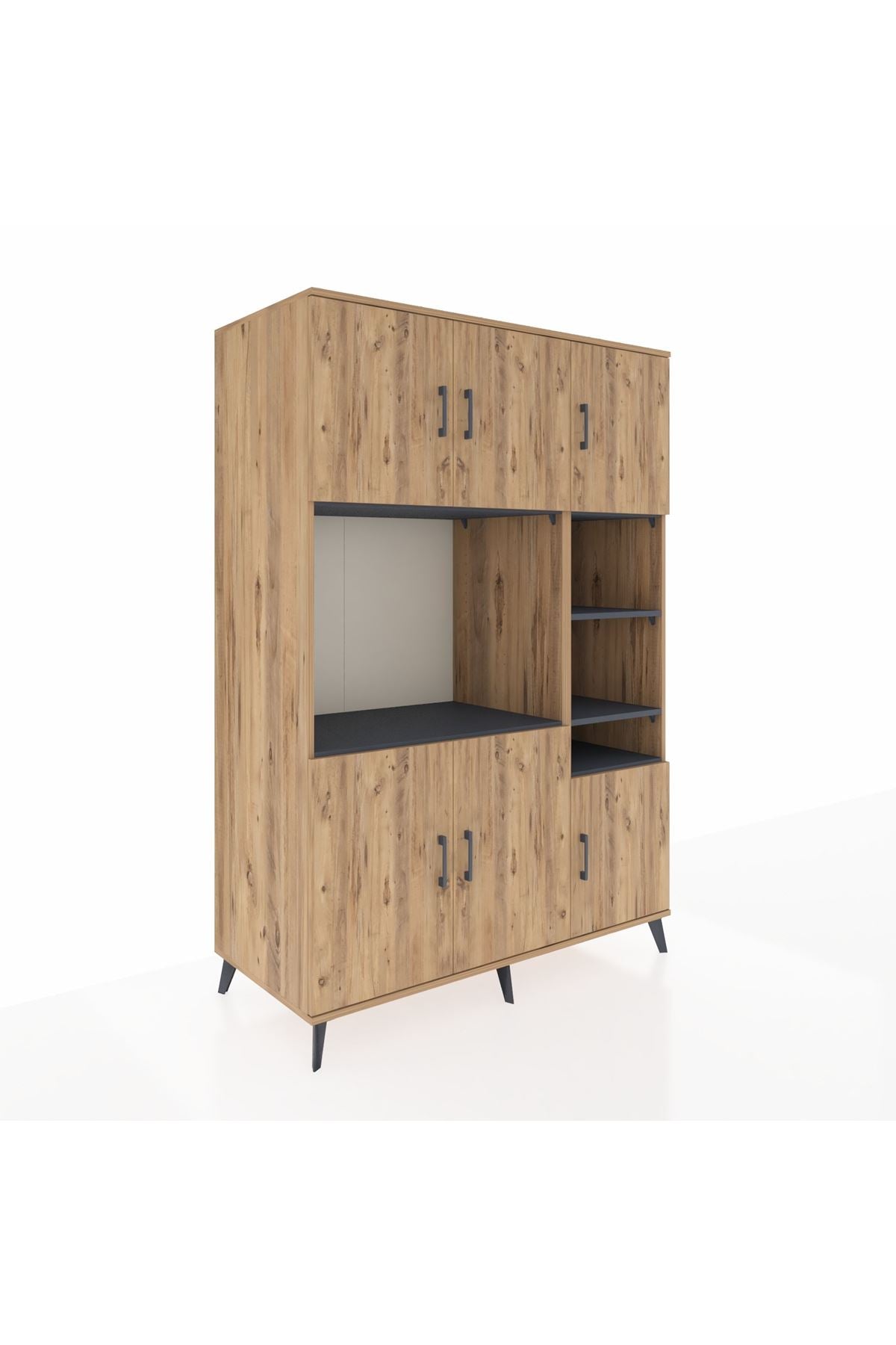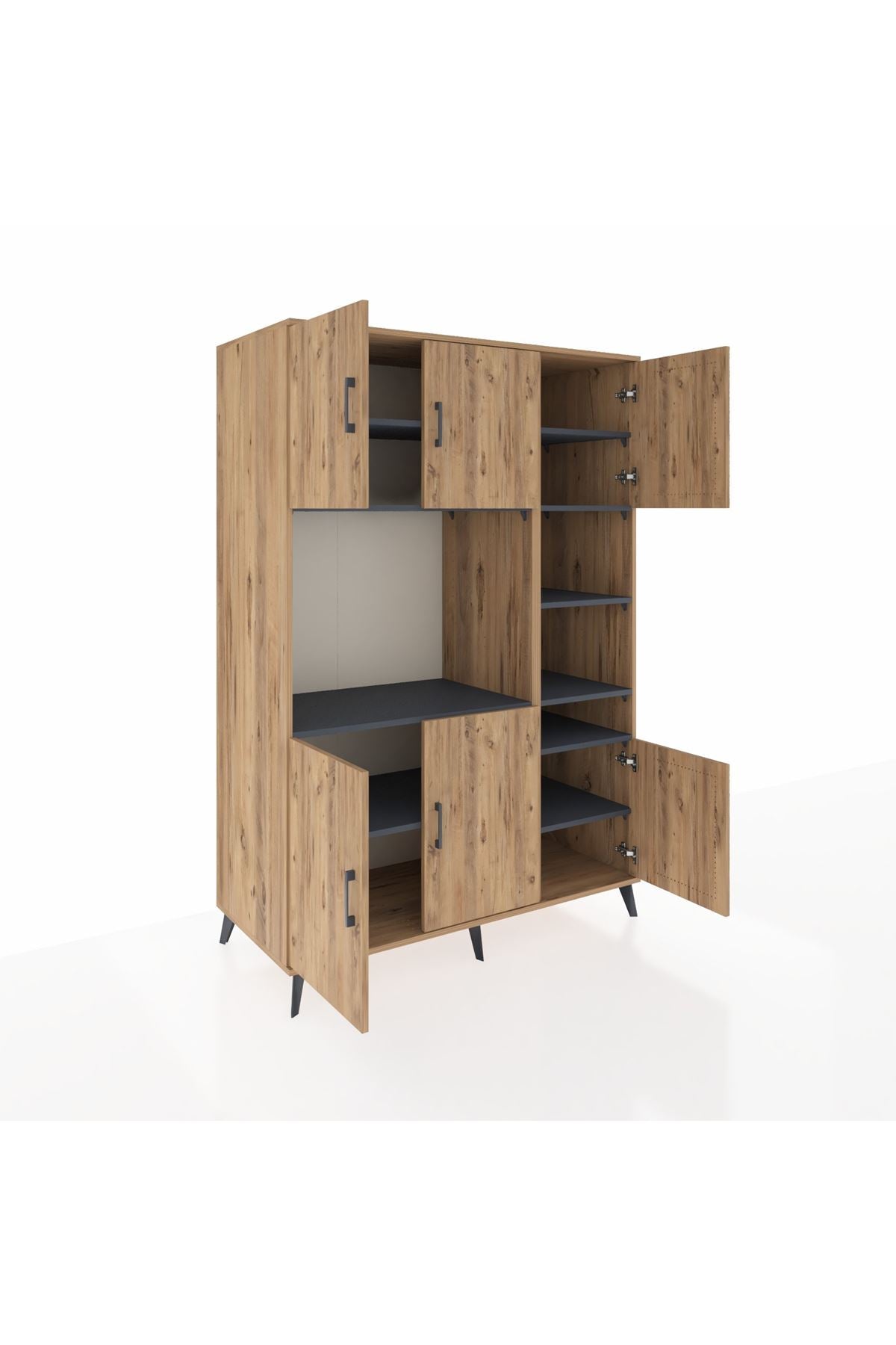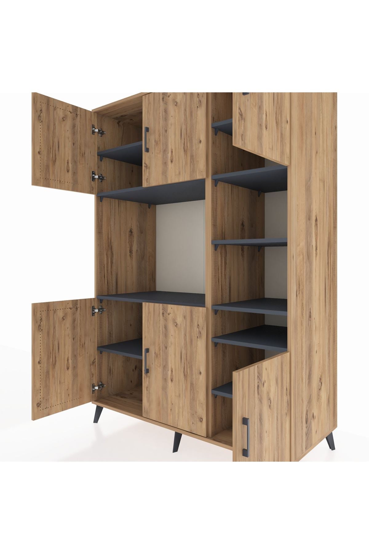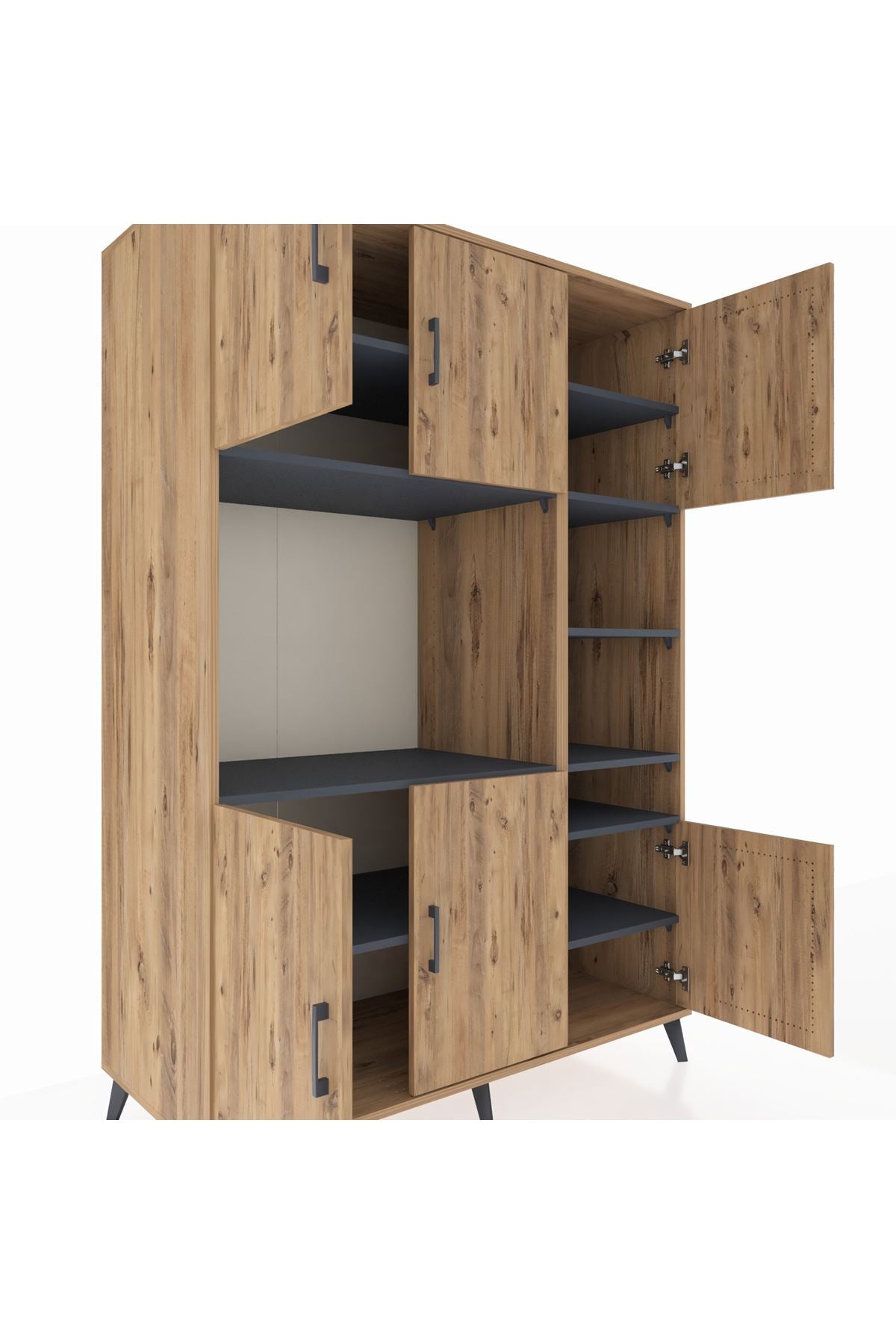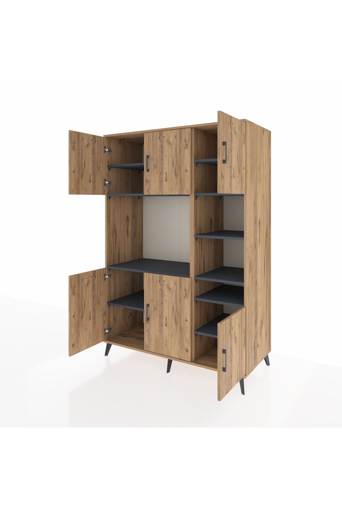 Kronos Dolap 10 Raflı 6 Kapaklı 132x59x195 Çam-Çam/Antrasit