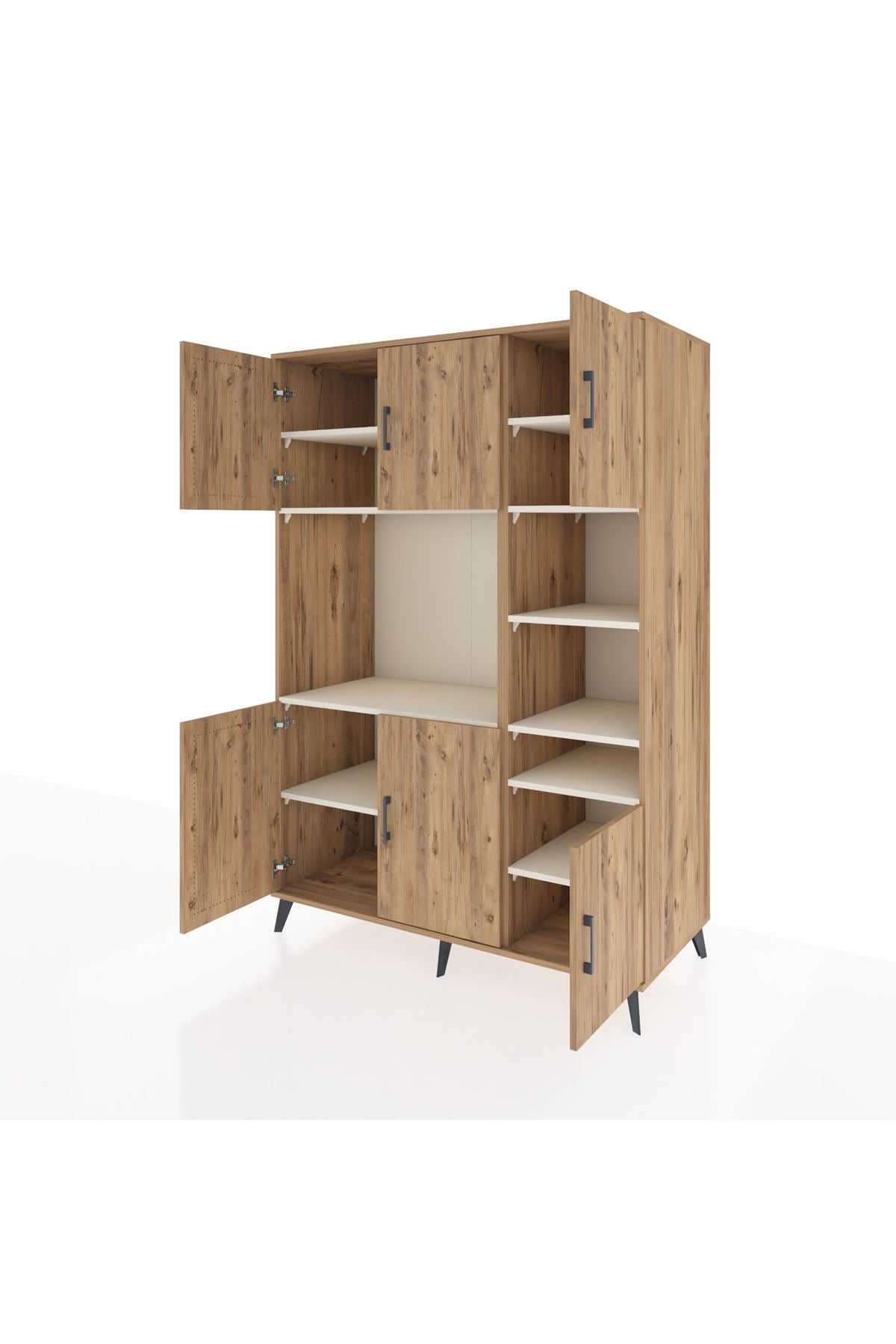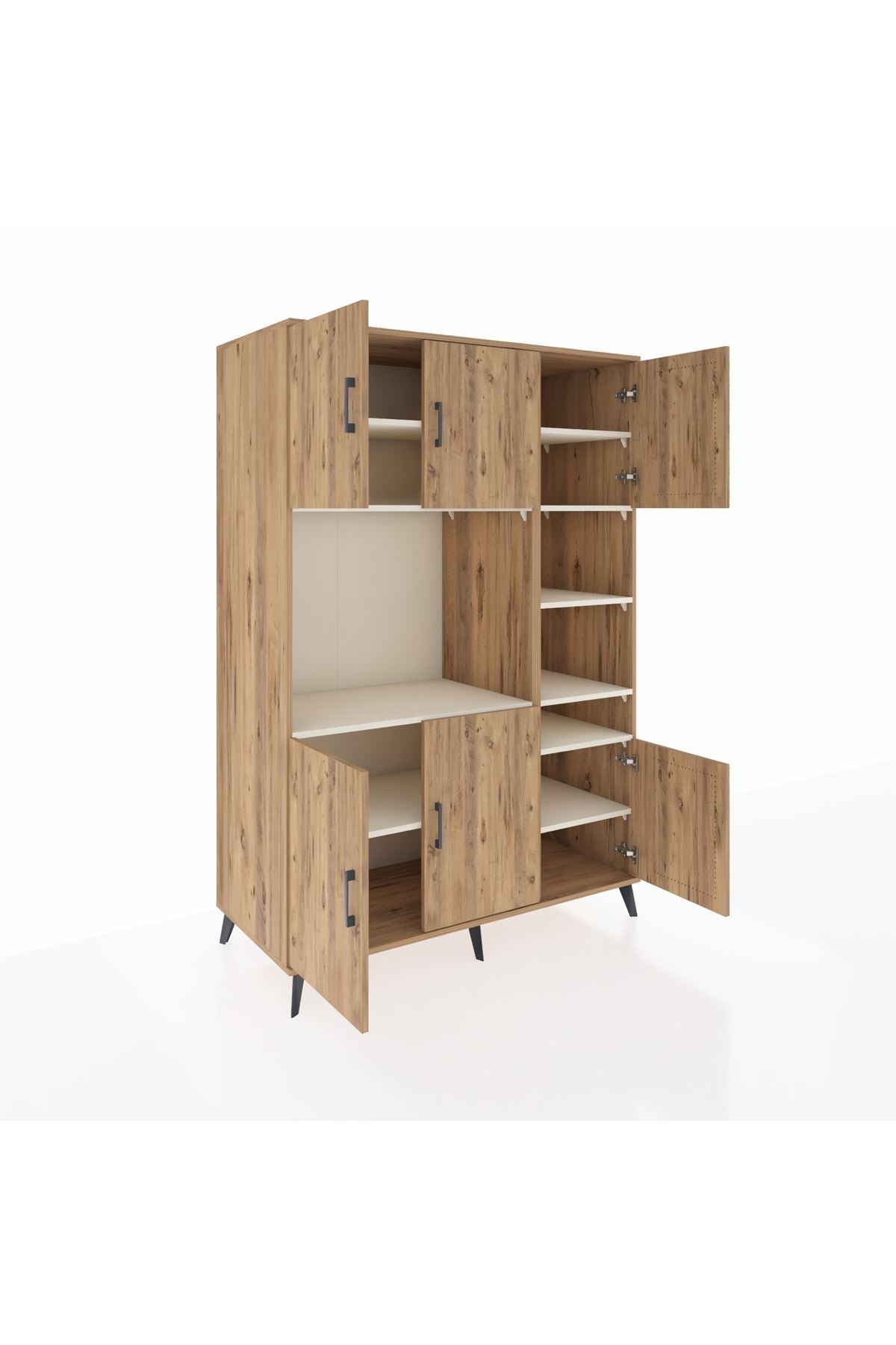 🪵 Kronos Dolap 10 Raflı 6 Kapaklı 132x59x195 Çam-Çam/Aytaşı ile Düzenin Zirvesine Ulaşın!