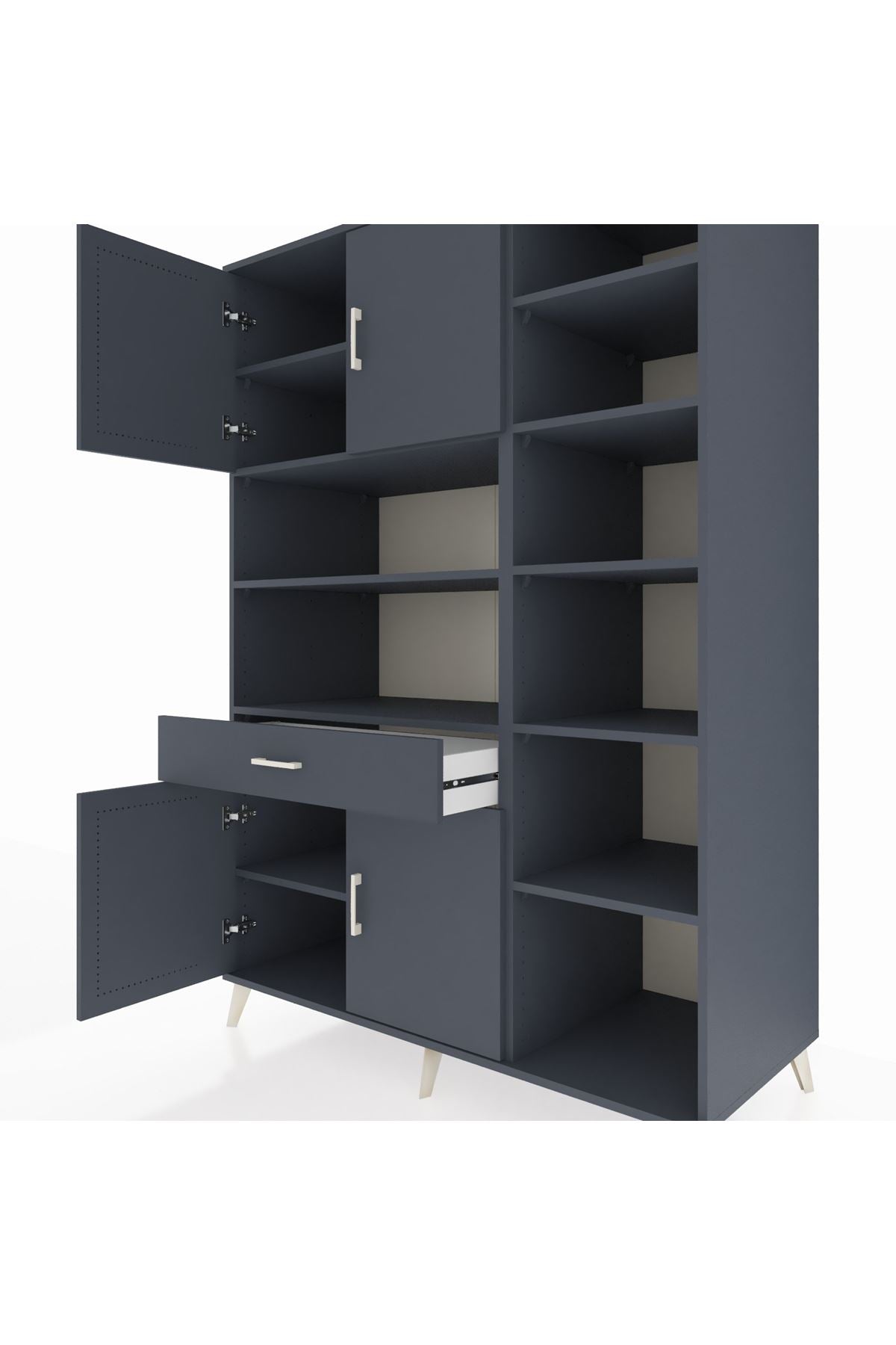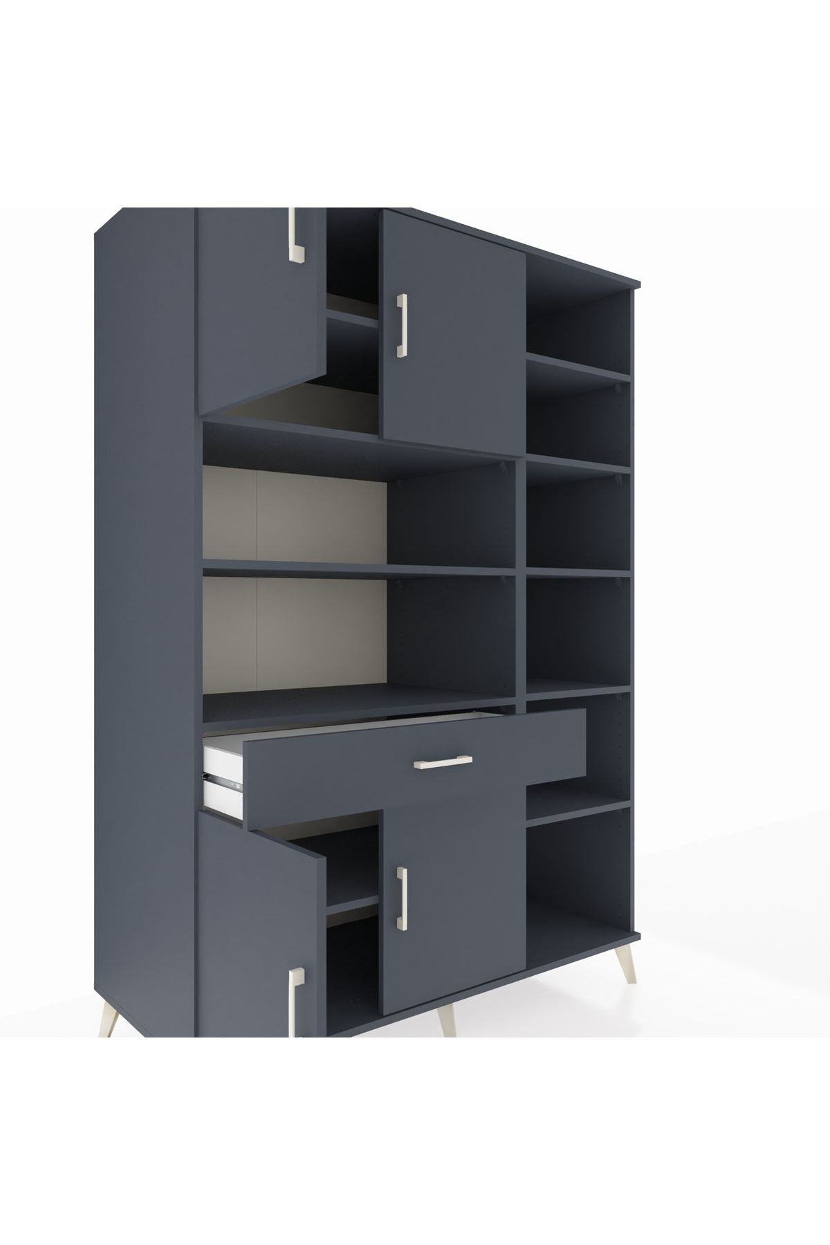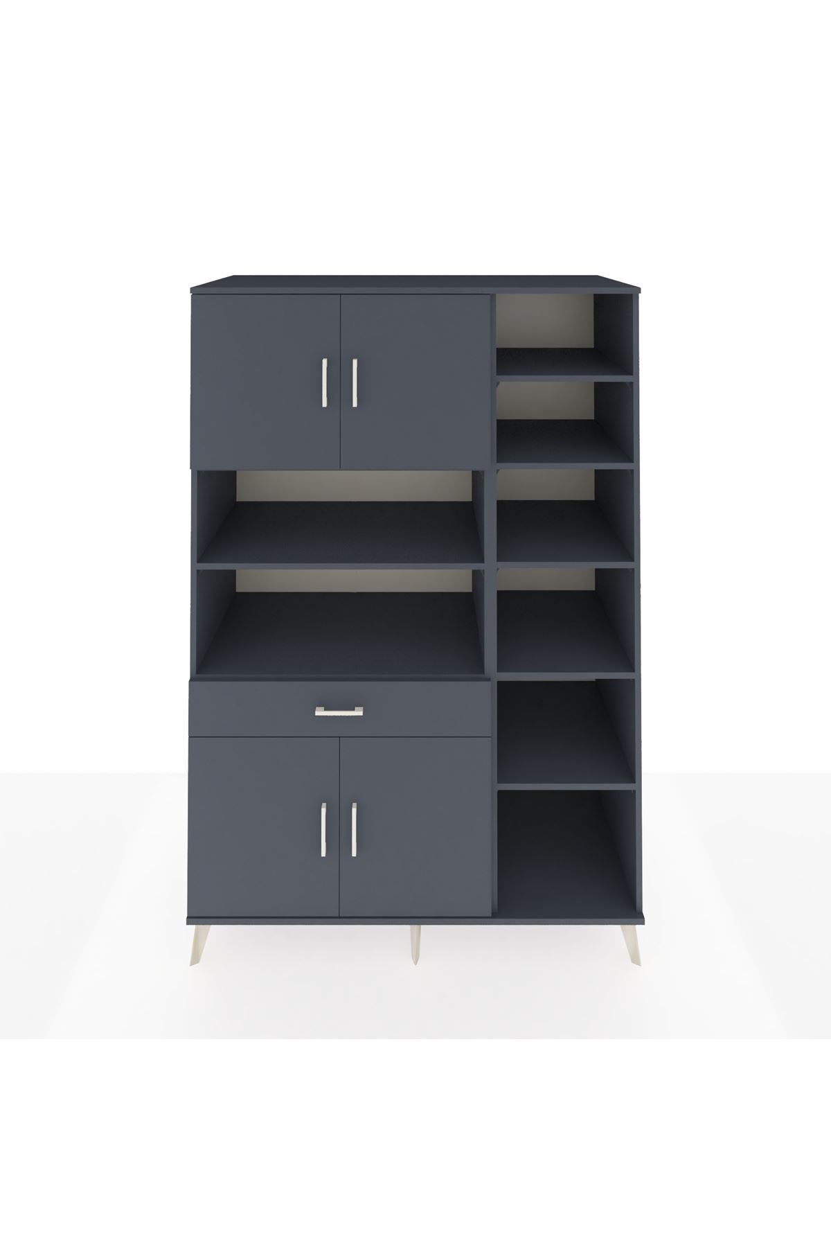 Kronos Dolap 10 Raflı Tek Çekmeceli 4 Kapaklı 132x59x195 Antrasit-Antrasit/Antrasit