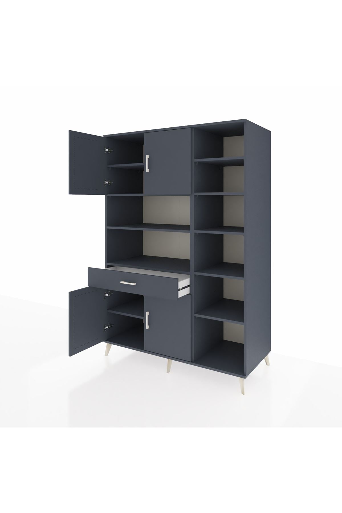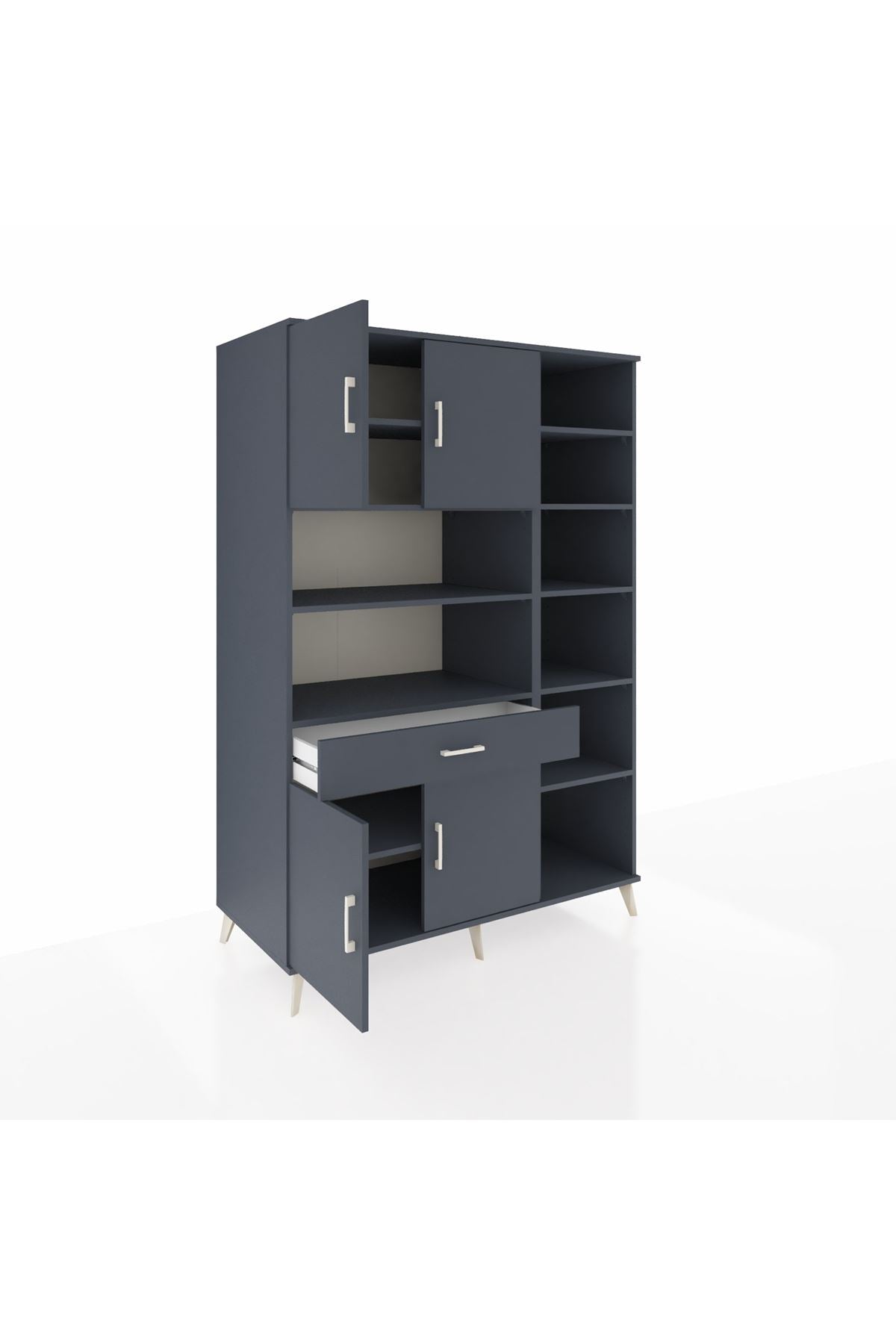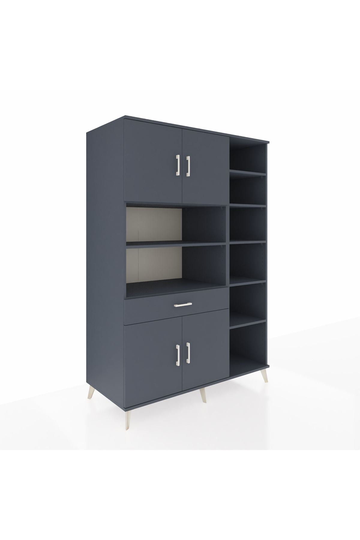 Kronos Dolap 10 Raflı Tek Çekmeceli 4 Kapaklı 132x59x195 Antrasit-Antrasit/Antrasit