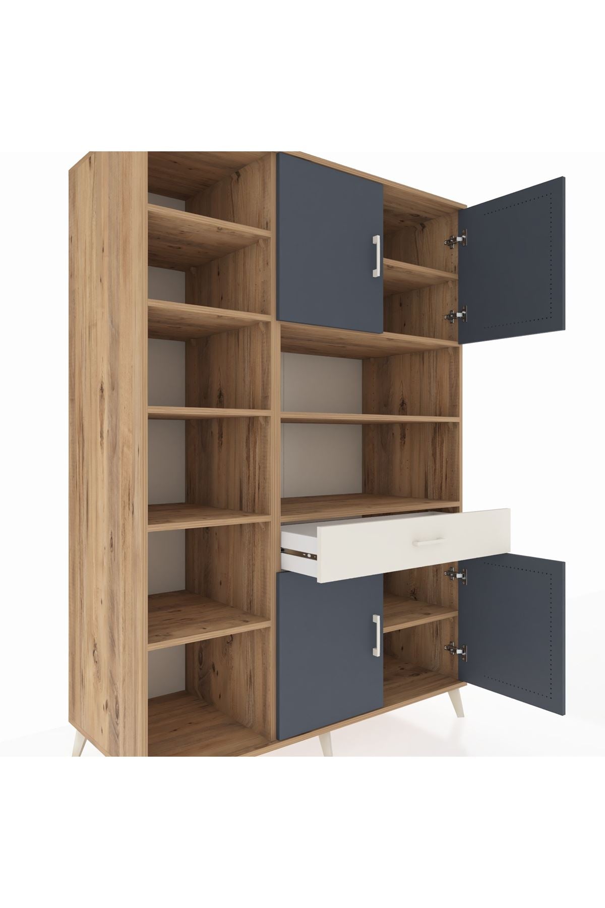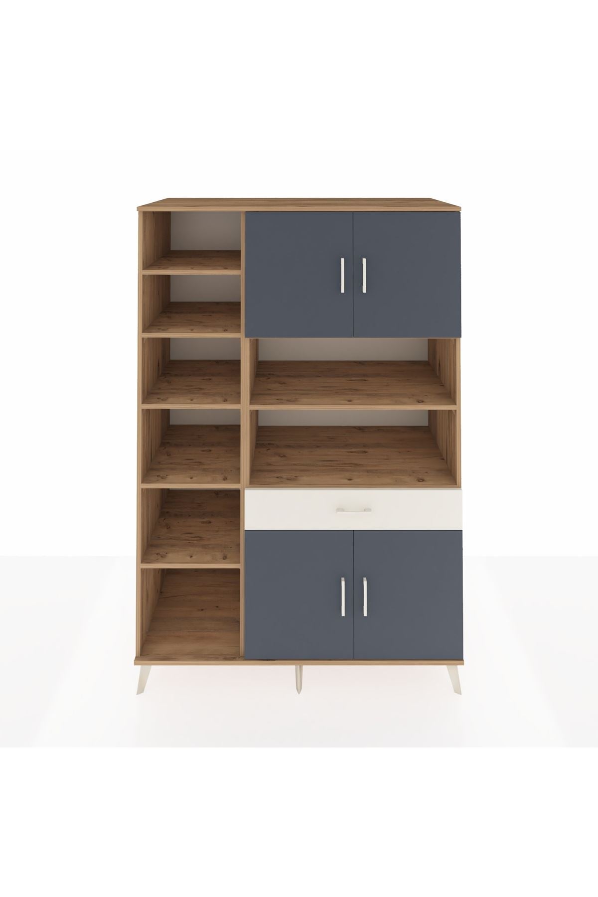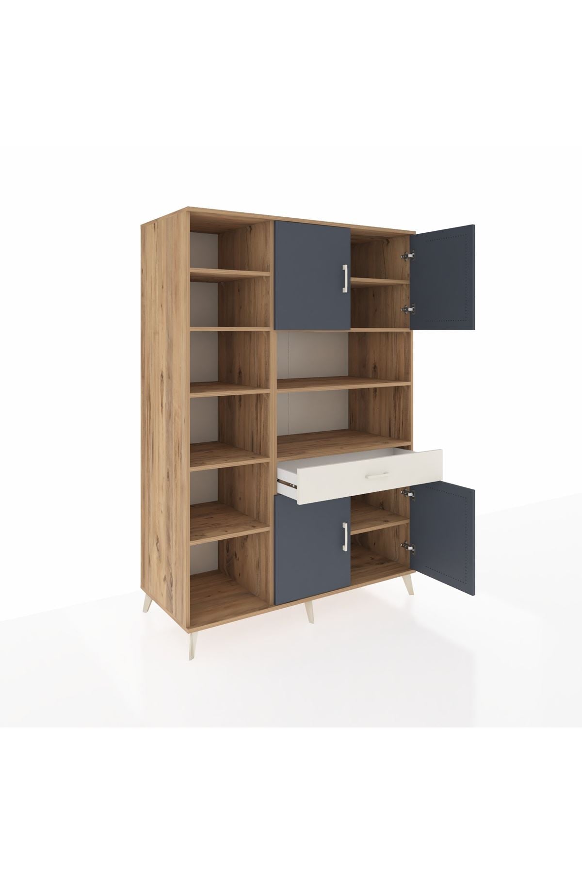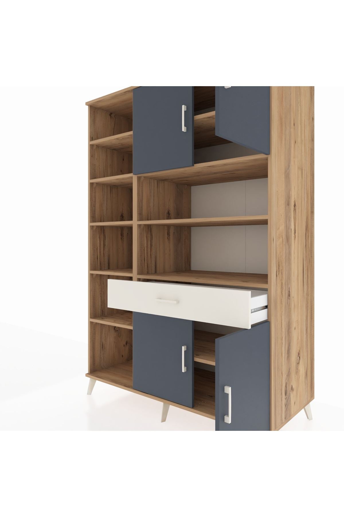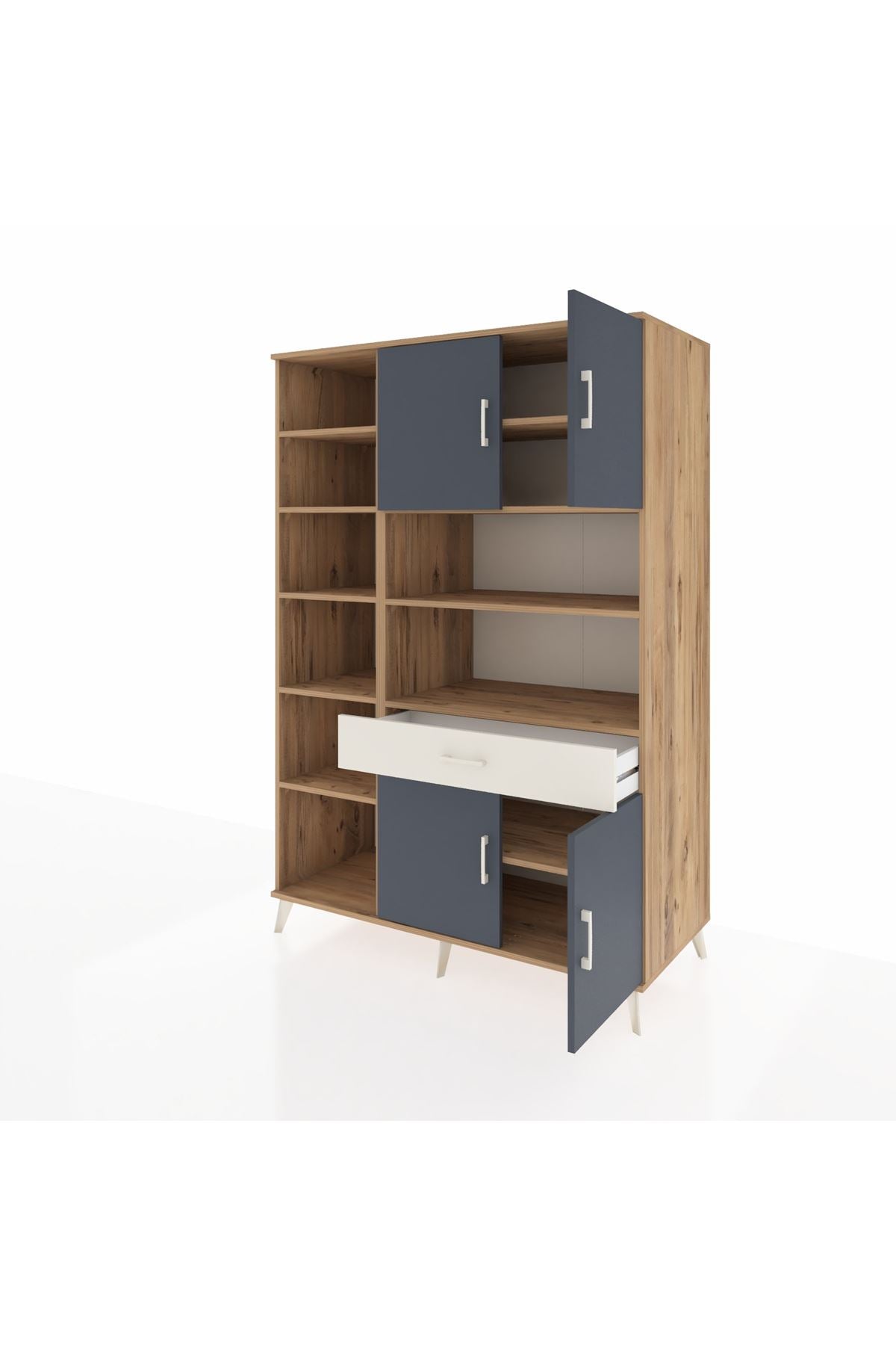 Kronos Dolap 10 Raflı Tek Çekmeceli 4 Kapaklı 132x59x195 Çam-Antrasit/Aytaşı