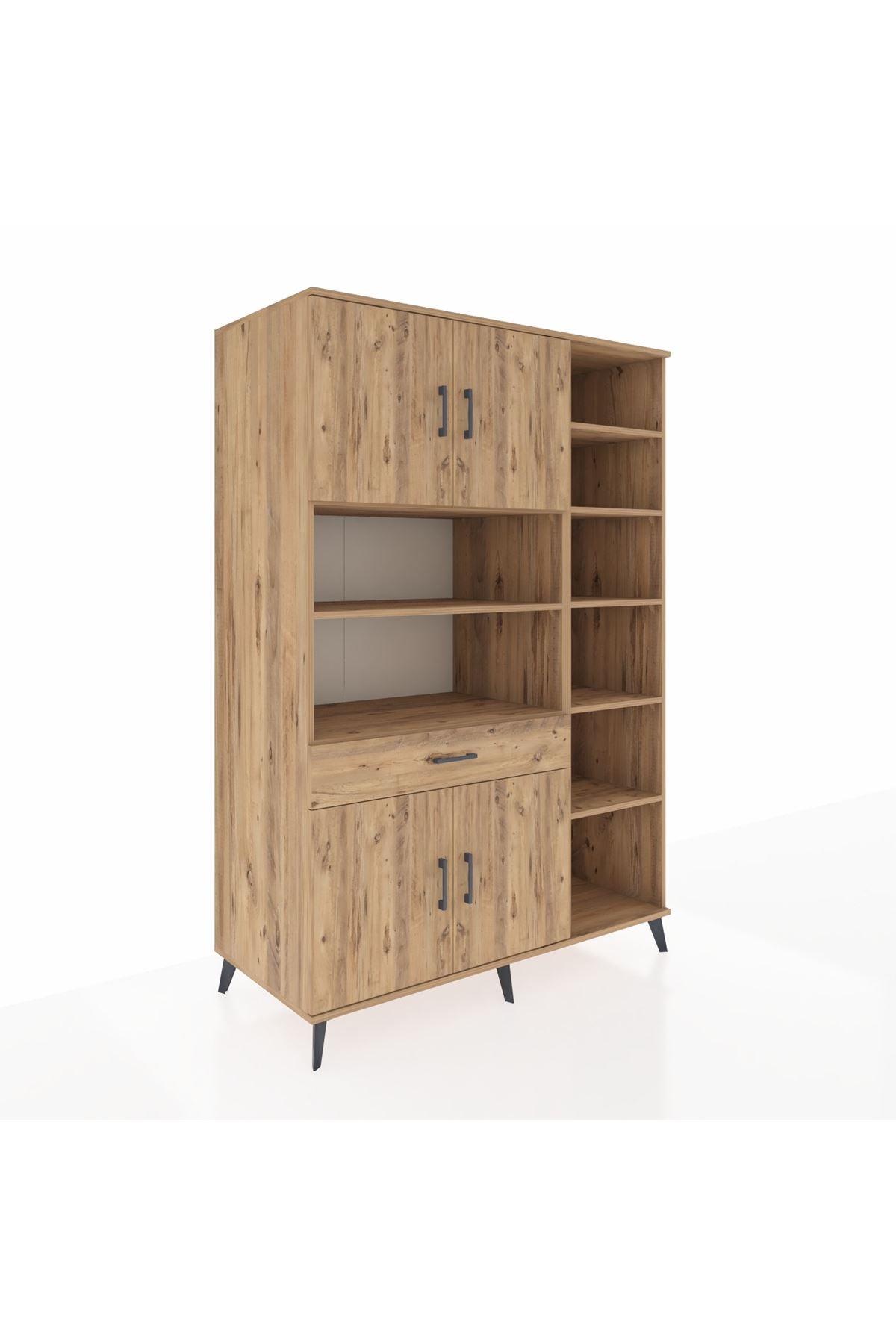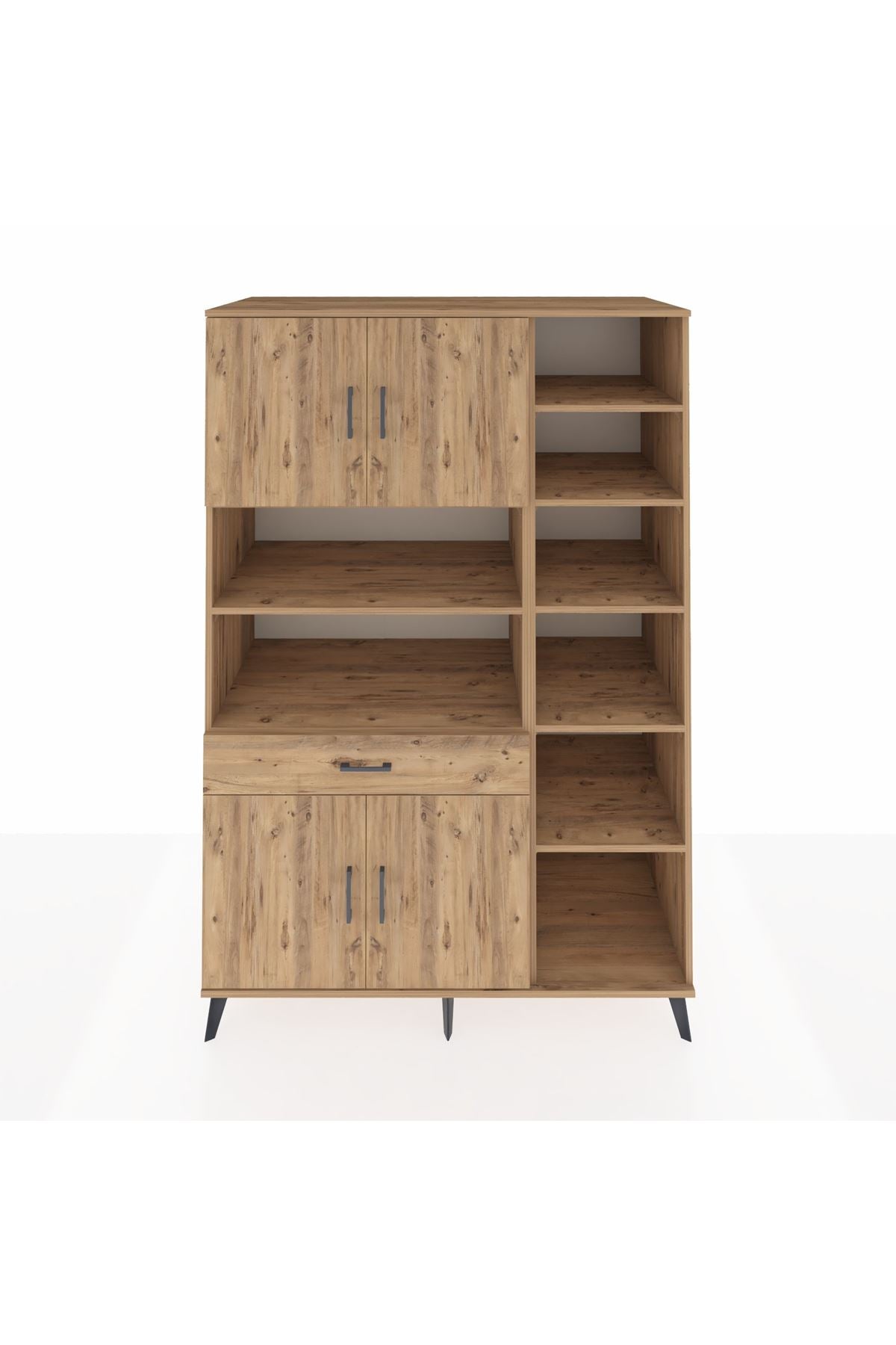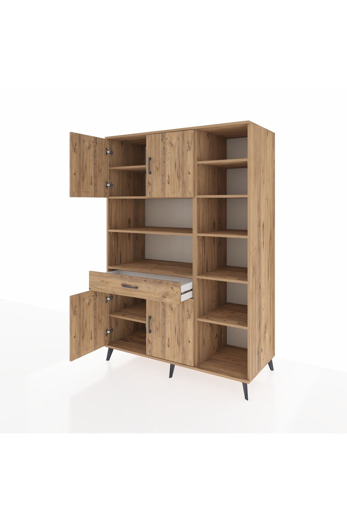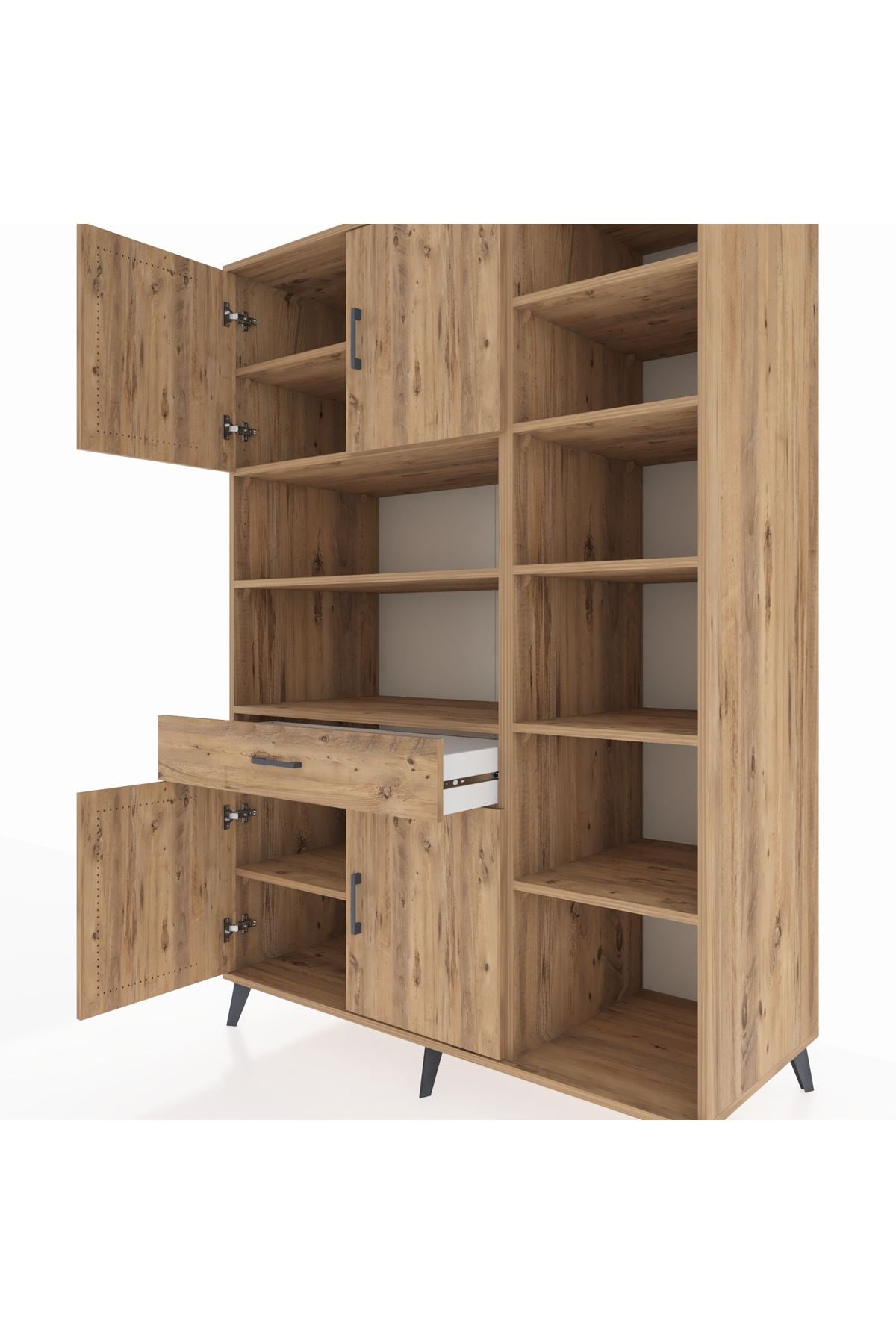 Kronos Dolap 10 Raflı Tek Çekmeceli 4 Kapaklı 132x59x195 Çam-Çam/Çam