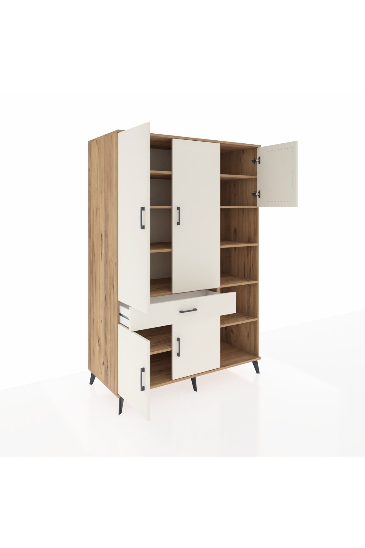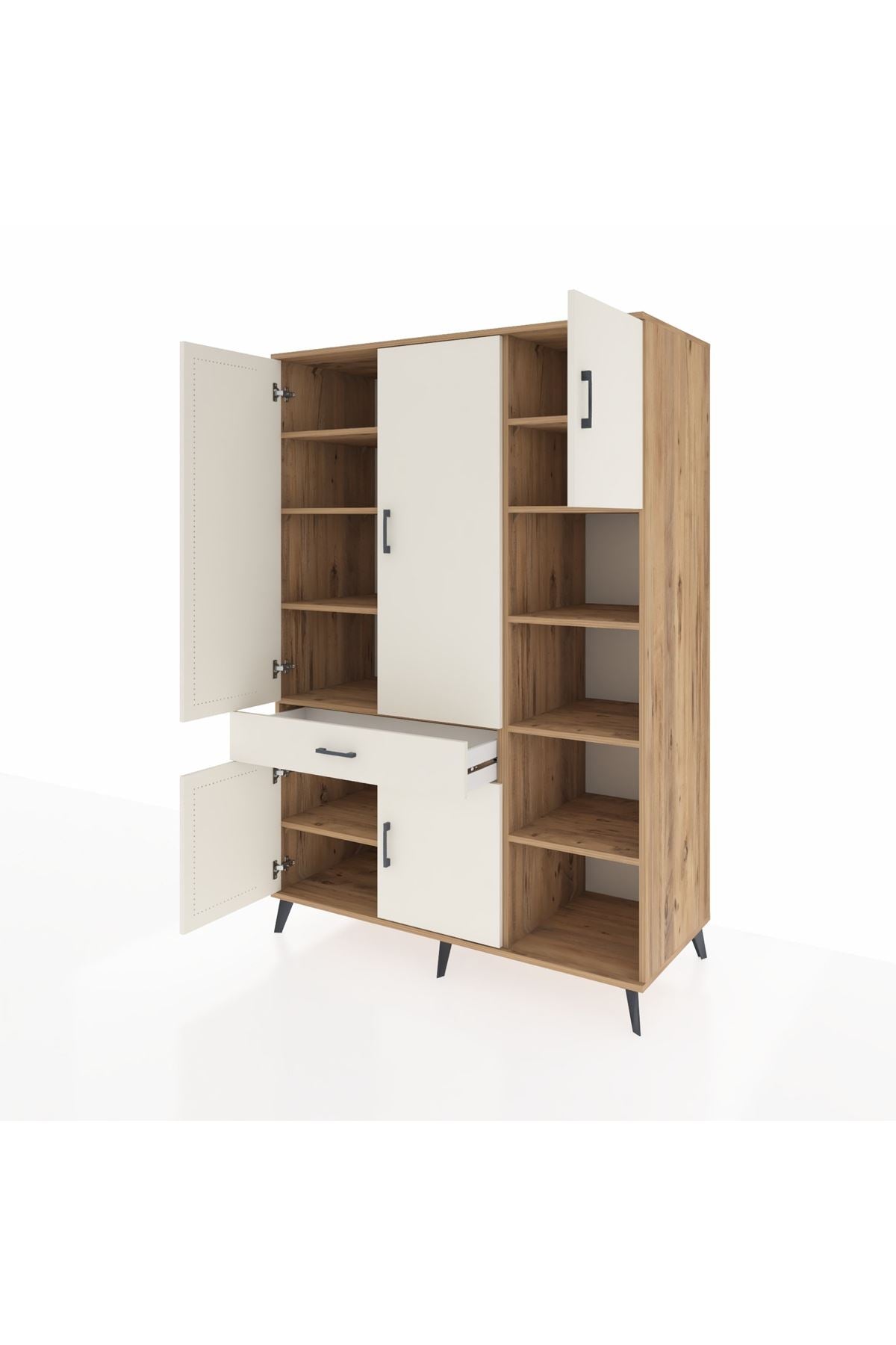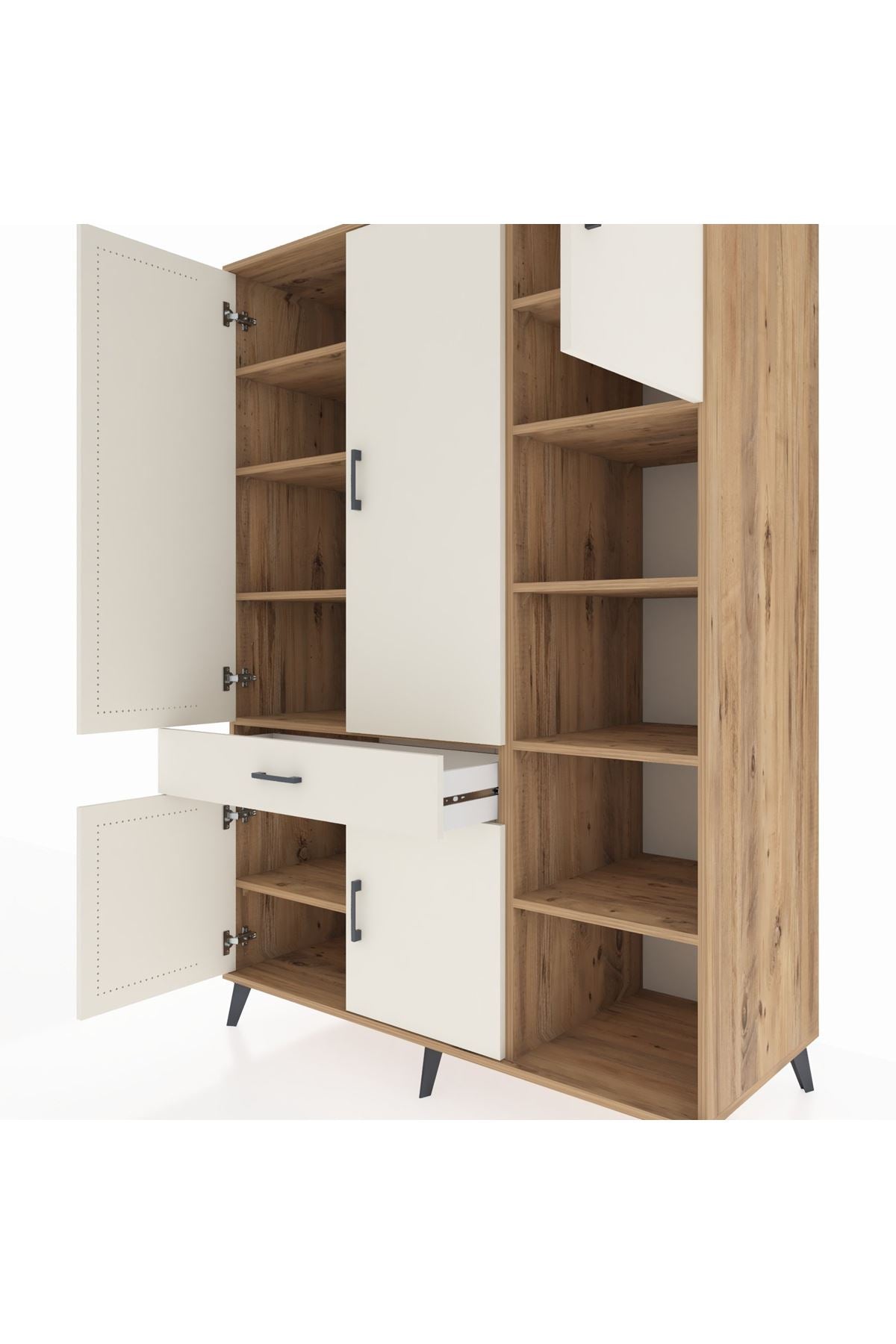 Kronos Dolap 10 Raflı Tek Çekmeceli 5 Kapaklı 132x59x195 Çam-Aytaşı/Aytaşı