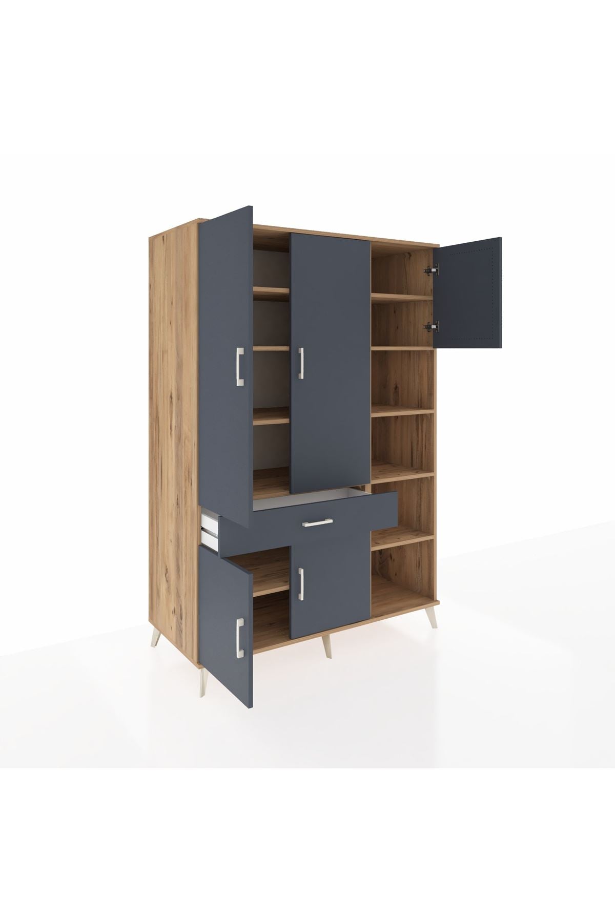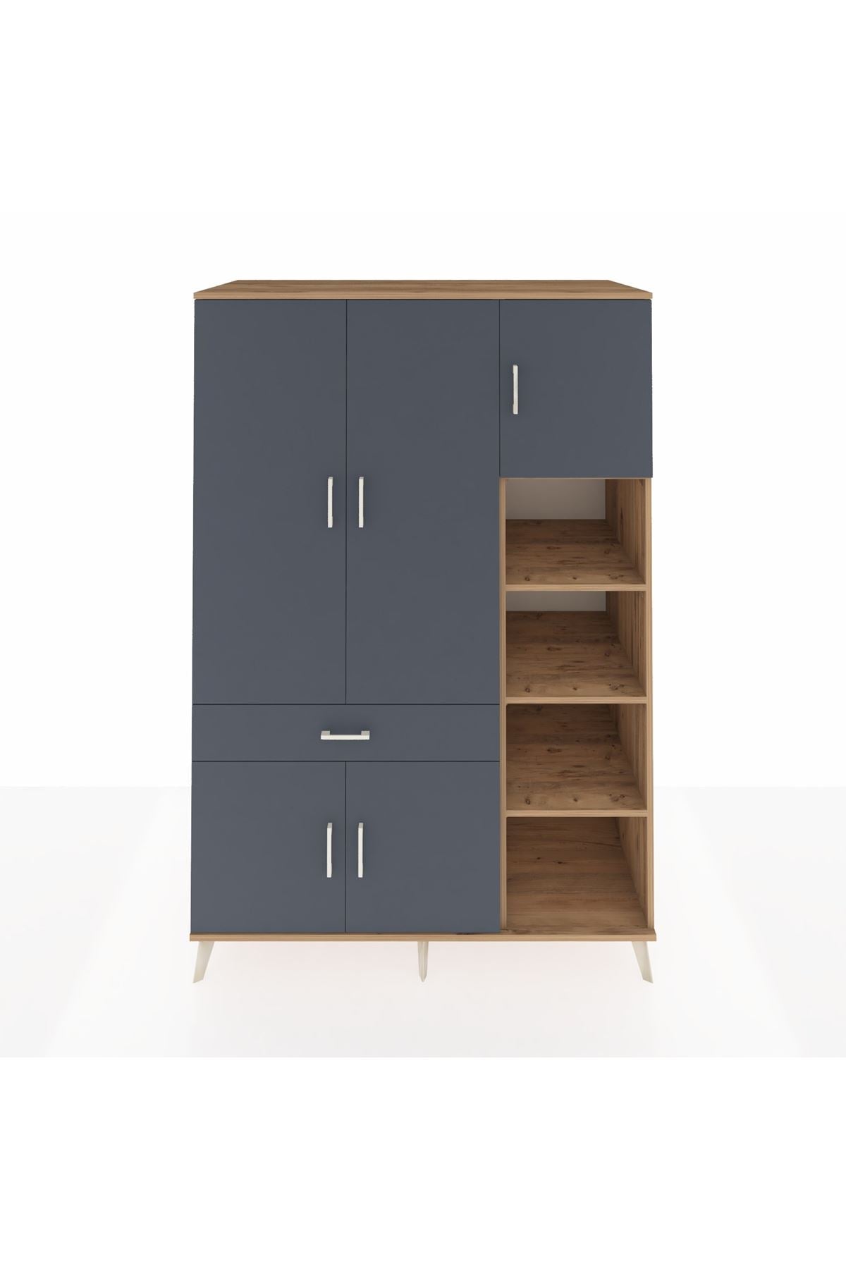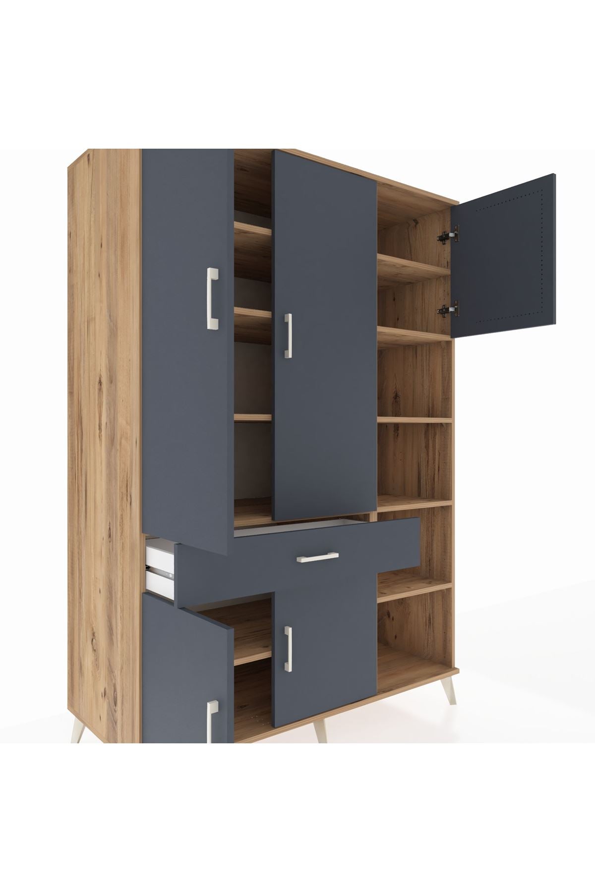 Kronos Dolap 10 Raflı Tek Çekmeceli 5 Kapaklı 132x59x195 Çam-Antrasit/Antrasit