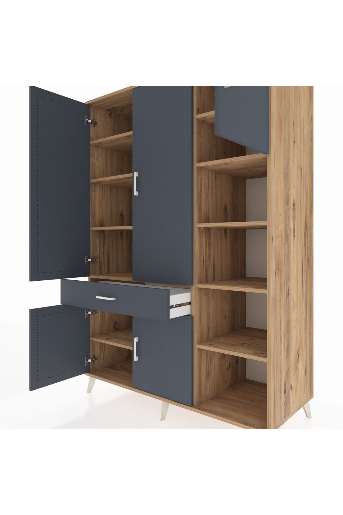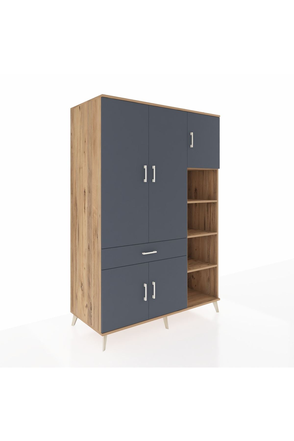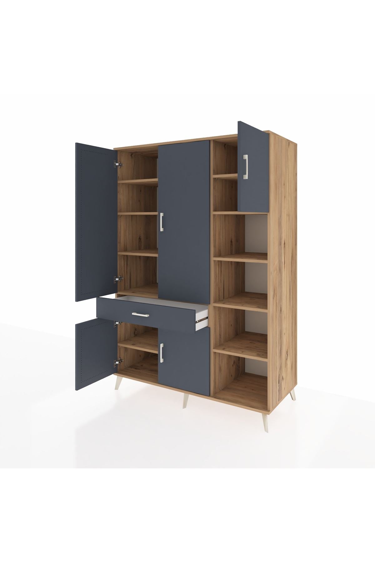 Kronos Dolap 10 Raflı Tek Çekmeceli 5 Kapaklı 132x59x195 Çam-Antrasit/Antrasit
