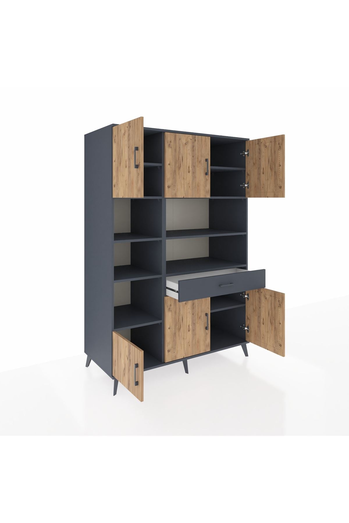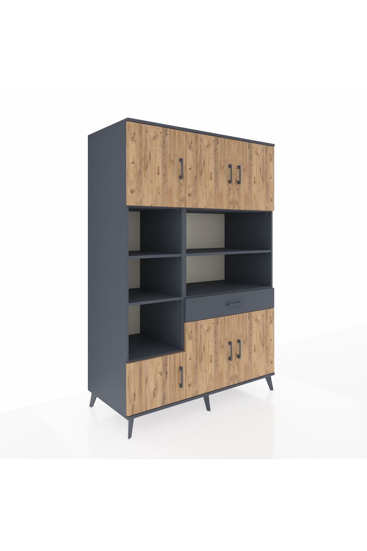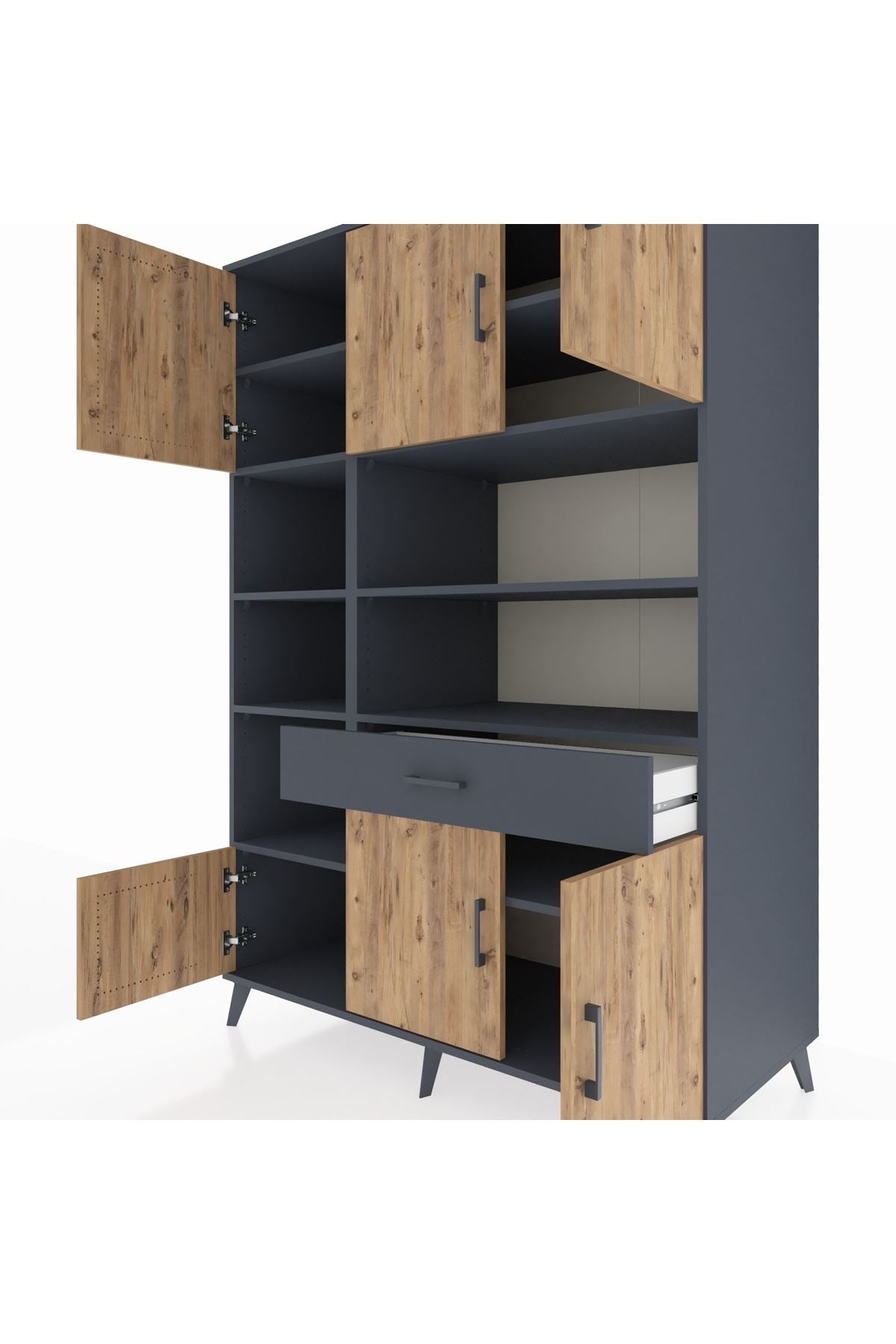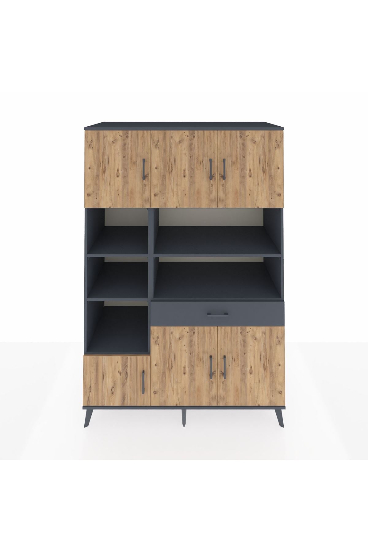 Kronos Dolap 10 Raflı Tek Çekmeceli 6 Kapaklı 132x59x195 Antrasit-Çam/Antrasit