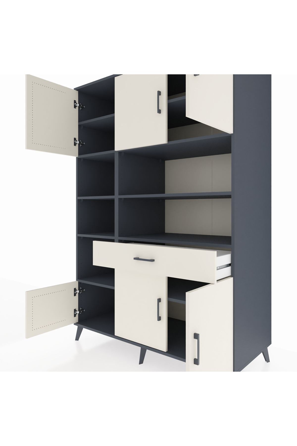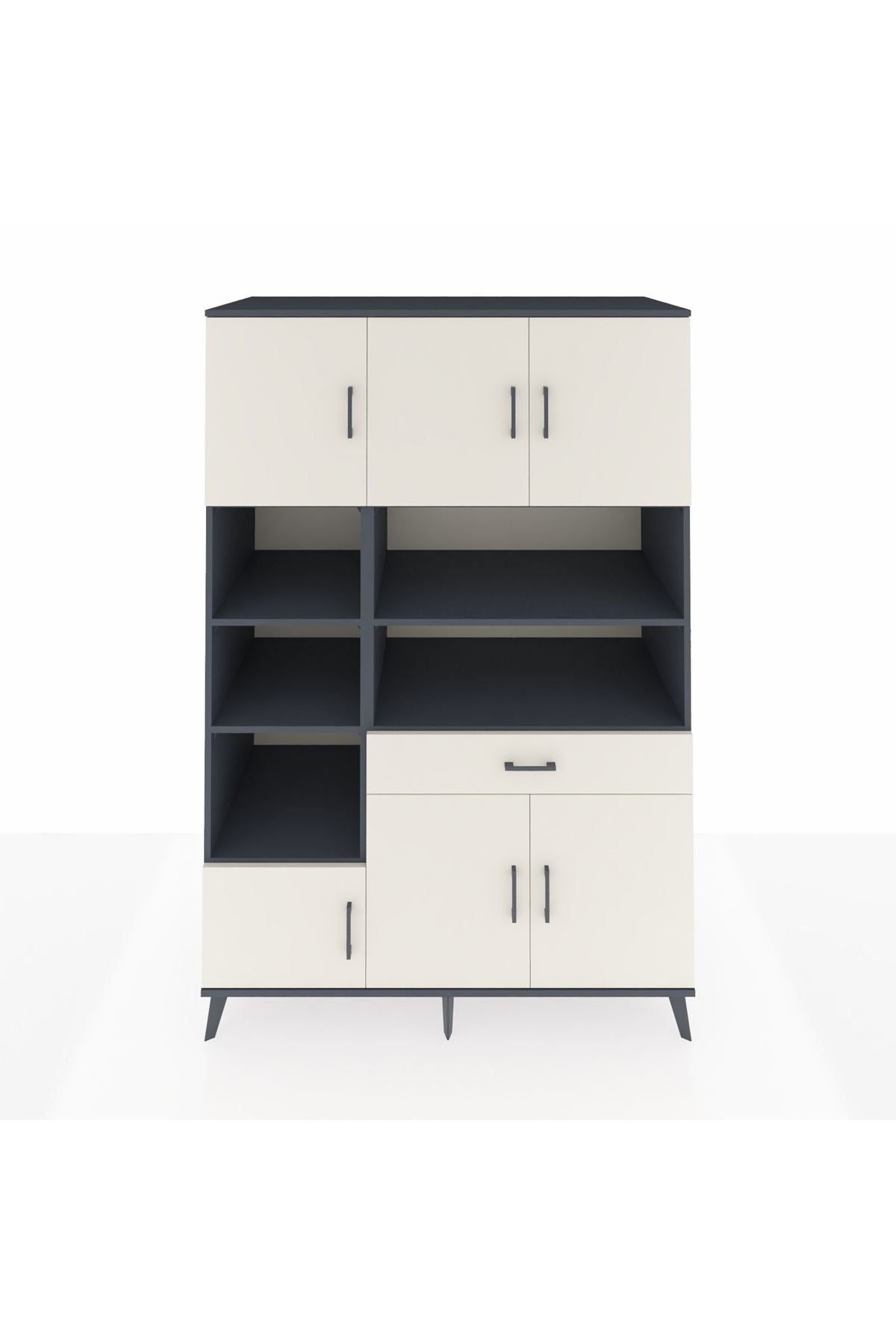 - Ofis dolabı: Genişliğiyle çalışma odasında çok amaçlı saklama sunar.