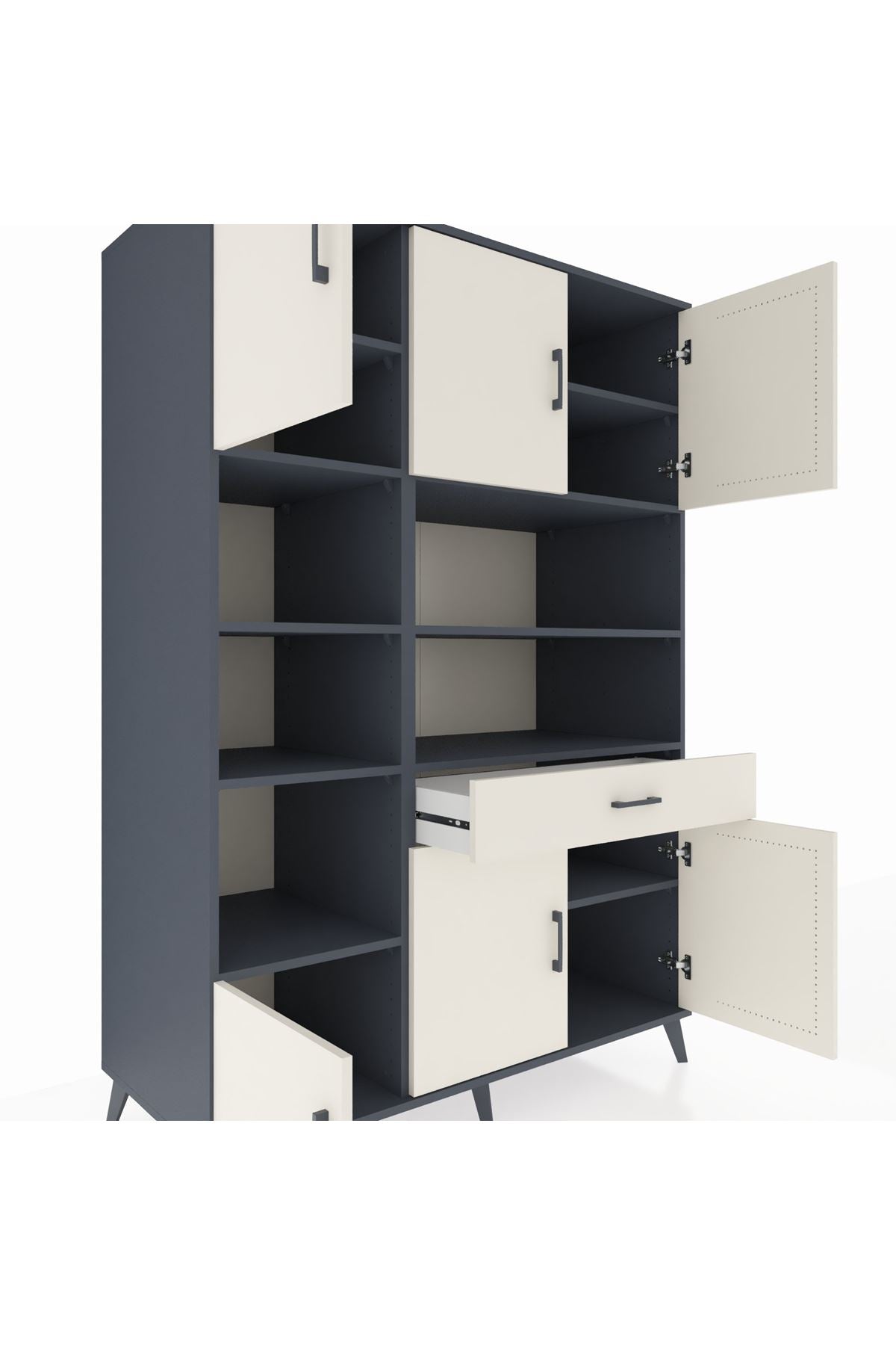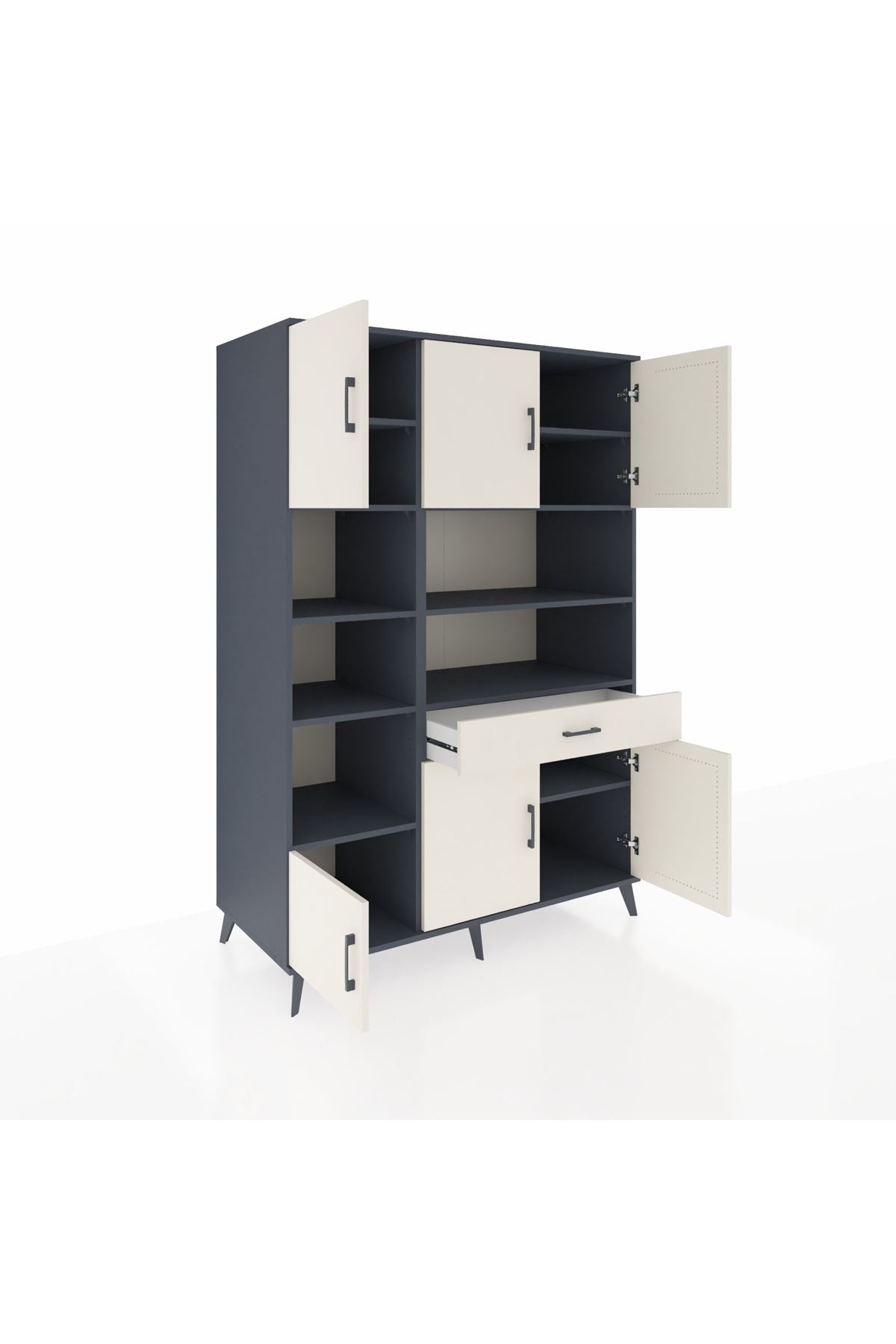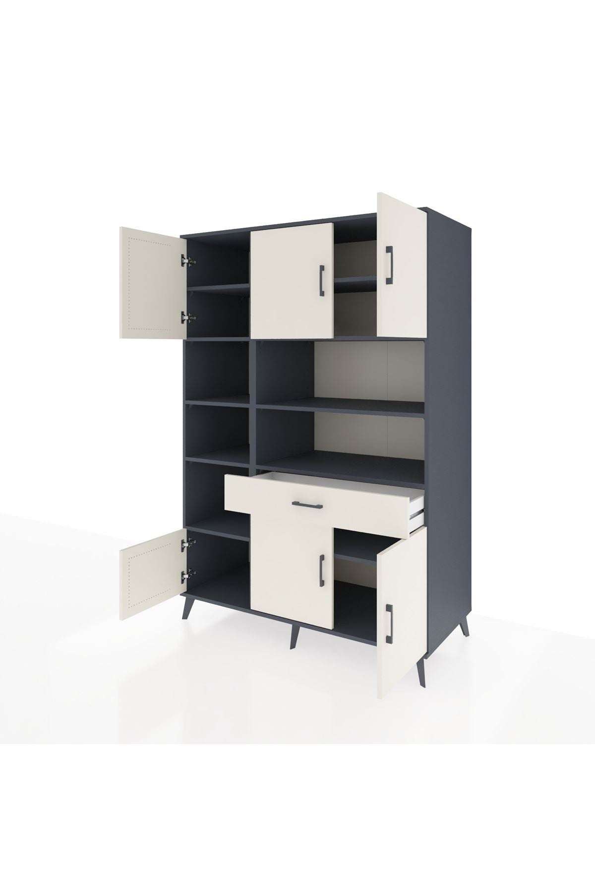10 rafı, 6 kapaklı geniş iç hacmi ve tek çekmecesiyle evinizdeki tüm eşyalar için ideal bir saklama çözümü sunar 📚🧥 Genişliği 132 cm, derinliği 59 cm, yüksekliği ise 195 cm’dir Özellikle büyük aileler, ofisler ve çok eşyalı yaşam alanları için vazgeçilmezdir