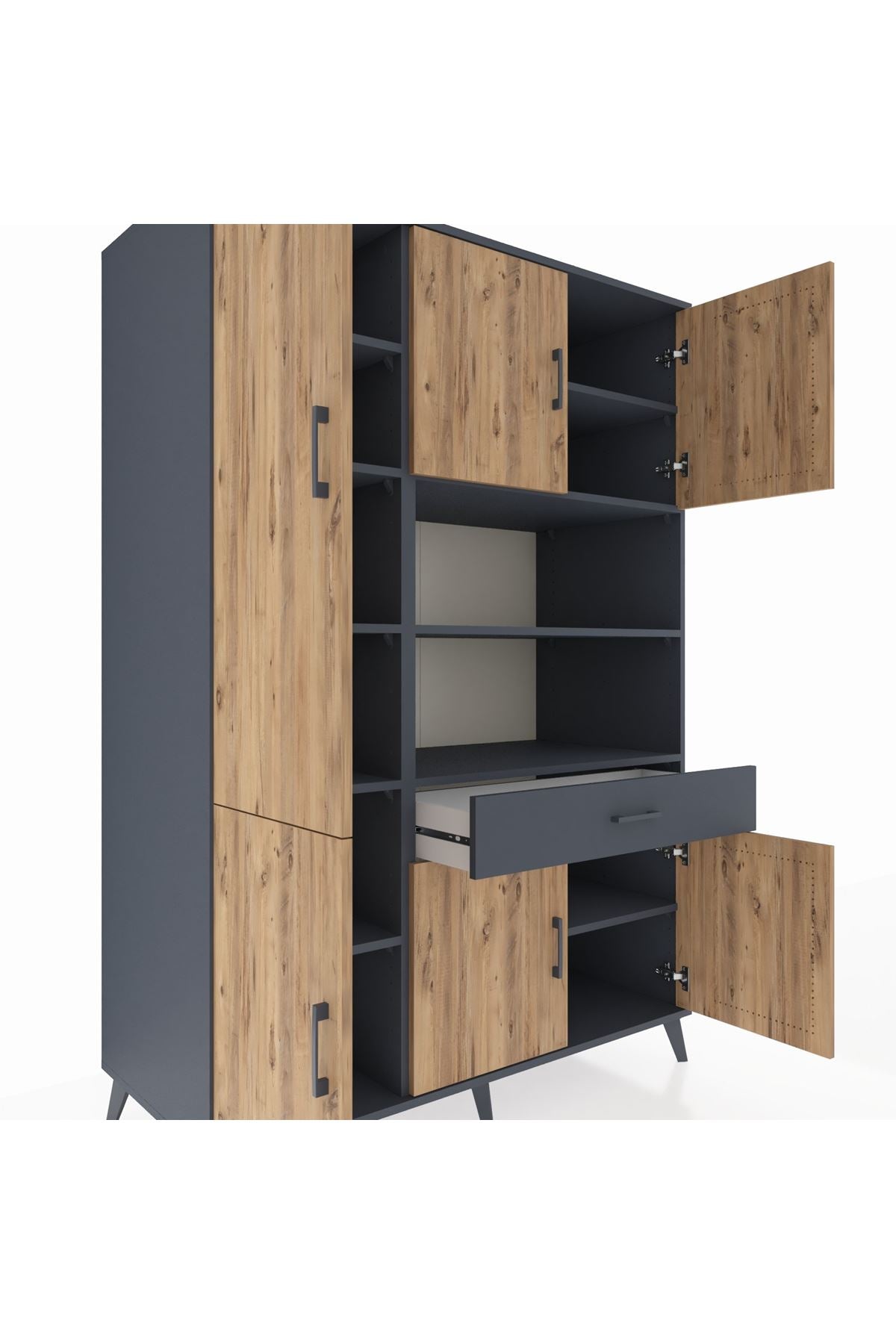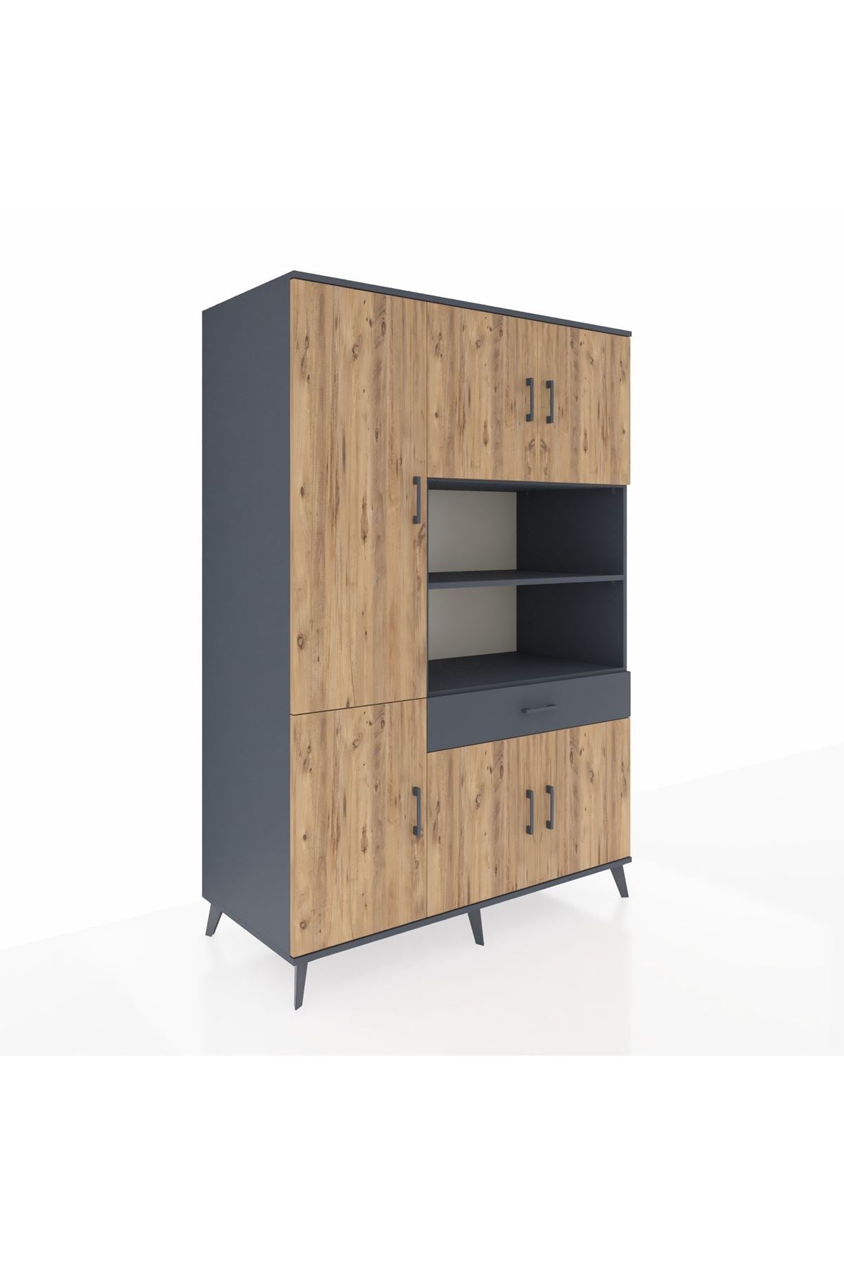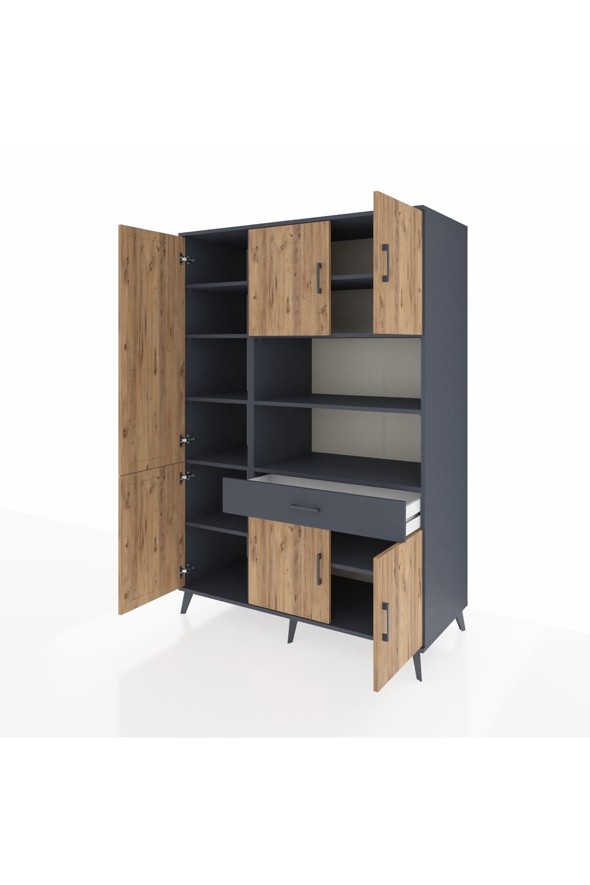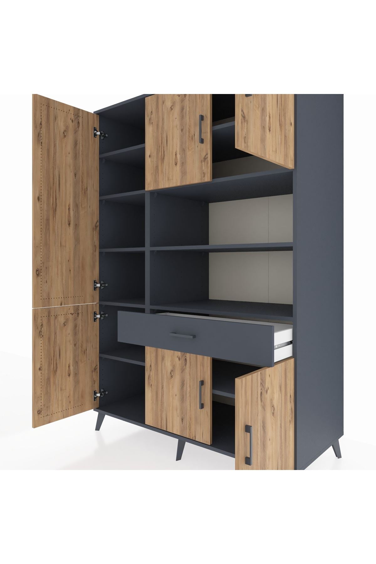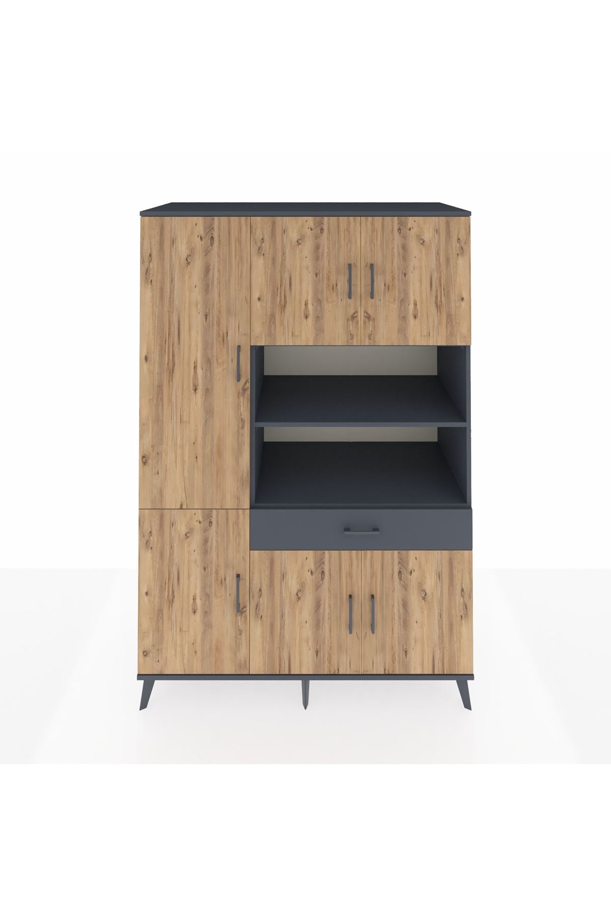 Kronos Dolap 10 Raflı Tek Çekmeceli 6 Kapaklı 132x59x195 Antrasit-Çam/Antrasit