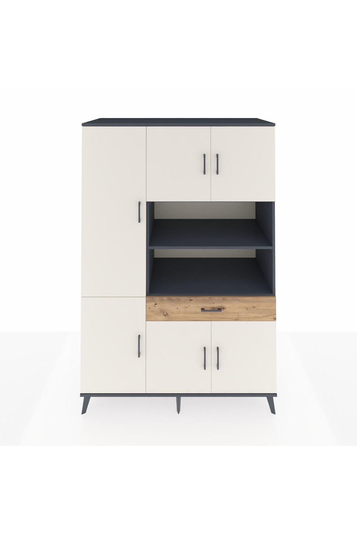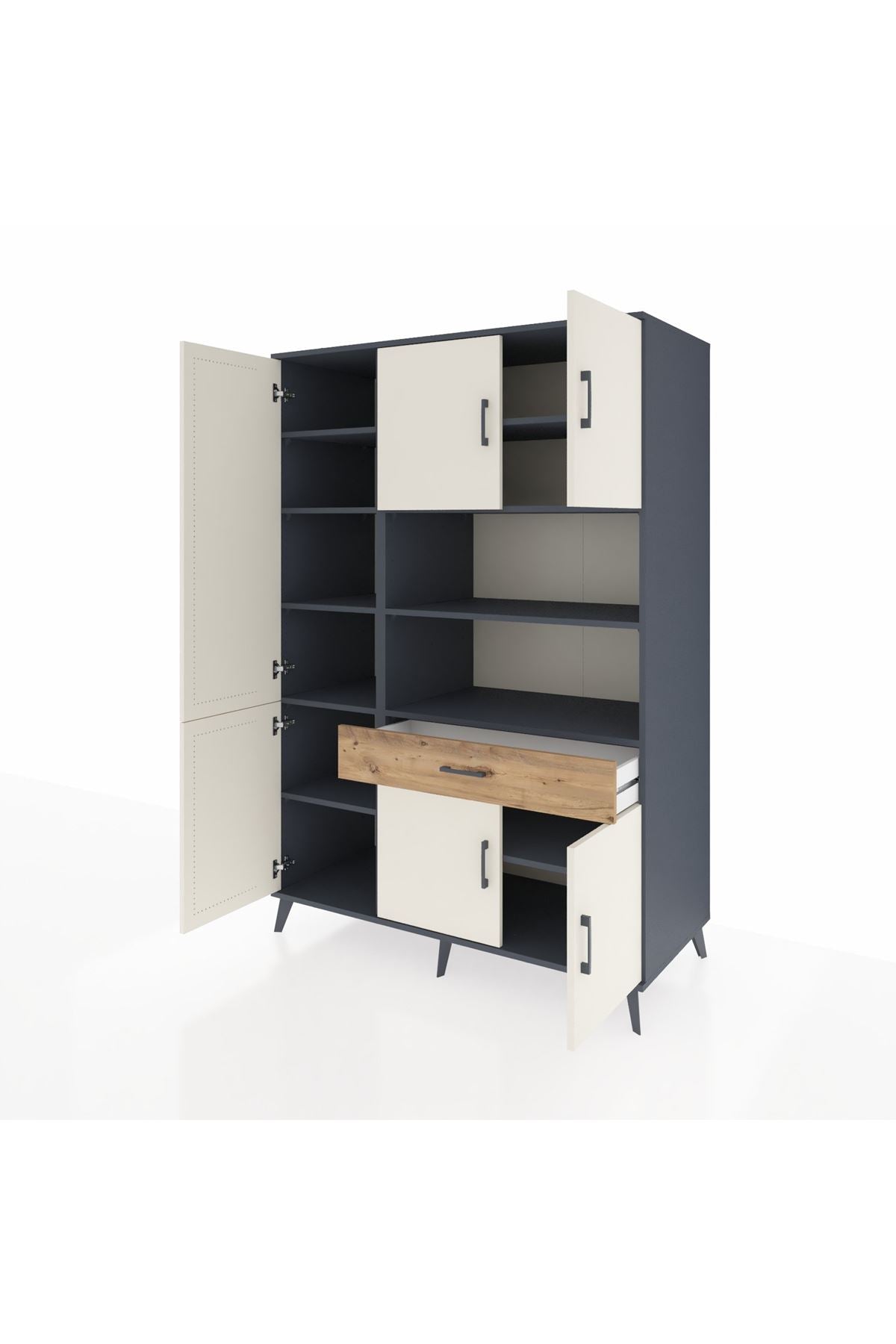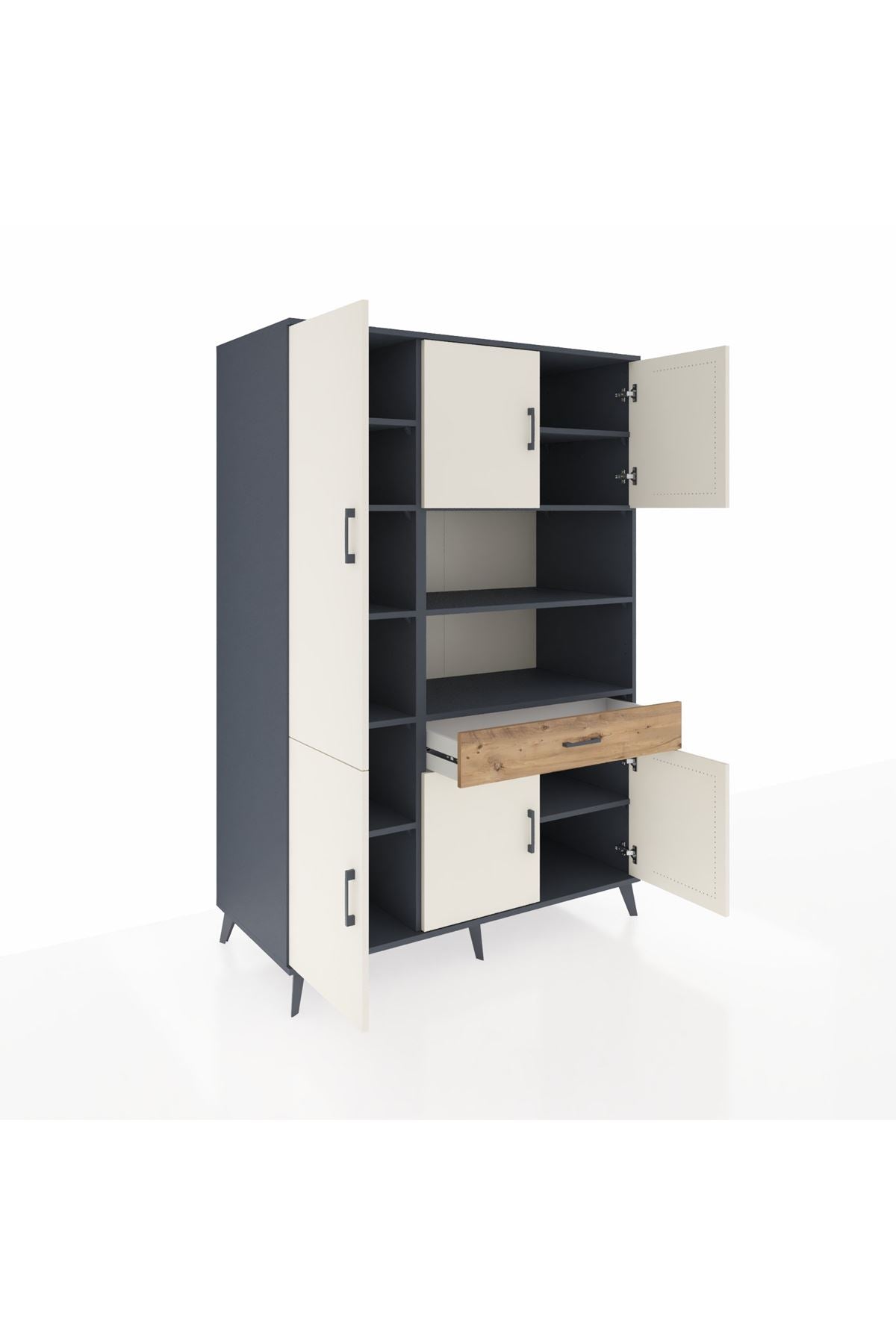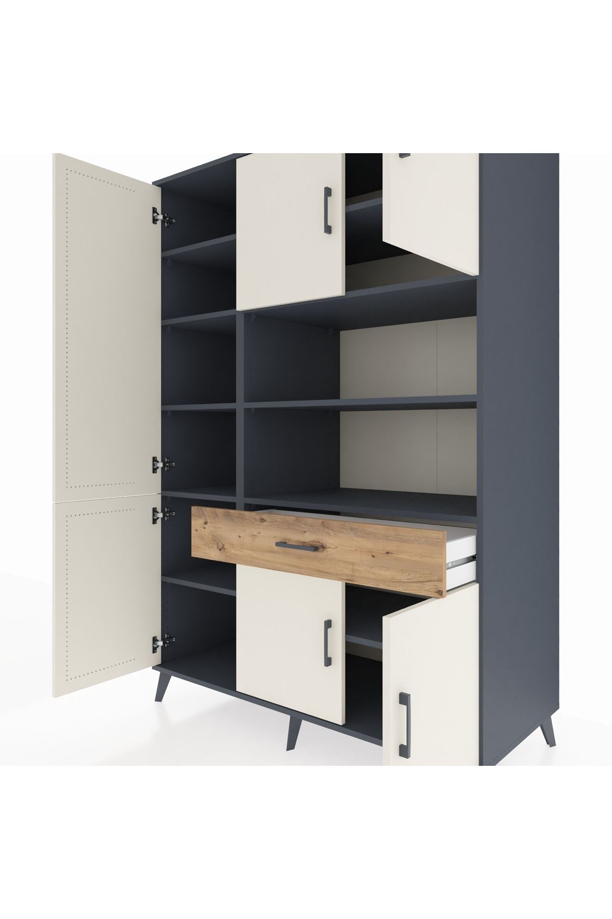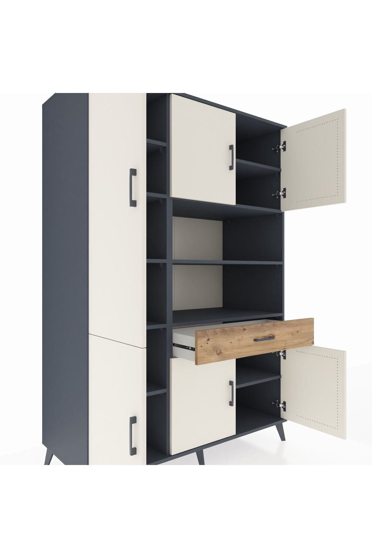 Kronos Dolap, işlevselliği ve zarafeti bir araya getiriyor. 10 geniş rafı, 1 kullanışlı çekmecesi ve 6 kapaklı yapısı ile büyük aileler ve yoğun depolama ihtiyacı olanlar için mükemmel bir çözüm sunuyor. Modern antrasit gövde, aytaşı ve atlas çam renkli kapaklarla zamansız bir şıklık yakalıyor.