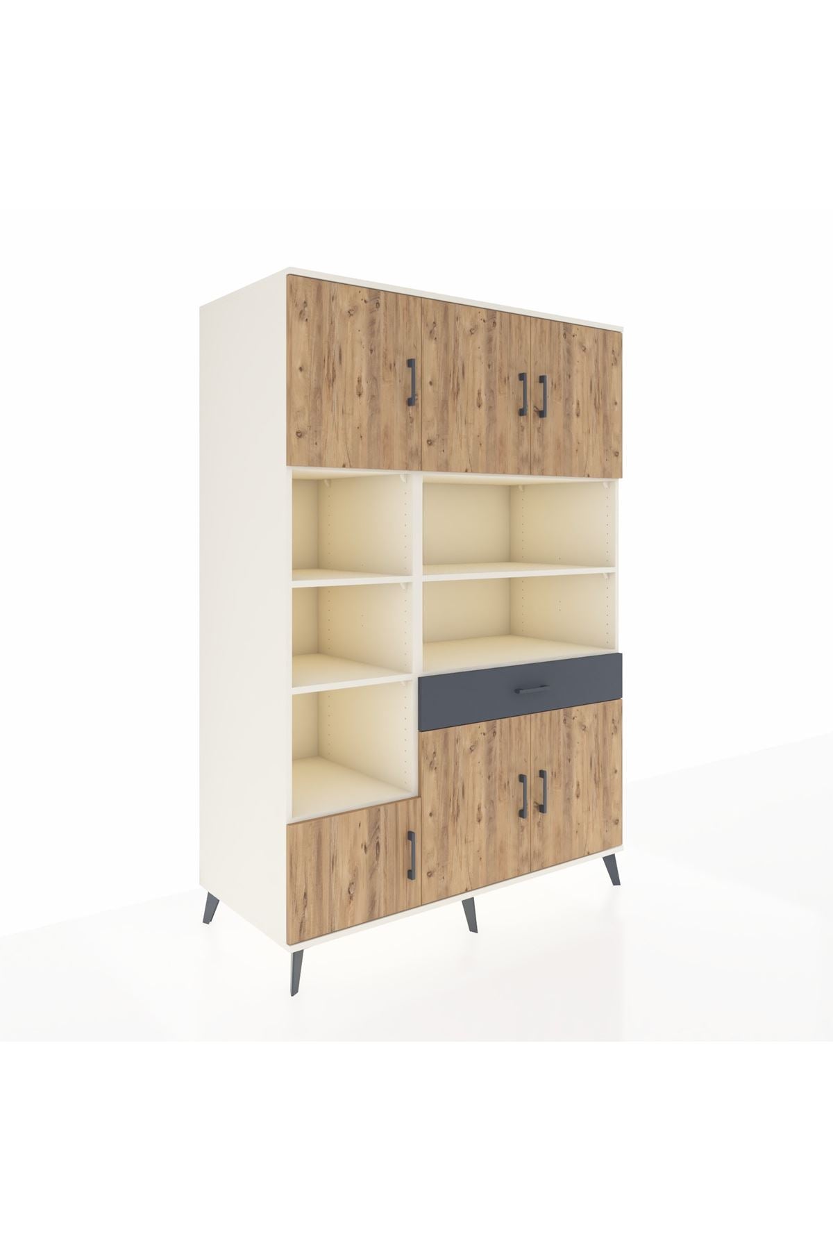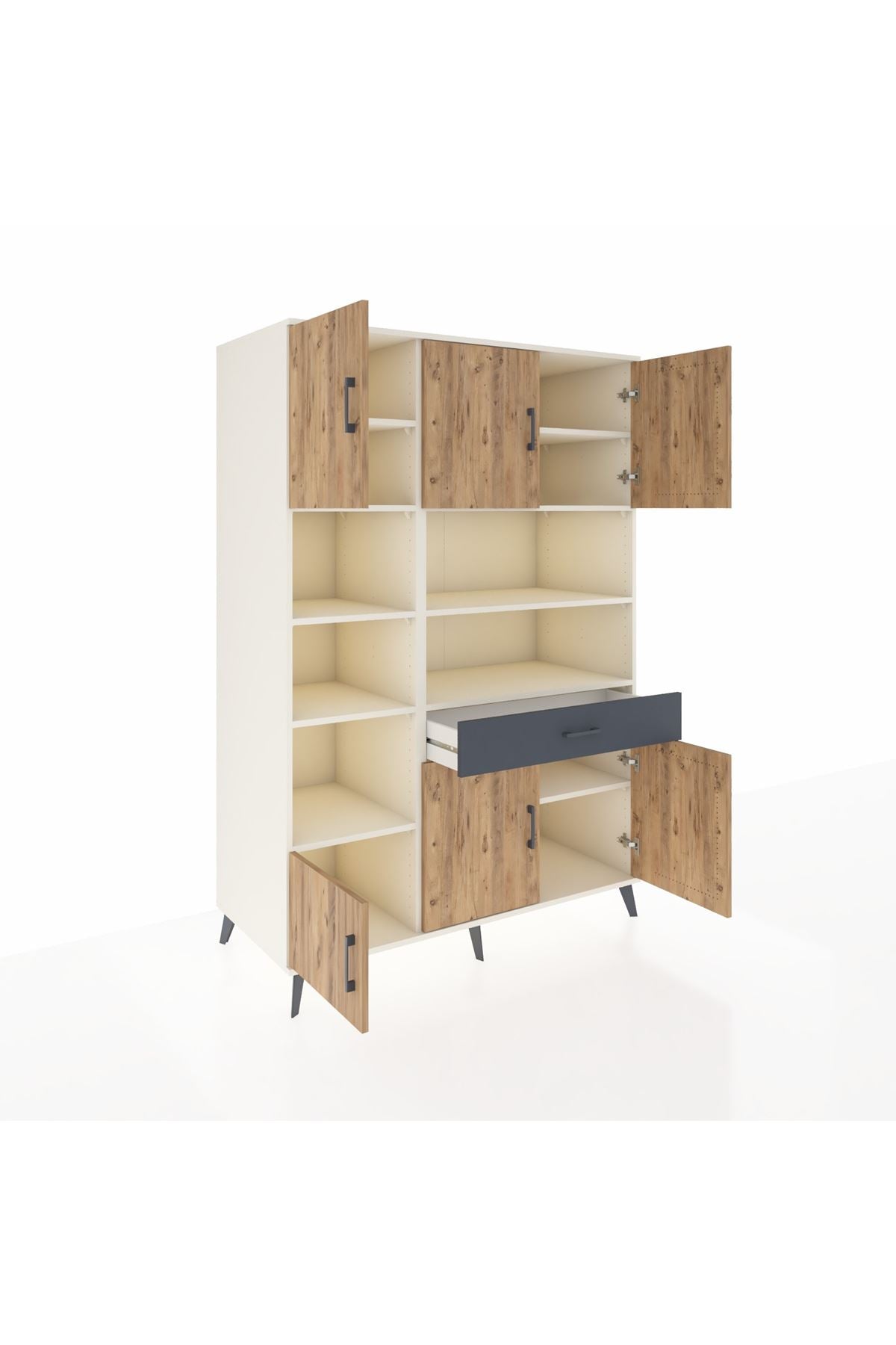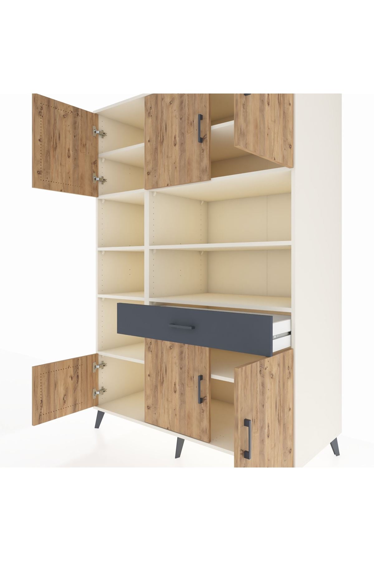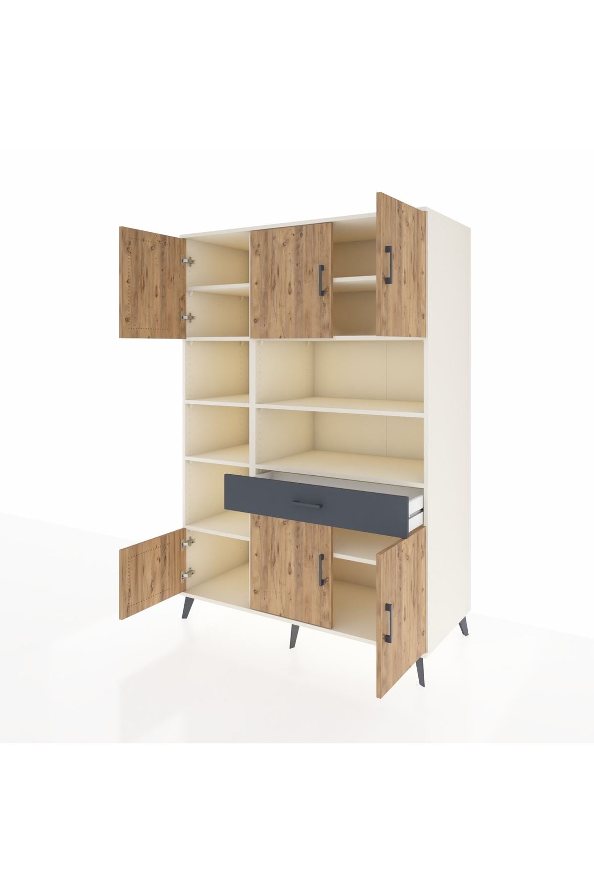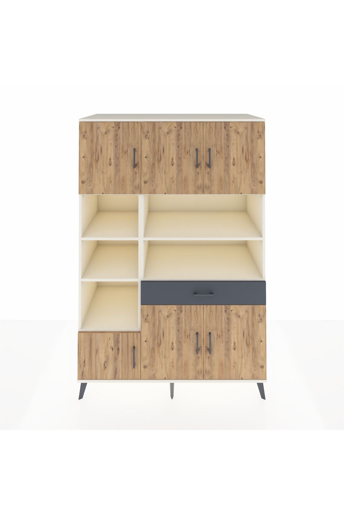 Kronos Dolap 10 Raflı Tek Çekmeceli 6 Kapaklı 132x59x195 Aytaşı-Çam/Antrasit