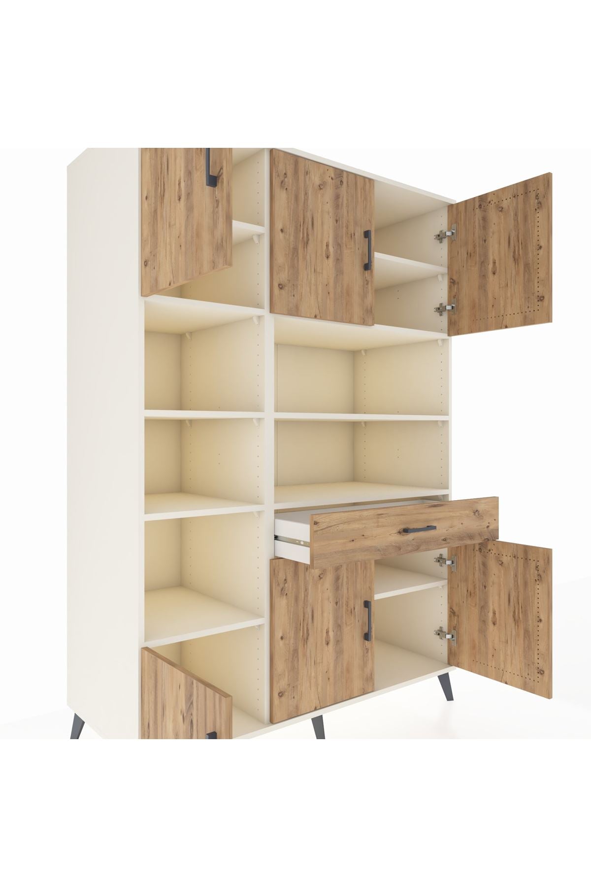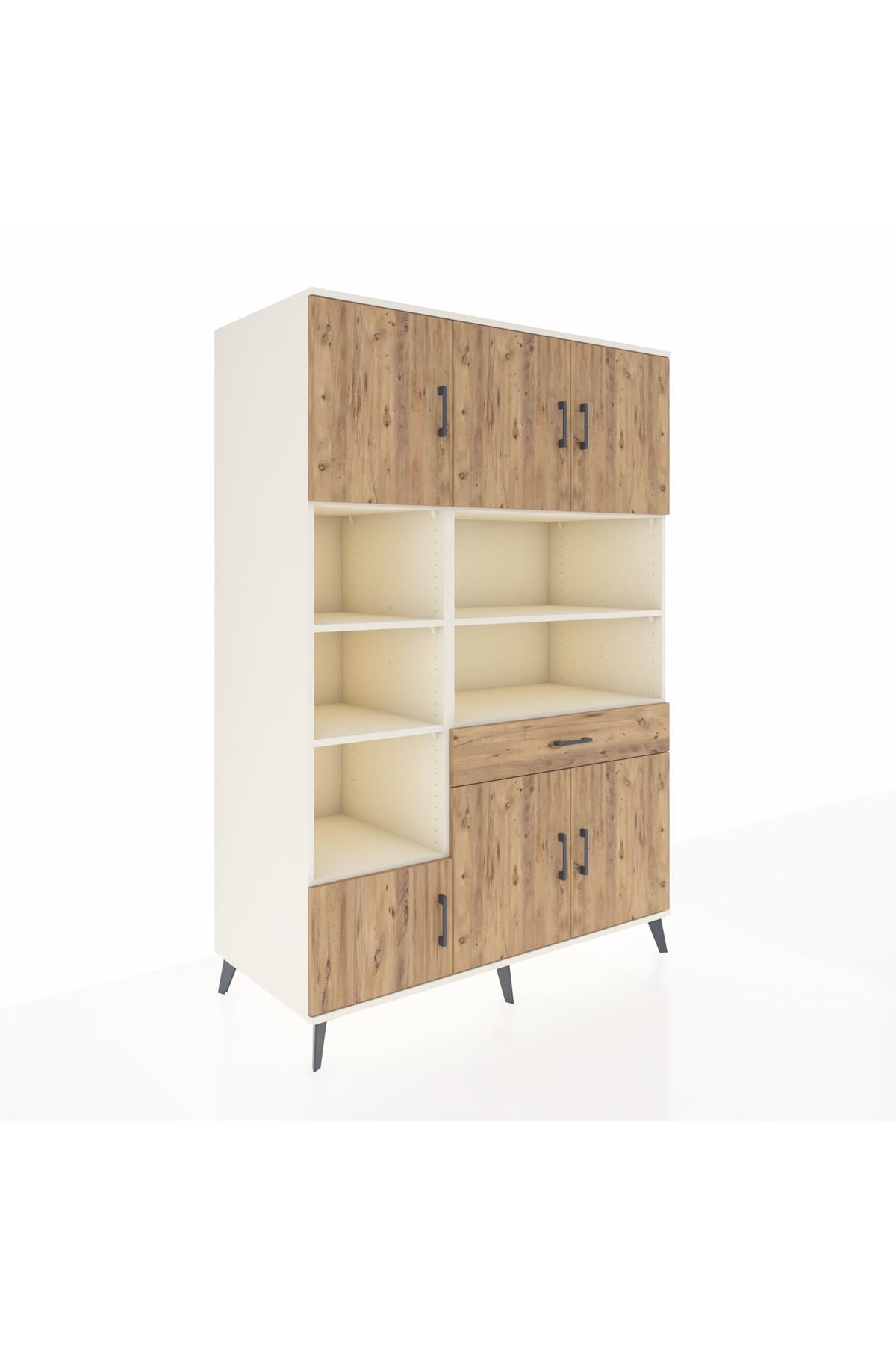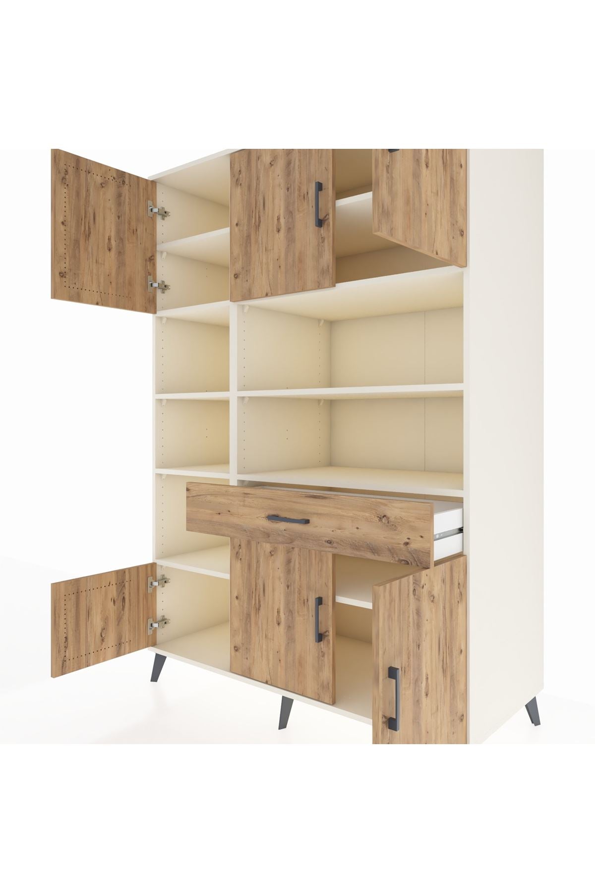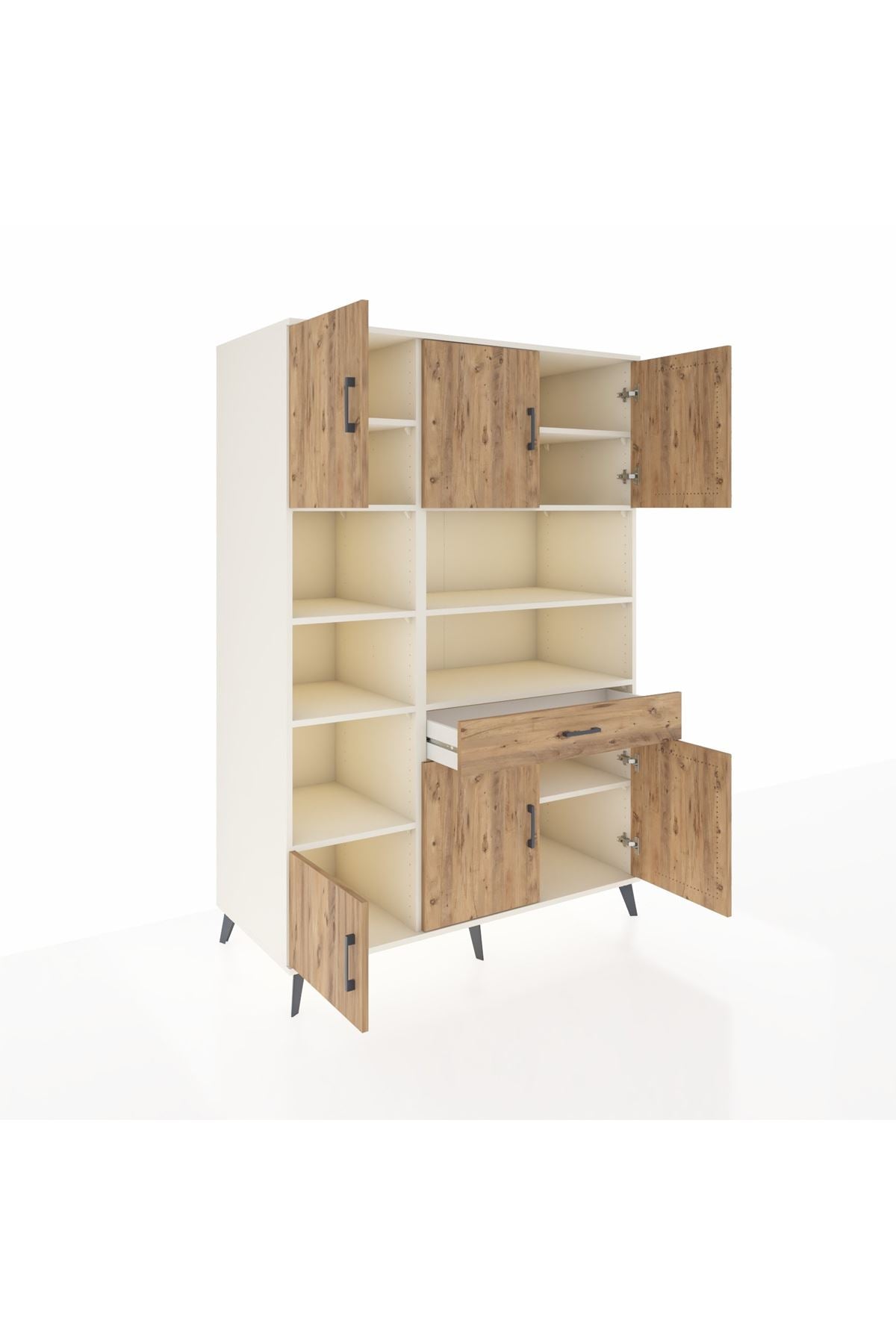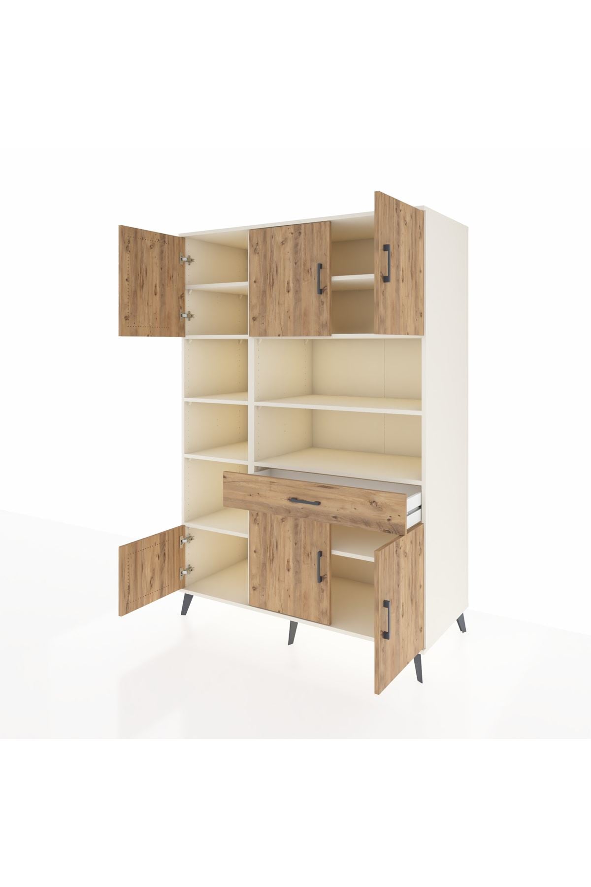 Kronos Dolap 10 Raflı Tek Çekmeceli 6 Kapaklı 132x59x195 Aytaşı-Çam/Çam