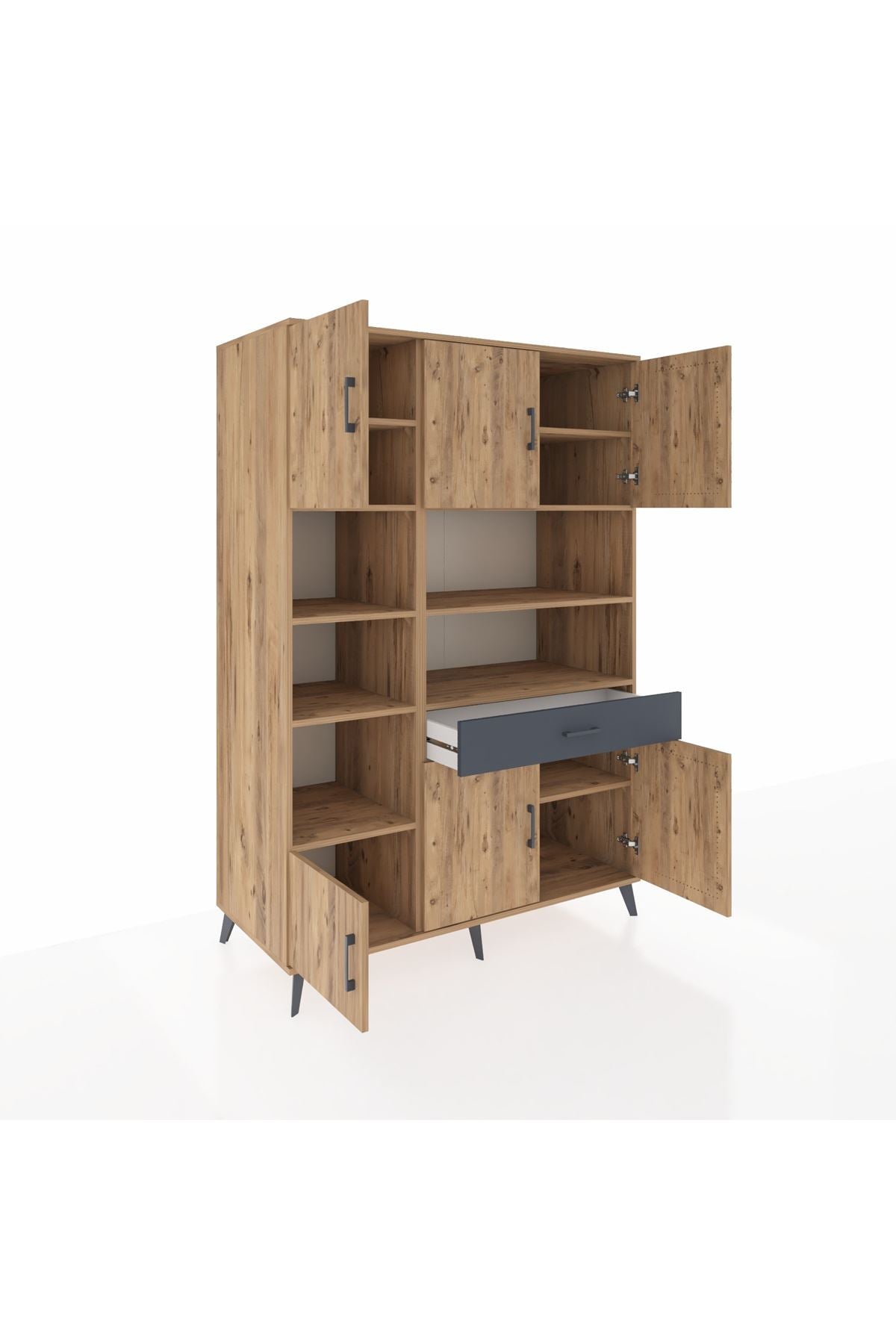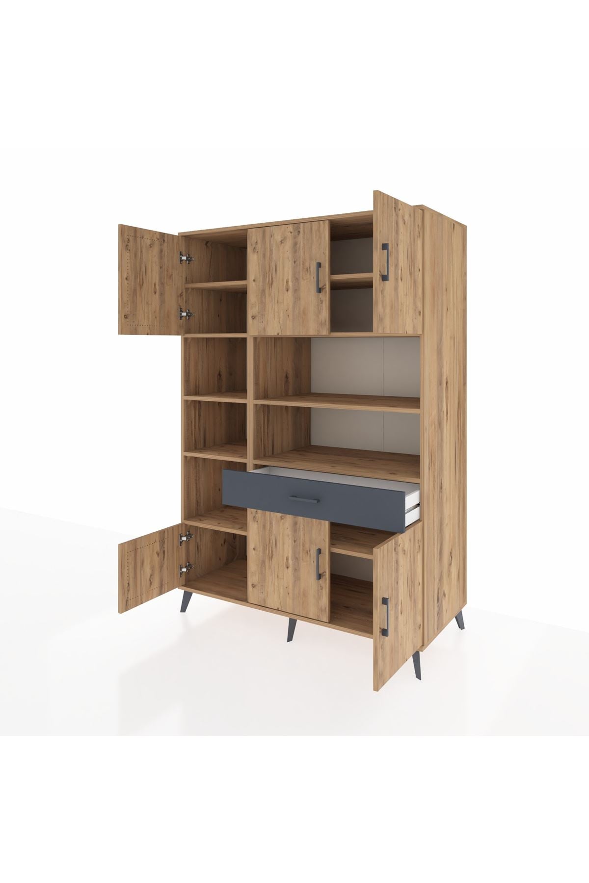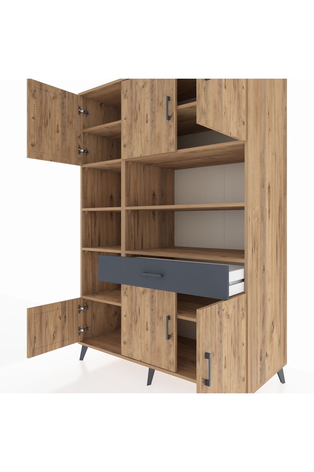 Kronos Dolap 10 Raflı Tek Çekmeceli 6 Kapaklı 132x59x195 Çam-Çam/Antrasit