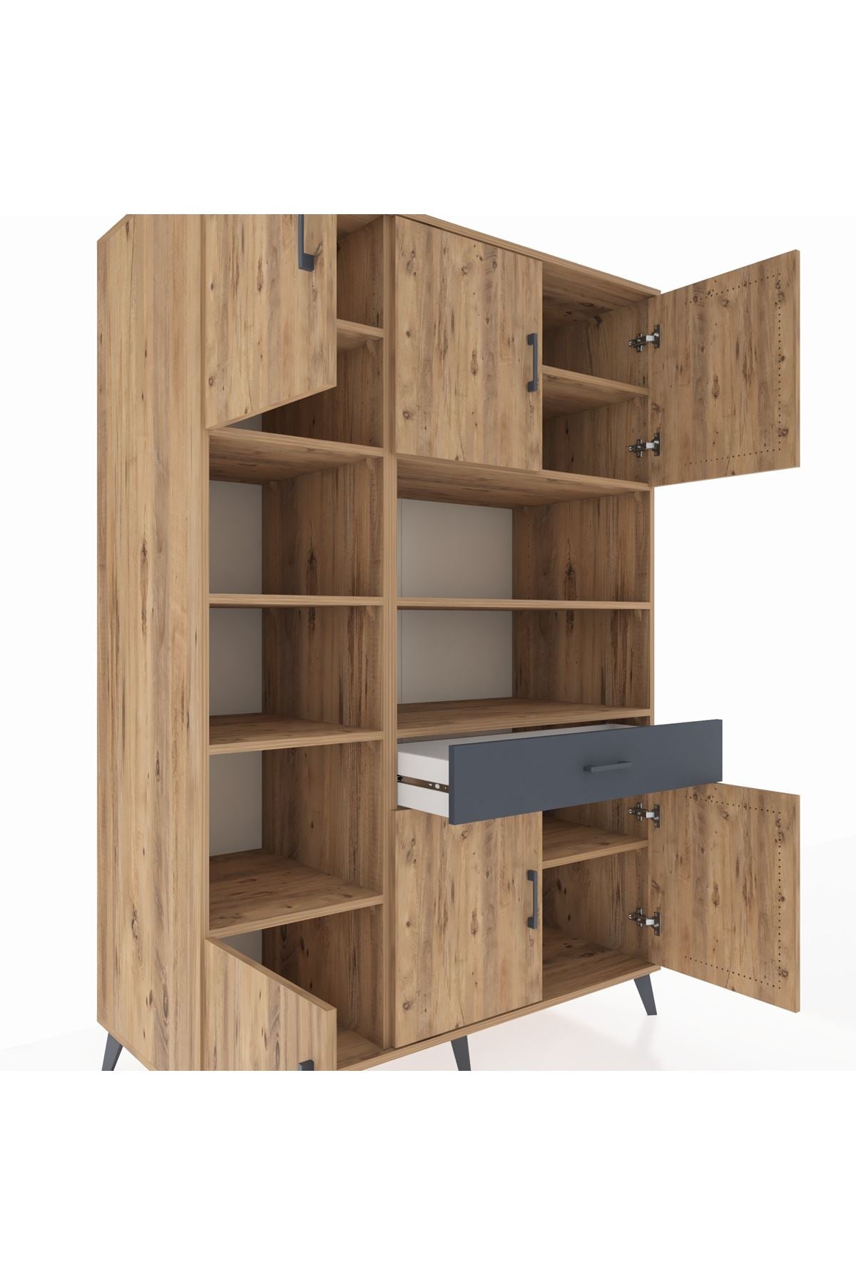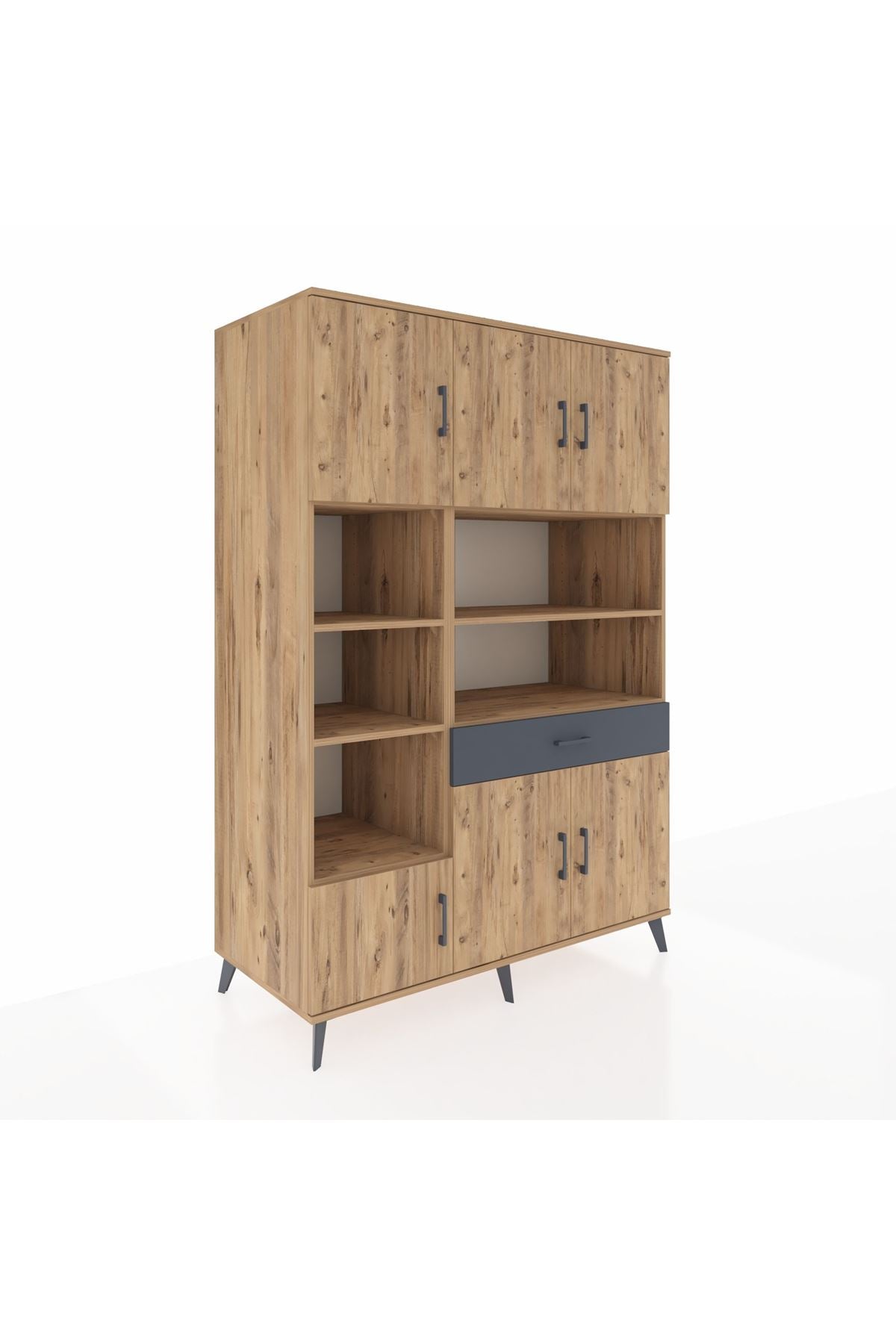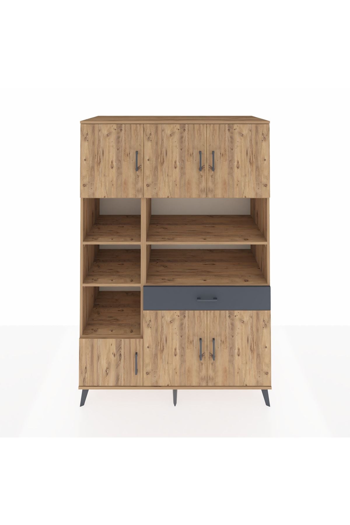Kronos Dolap 10 Raflı Tek Çekmeceli 6 Kapaklı 132x59x195 Çam-Çam/Antrasit