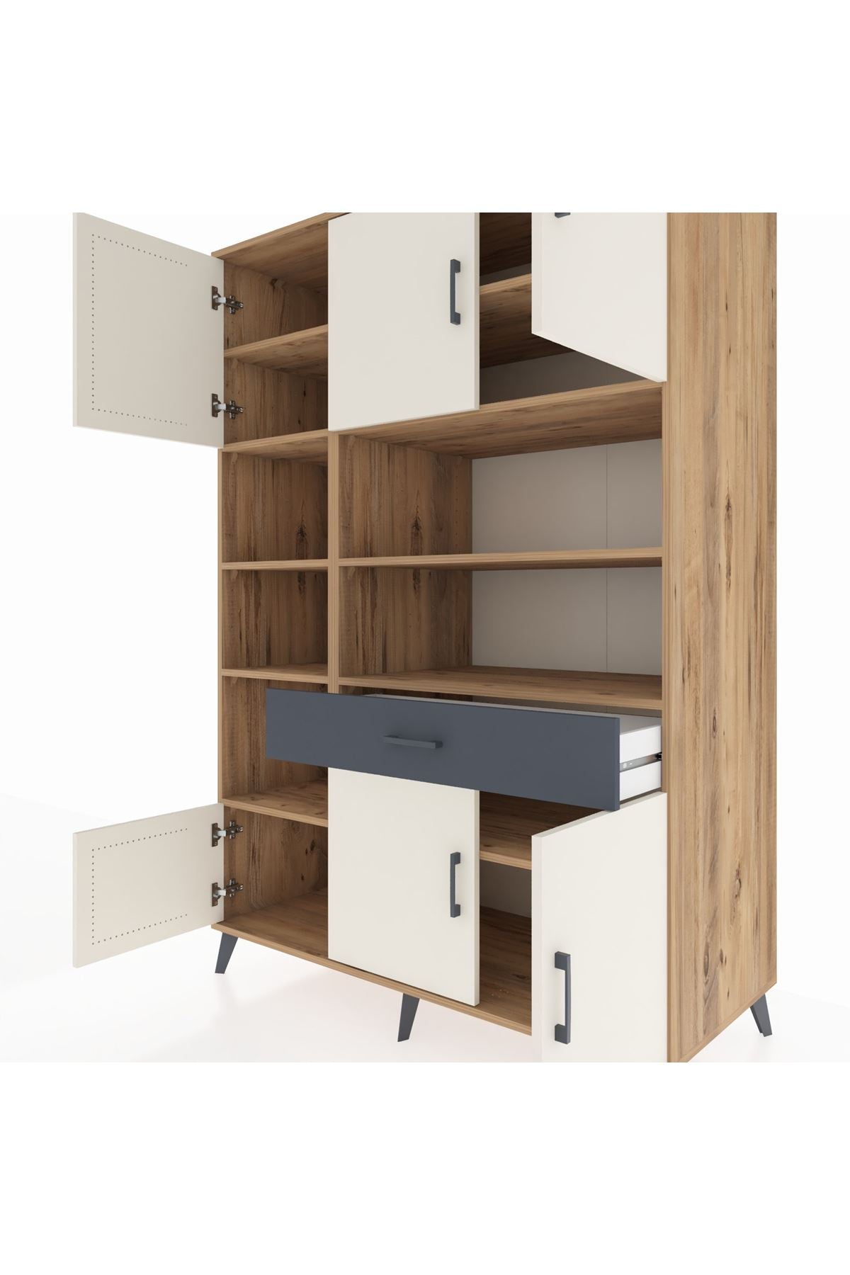 Kronos Dolap 10 Raflı Tek Çekmeceli 6 Kapaklı 132x59x195 Çam-Aytaşı/Antrasit