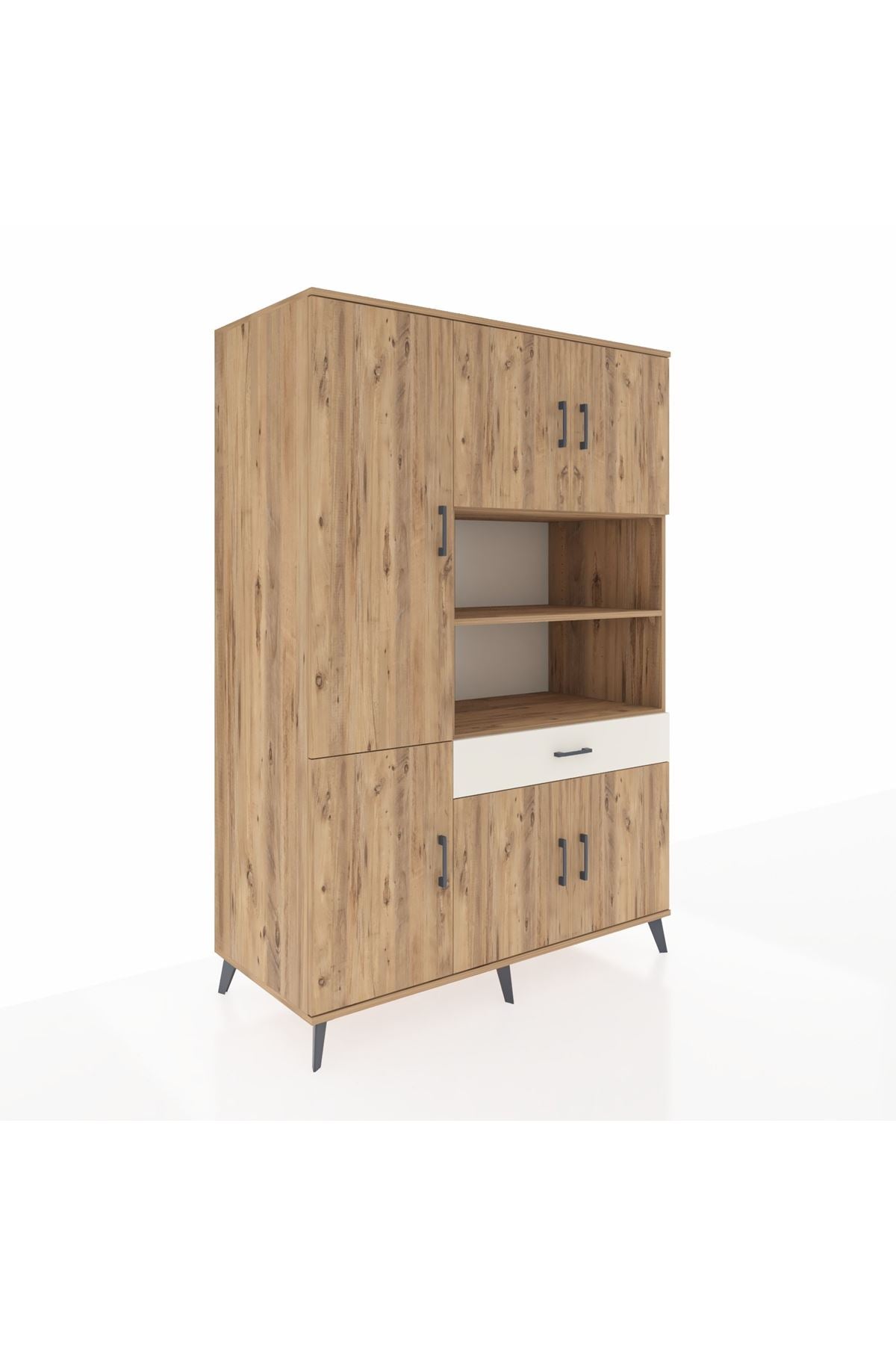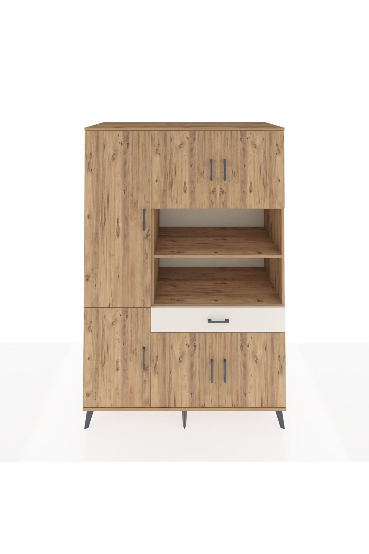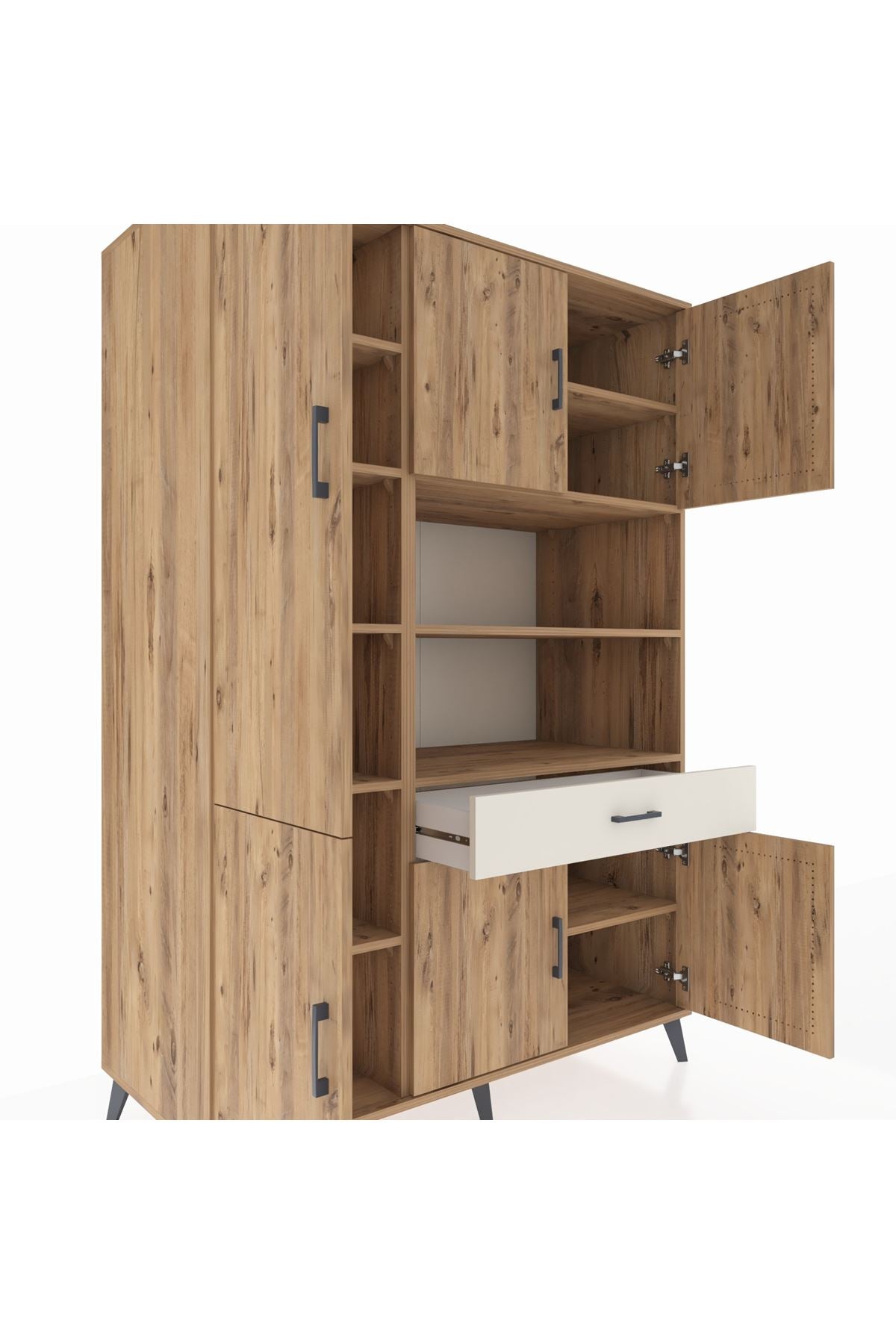 - 🛋️ Salon dolabı: 10 raflı tasarımı ile salon veya oturma odasında geniş depolama sunar.