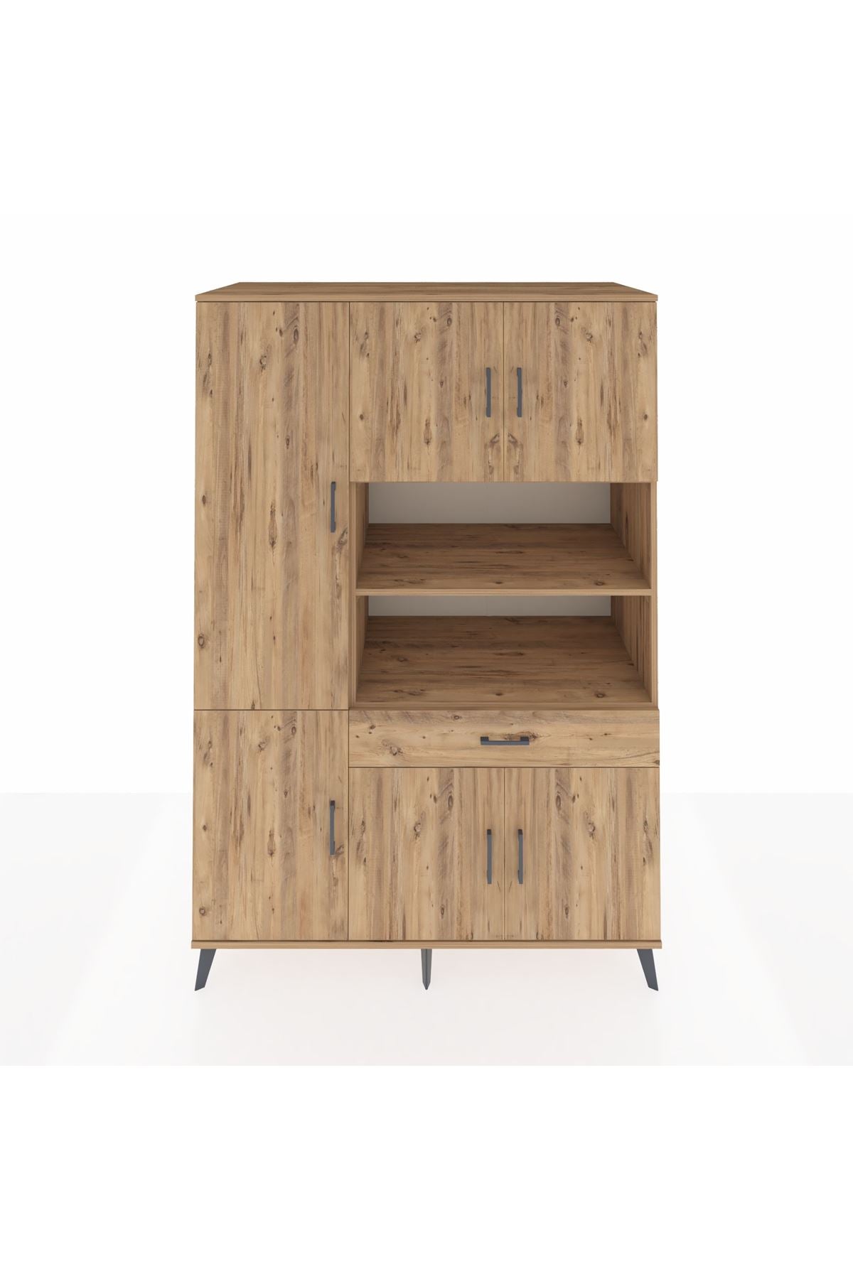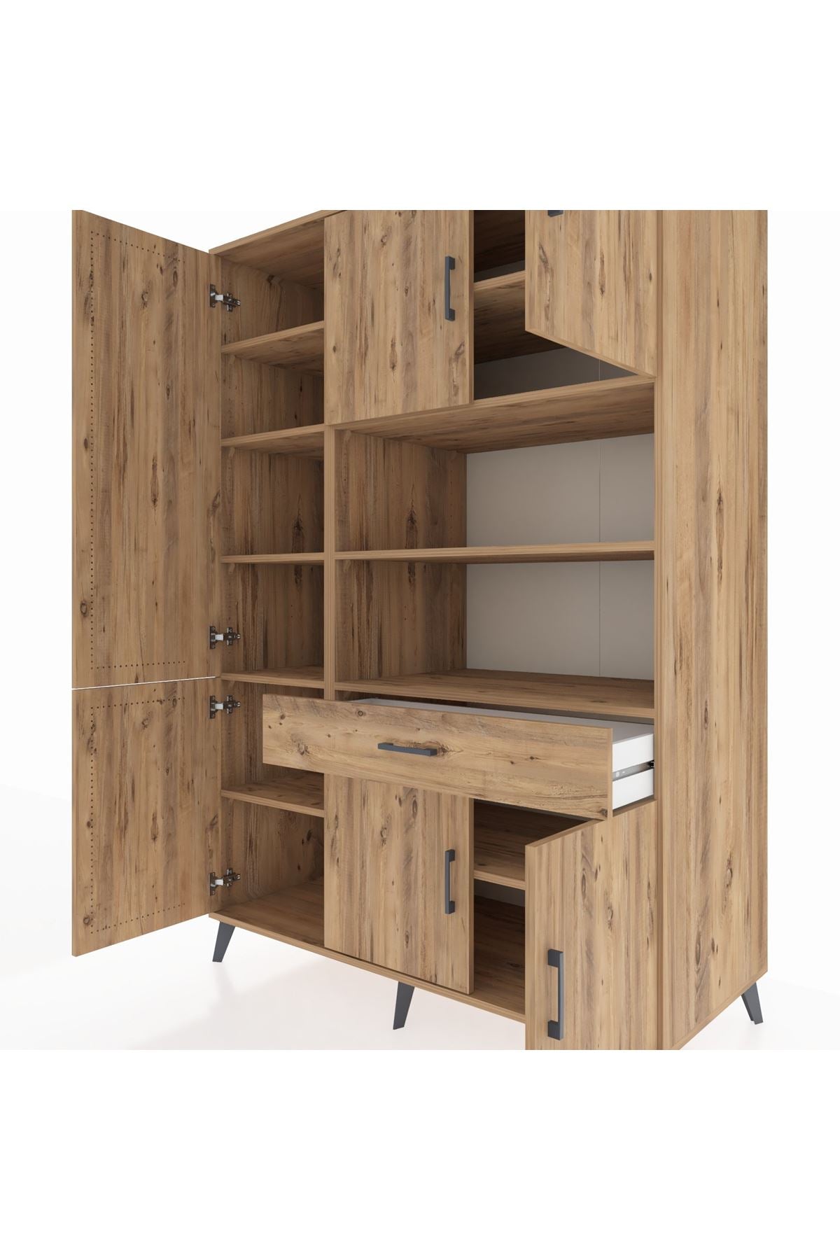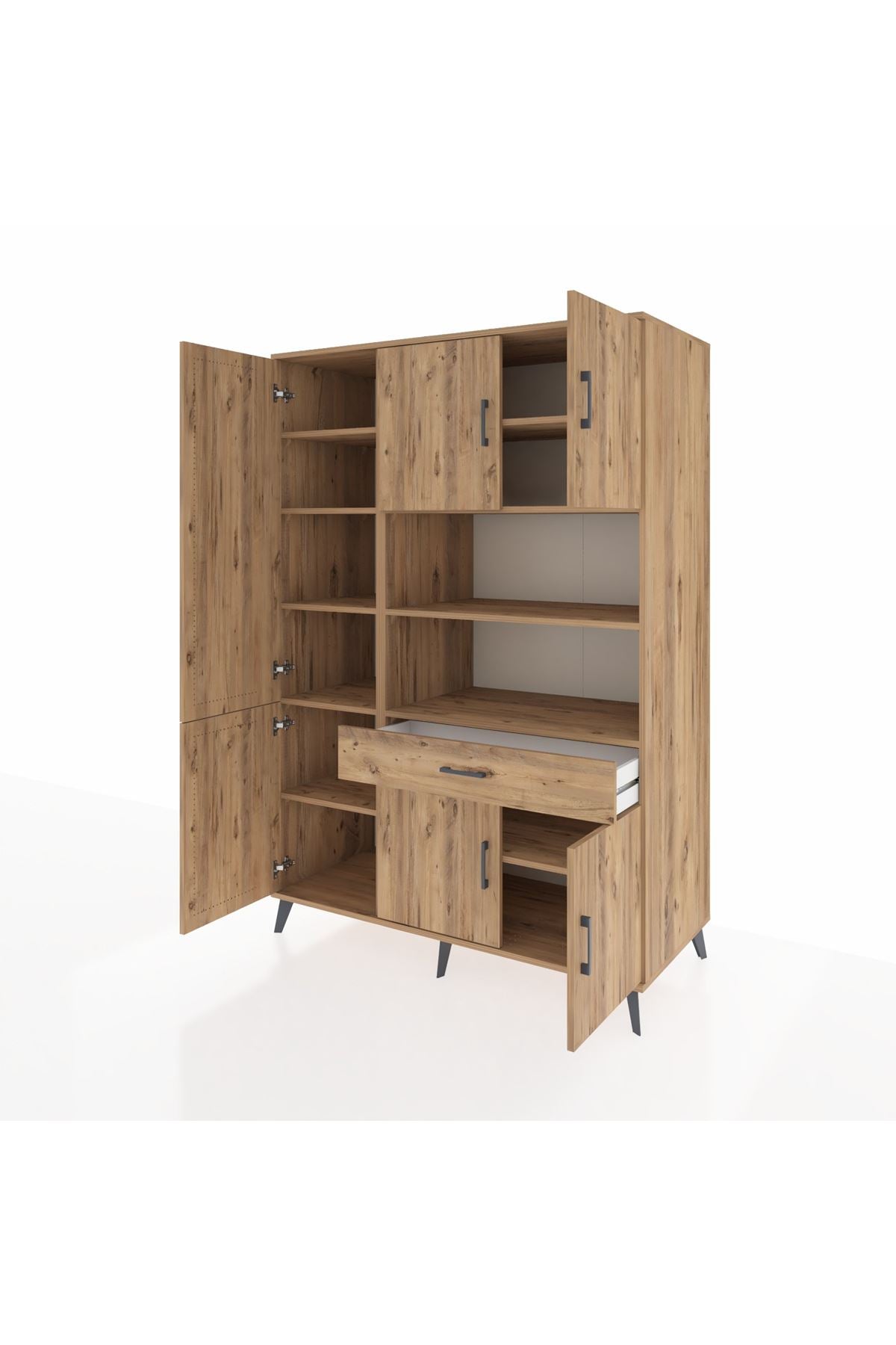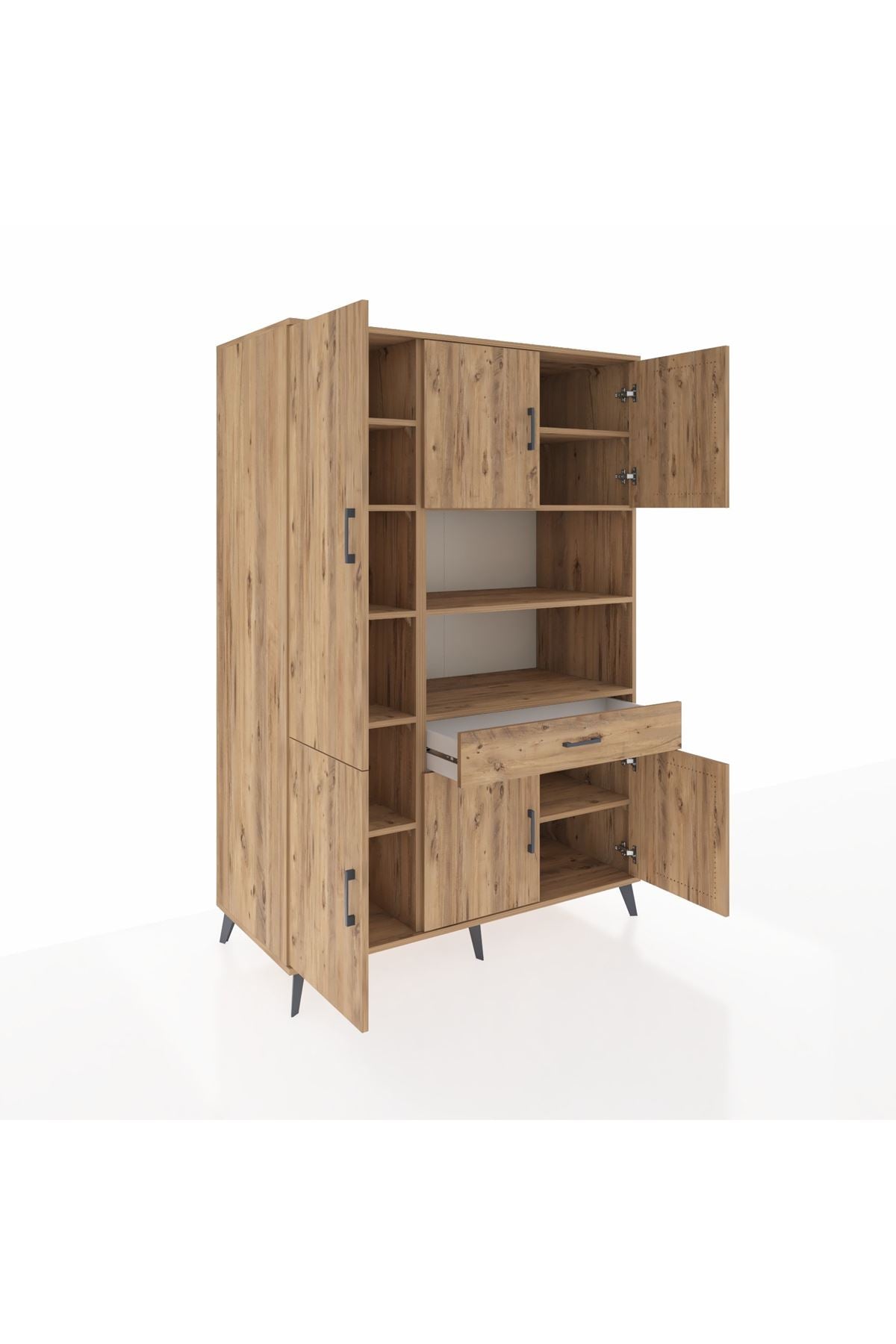 Toplam 10 geniş rafı, 6 kapaklı bölmesi ve kullanışlı 1 çekmecesi sayesinde eşyalarınızı düzenli tutmak artık çok kolay! 🗄️ Modern metal ayaklar ve sağlam metal kulplar sayesinde uzun ömürlü ve dayanıklıdır. Kastamonu Entegre 1. sınıf suntalam kalitesiyle üretilmiştir. Benzer ürünlerin ötesinde 1.2 mm kalın kenar bandı sayesinde ekstra koruma sağlar.