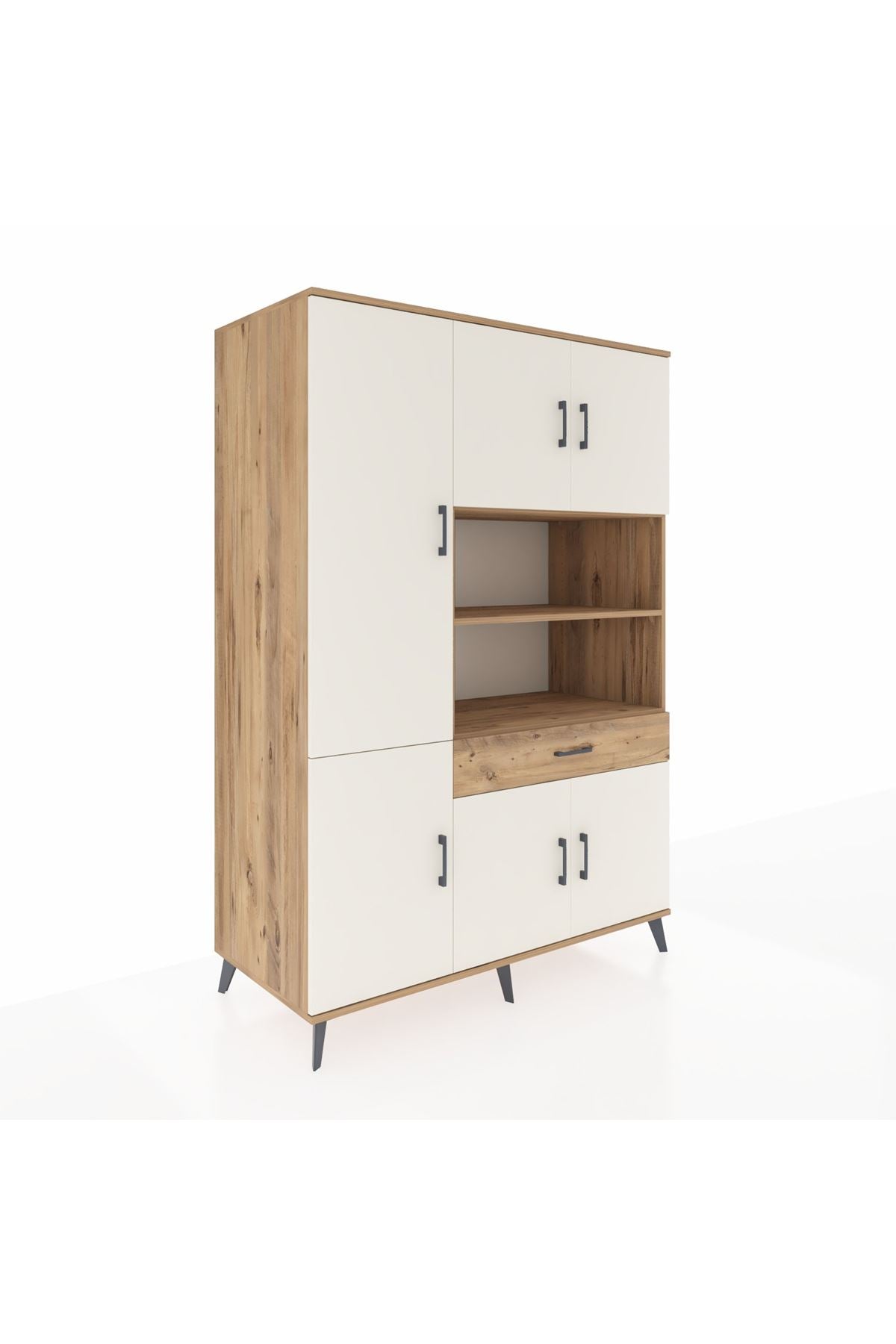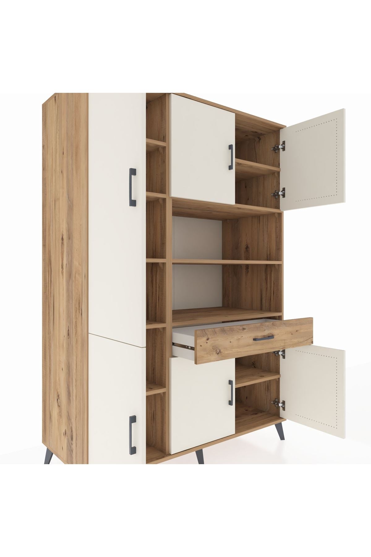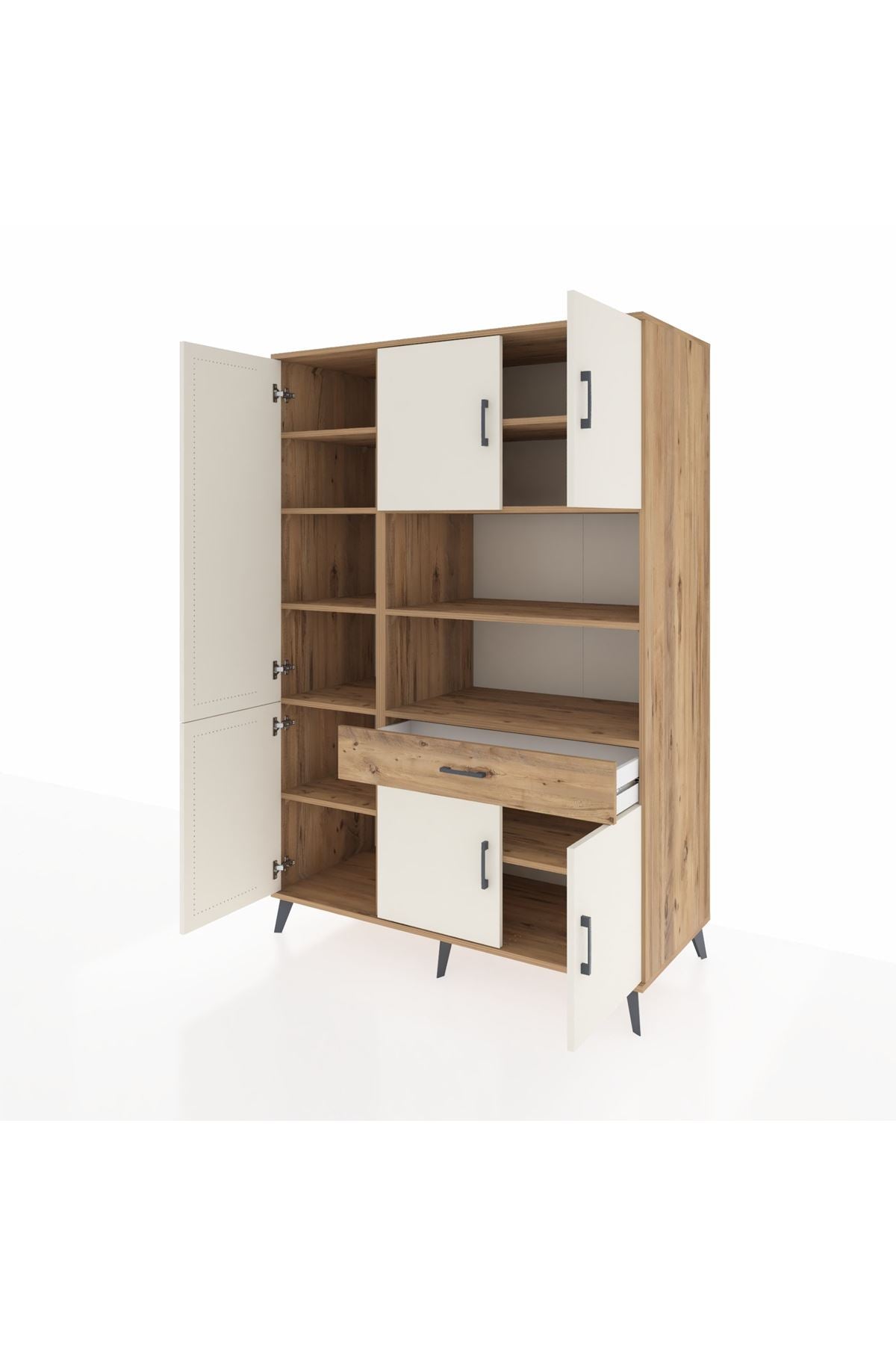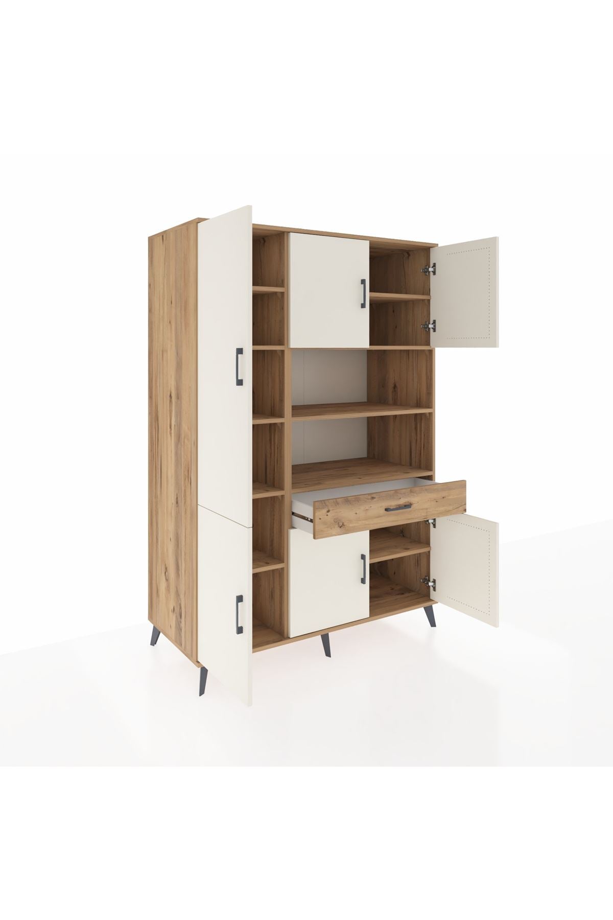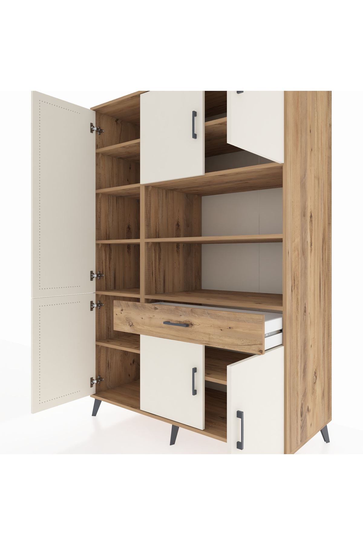 Kronos Dolap 10 Raflı Tek Çekmeceli 6 Kapaklı 132x59x195 Çam-Aytaşı/Çam