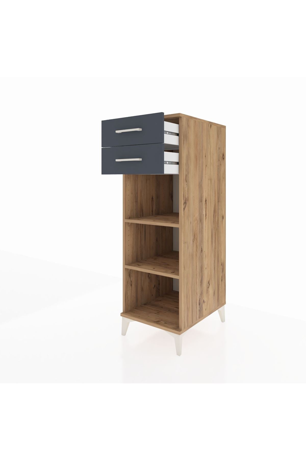 Kronos Dolap 2 Raflı 2 Çekmeceli 44x59x134 Çam-Antrasit