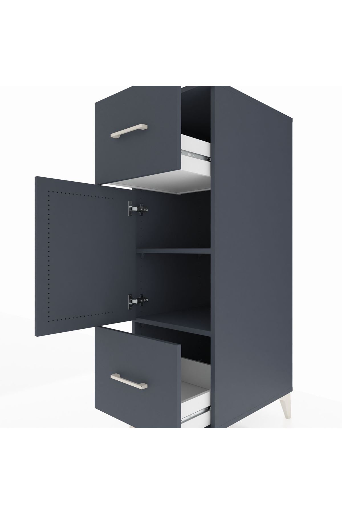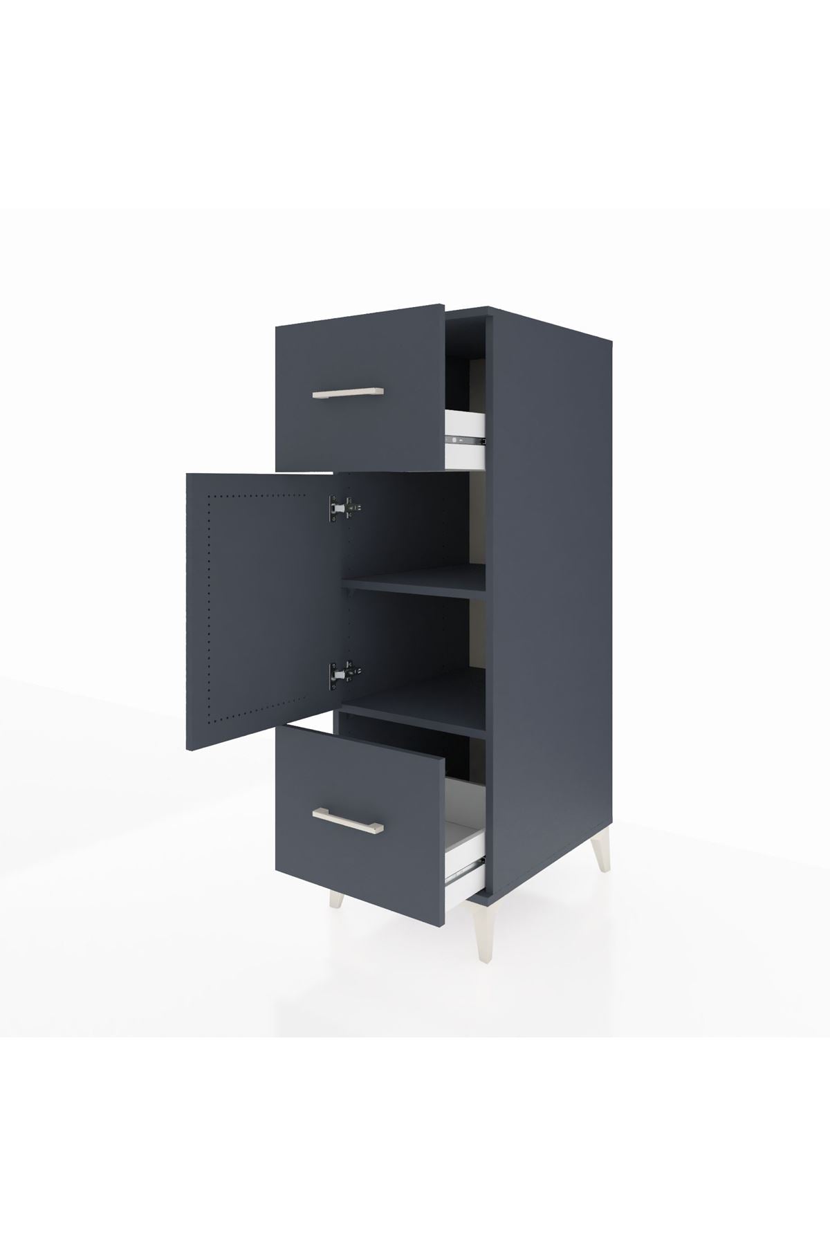 Kronos Dolap 2 Raflı 2 Çekmeceli Tek Kapaklı 44x59x134 Antrasit-Antrasit