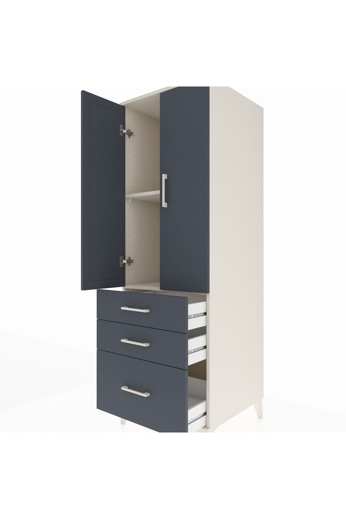 Kronos Dolap 2 Raflı 3 Çekmeceli 2 Kapaklı 60x59x182 Aytaşı-Antrasit
