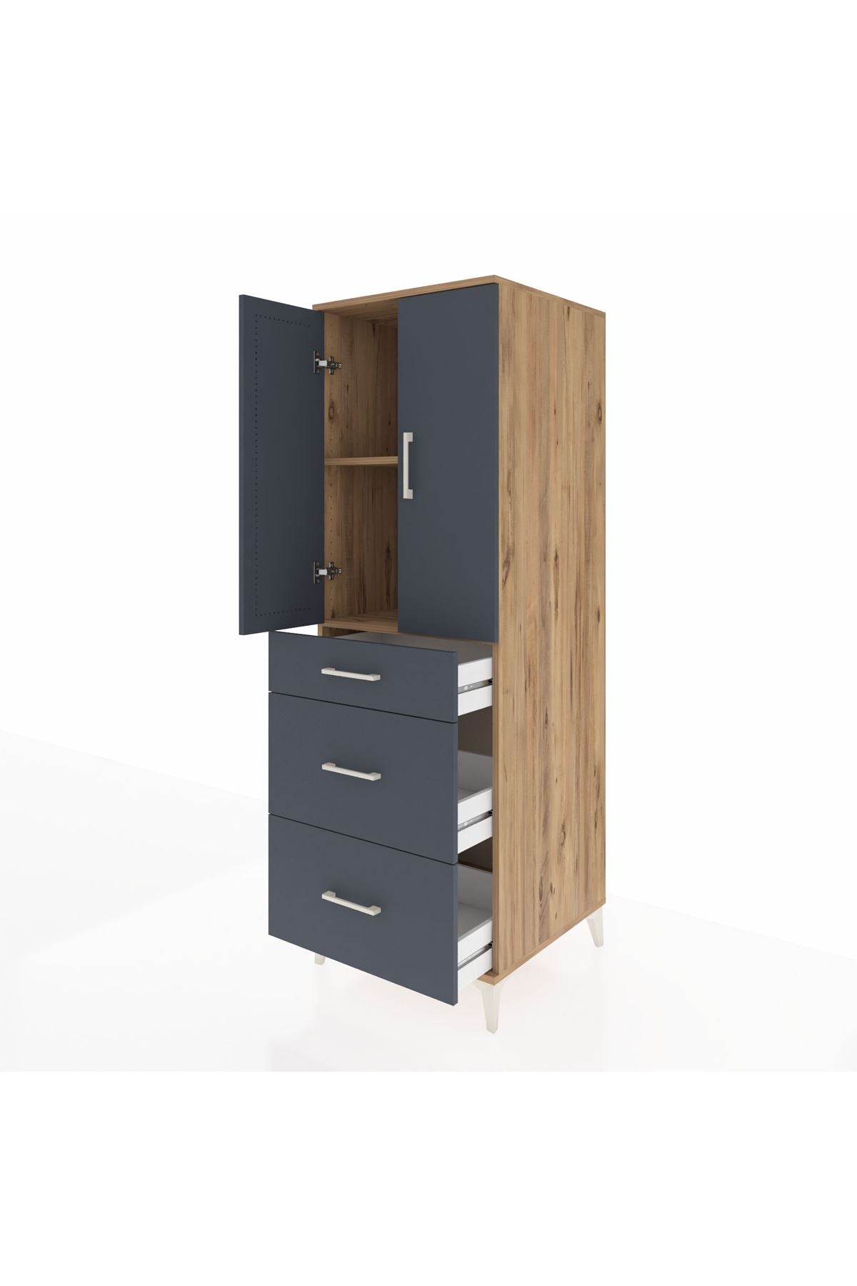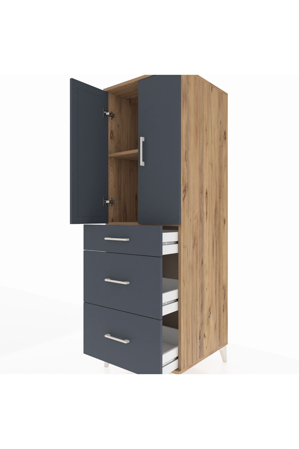 Kronos Dolap 2 Raflı 3 Çekmeceli 2 Kapaklı 60x59x182 Çam-Antrasit