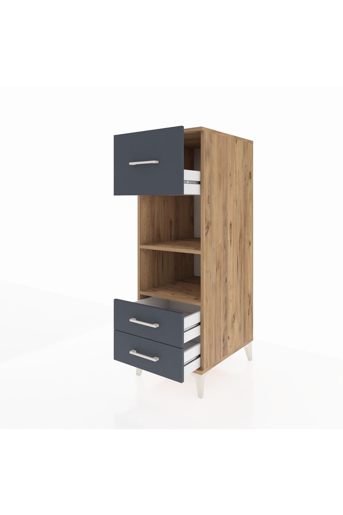 Kronos Dolap 2 Raflı 3 Çekmeceli 44x59x134 Çam-Antrasit