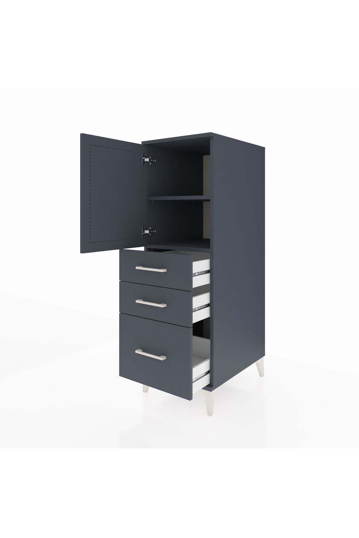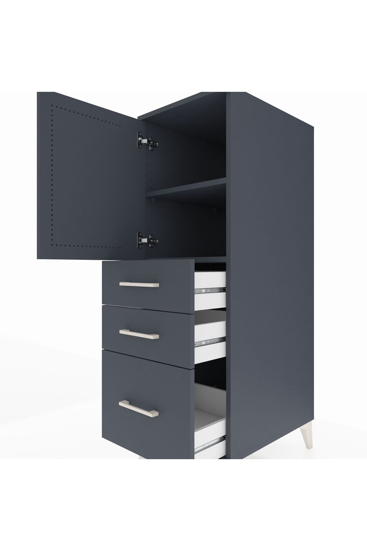 Kronos Dolap 2 Raflı 3 Çekmeceli Tek Kapaklı 44x59x134 Antrasit-Antrasit