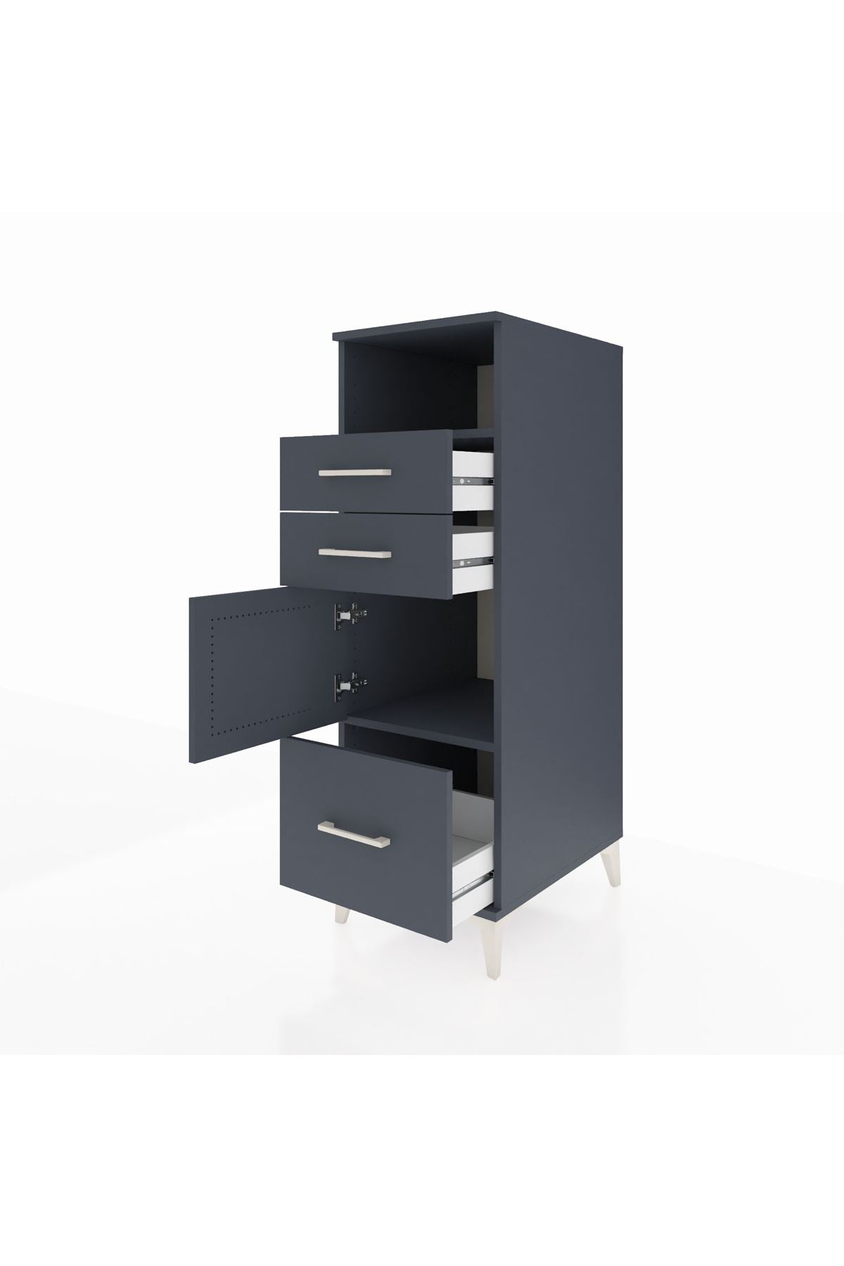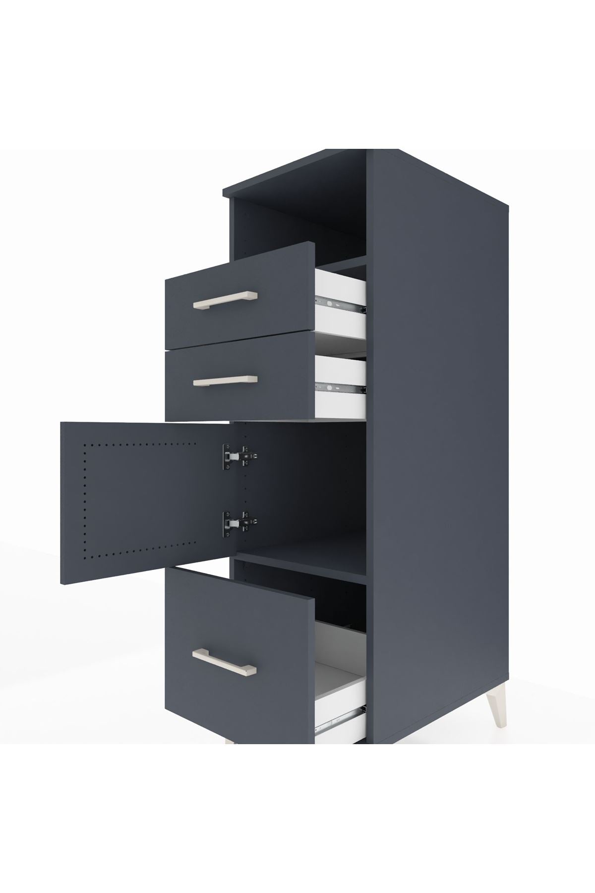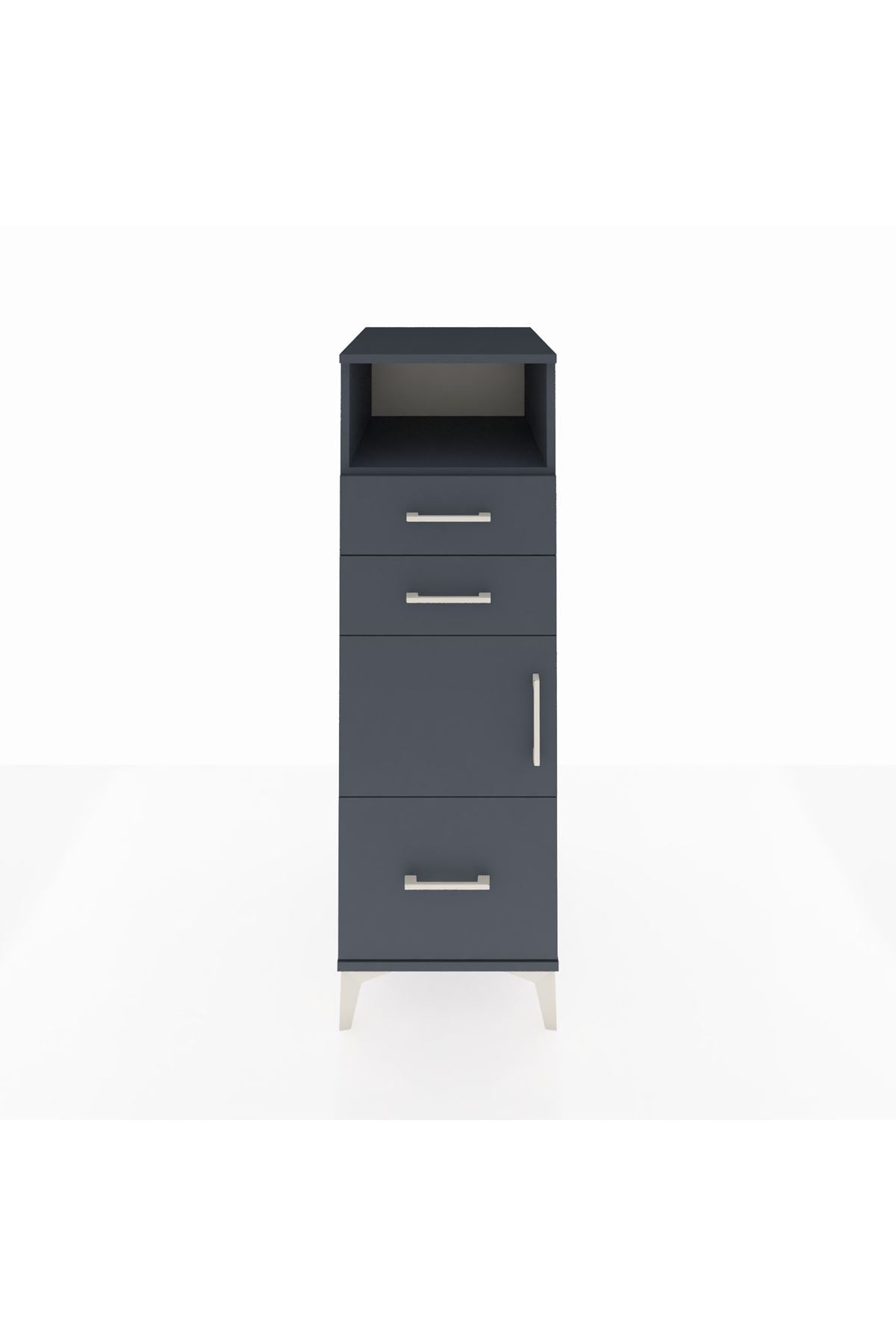 Kronos Dolap 2 Raflı 3 Çekmeceli Tek Kapaklı 44x59x134 Antrasit-Antrasit
