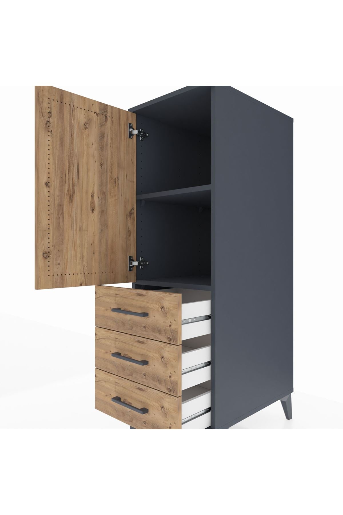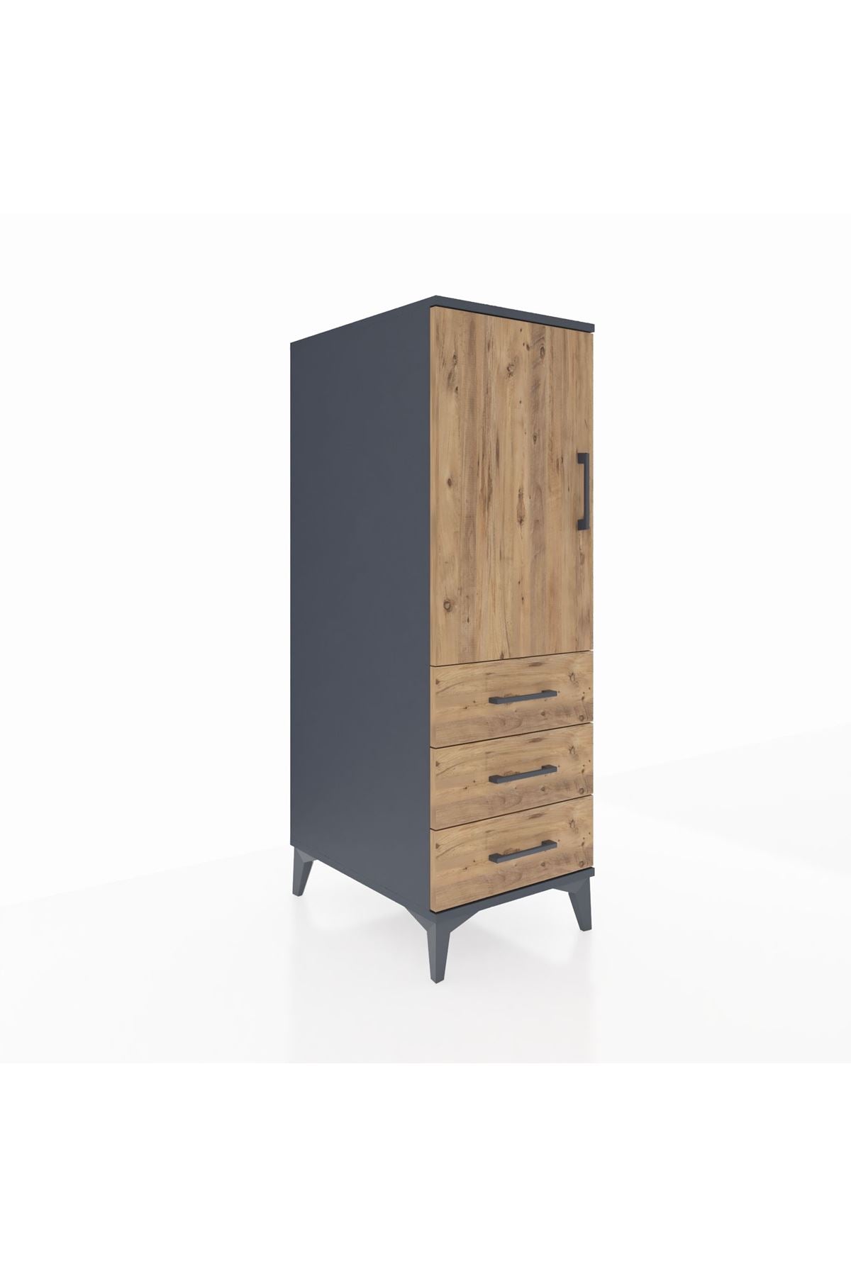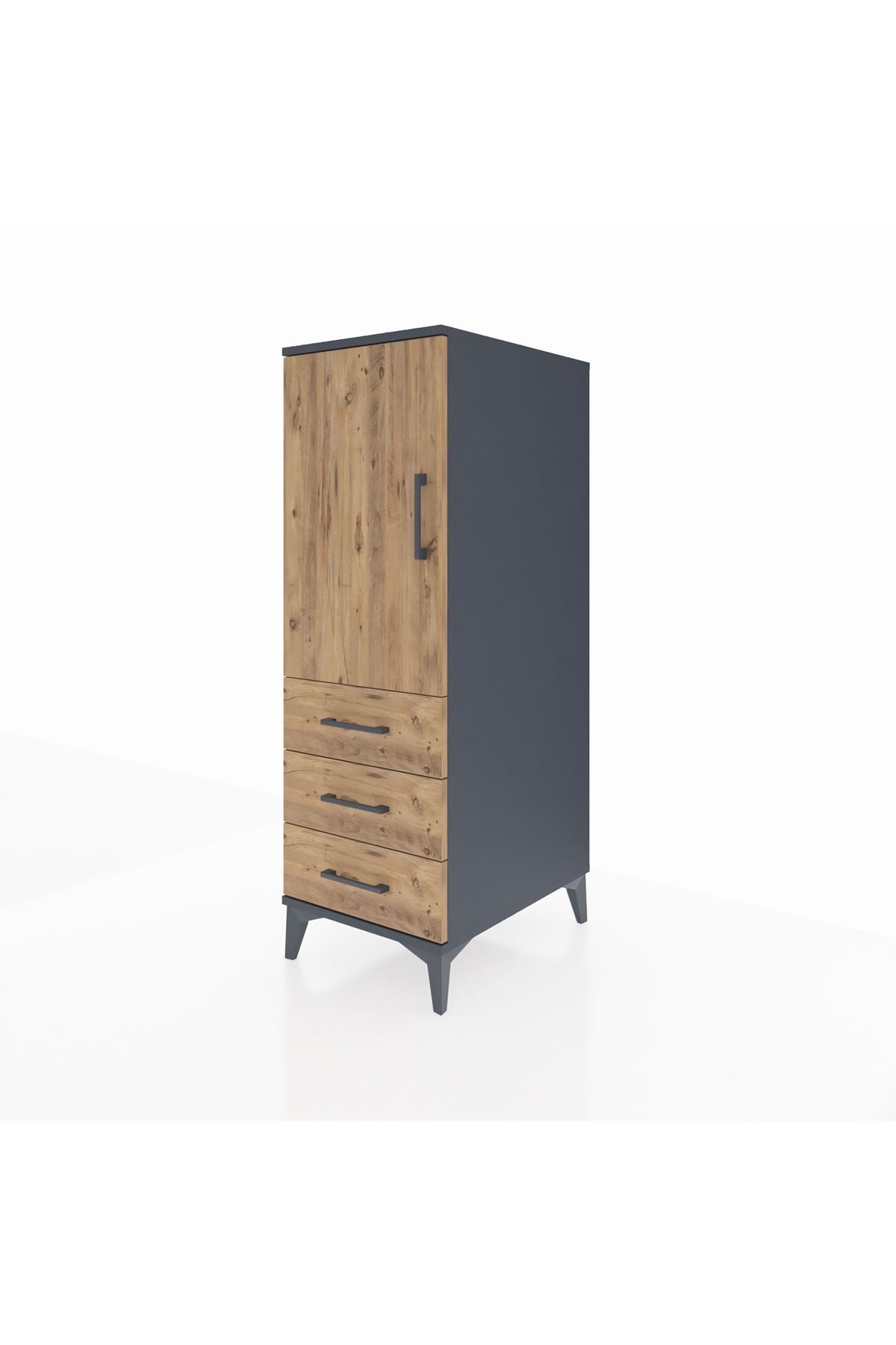 Kronos Dolap 2 Raflı 3 Çekmeceli Tek Kapaklı 44x59x134 Antrasit-Çam
