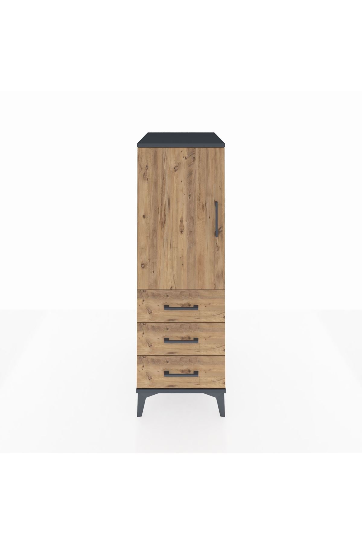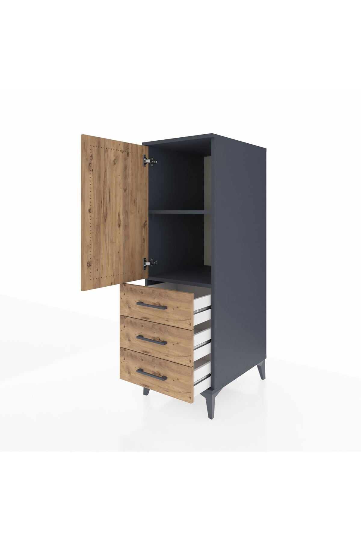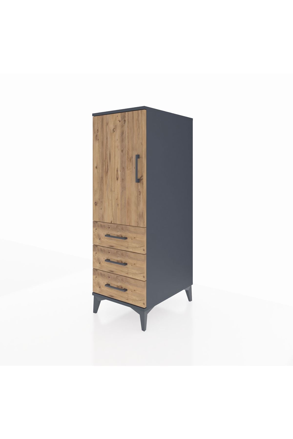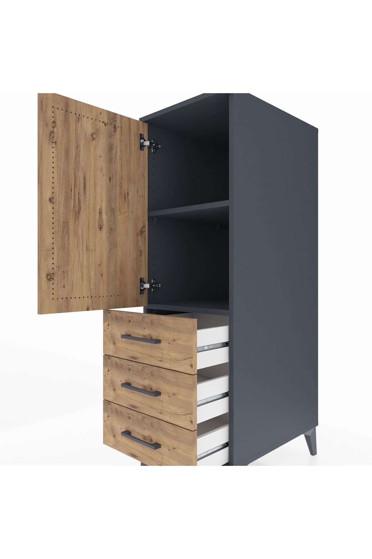 Kronos Dolap 2 Raflı 3 Çekmeceli Tek Kapaklı 44x59x134 Antrasit-Çam