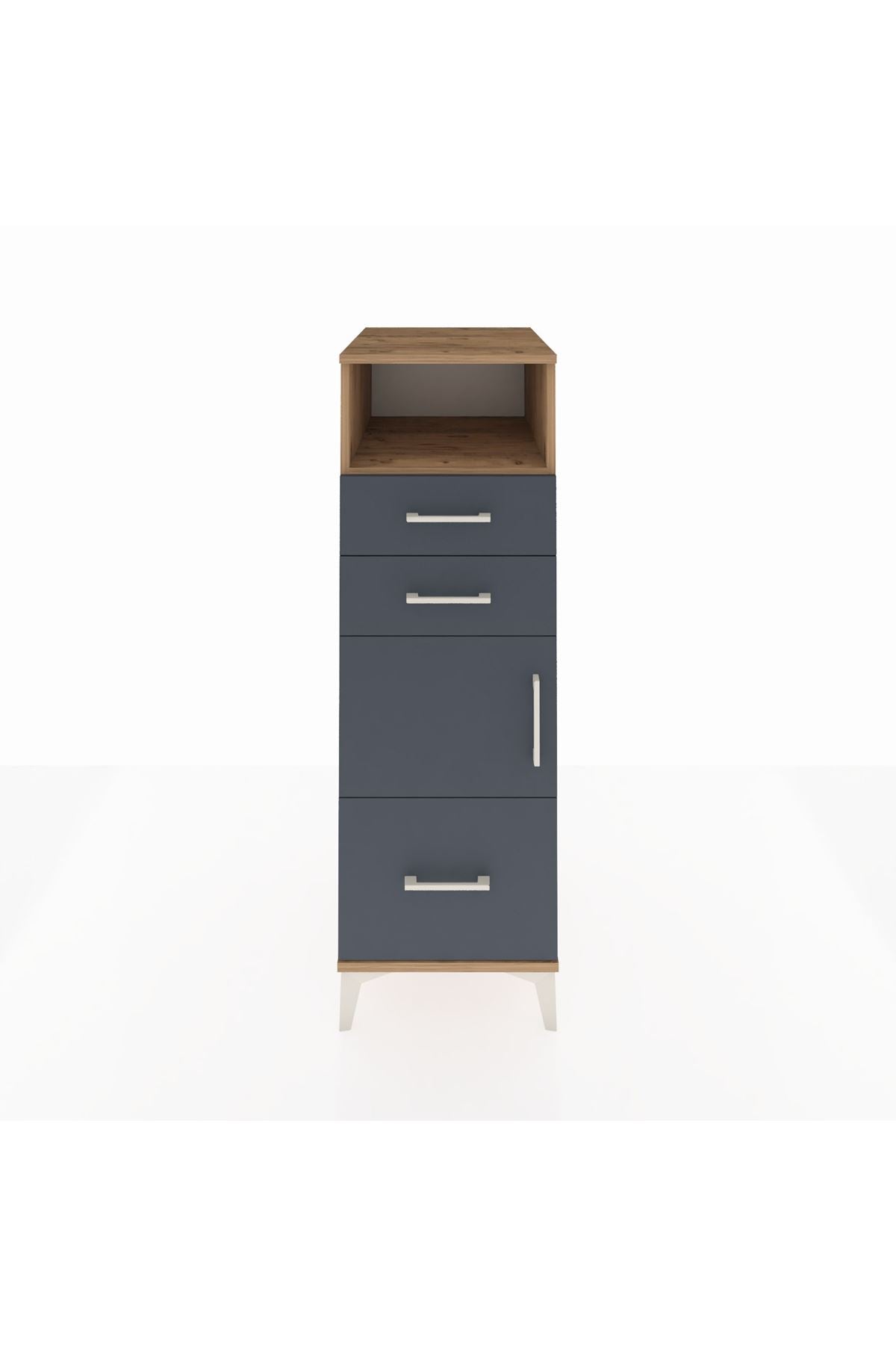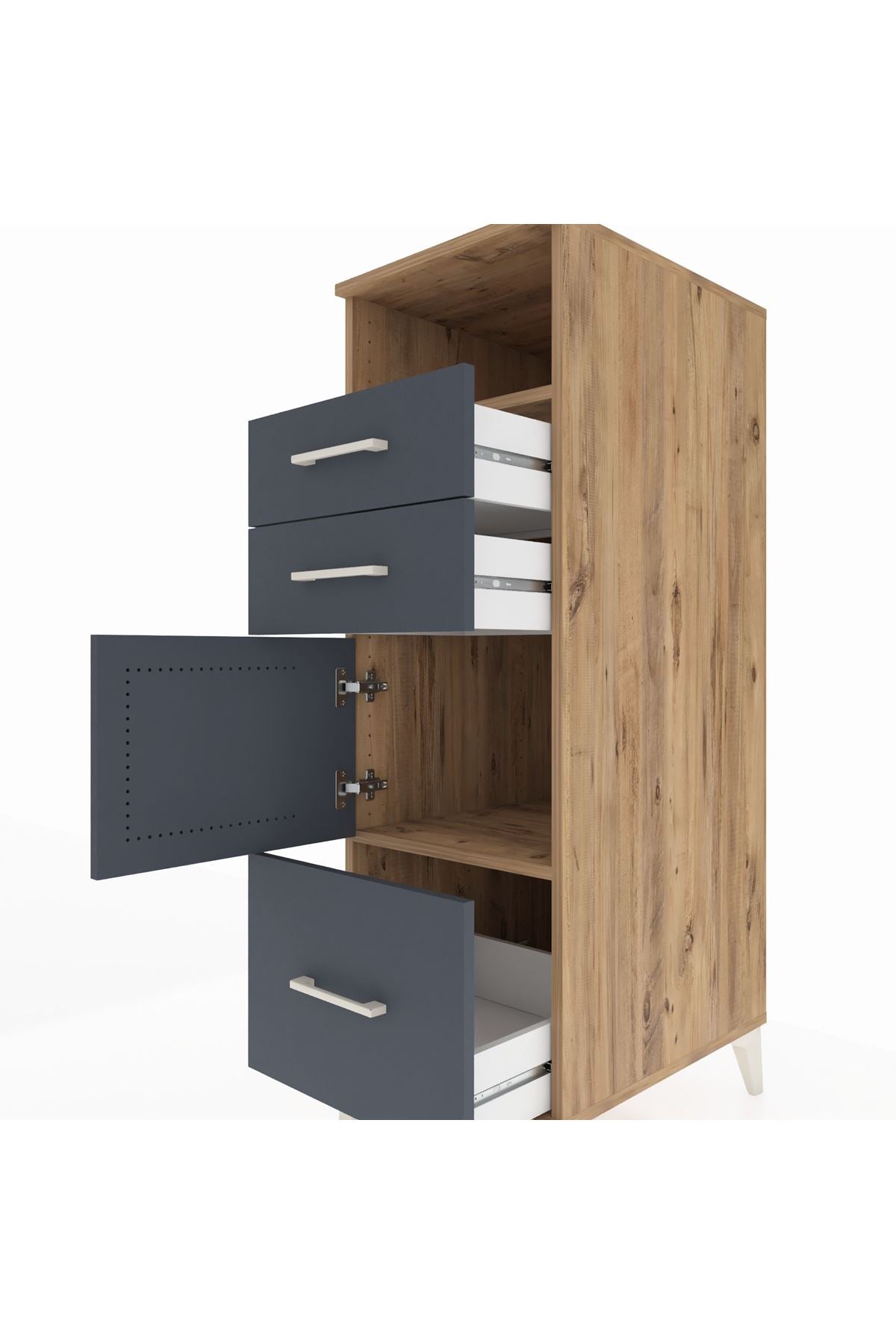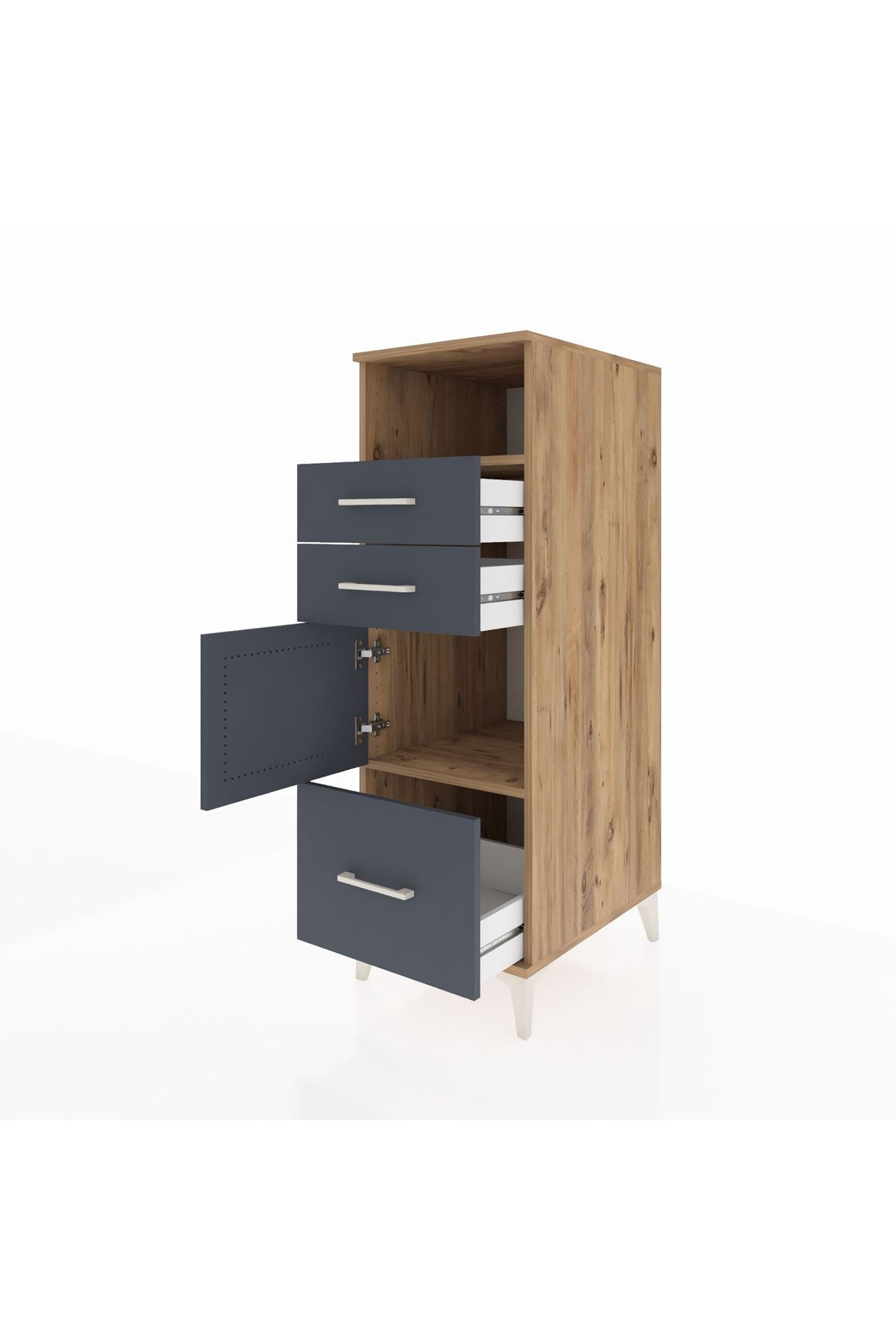 Kronos Dolap 2 Raflı 3 Çekmeceli Tek Kapaklı 44x59x134 Çam-Antrasit