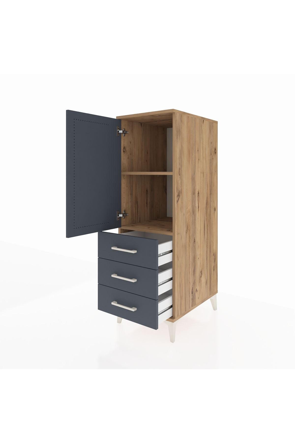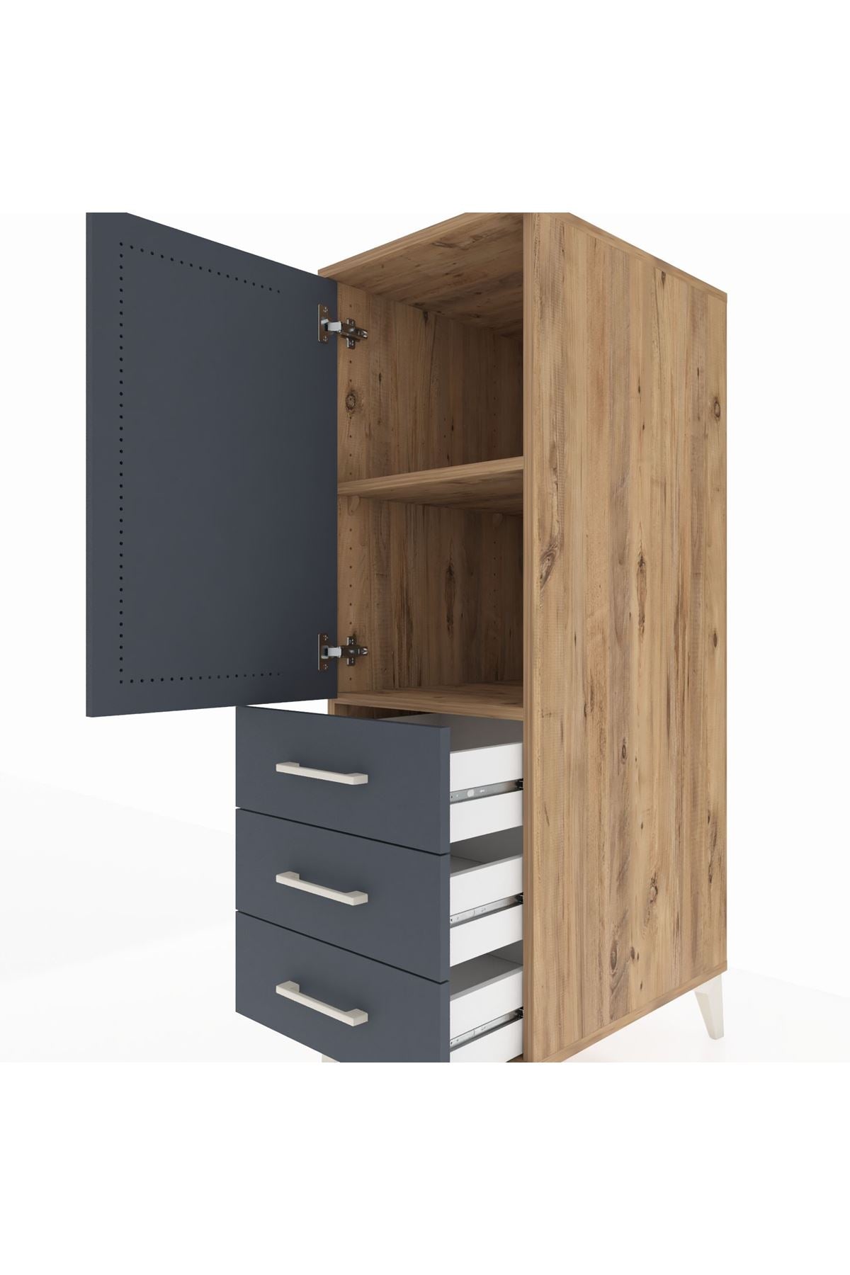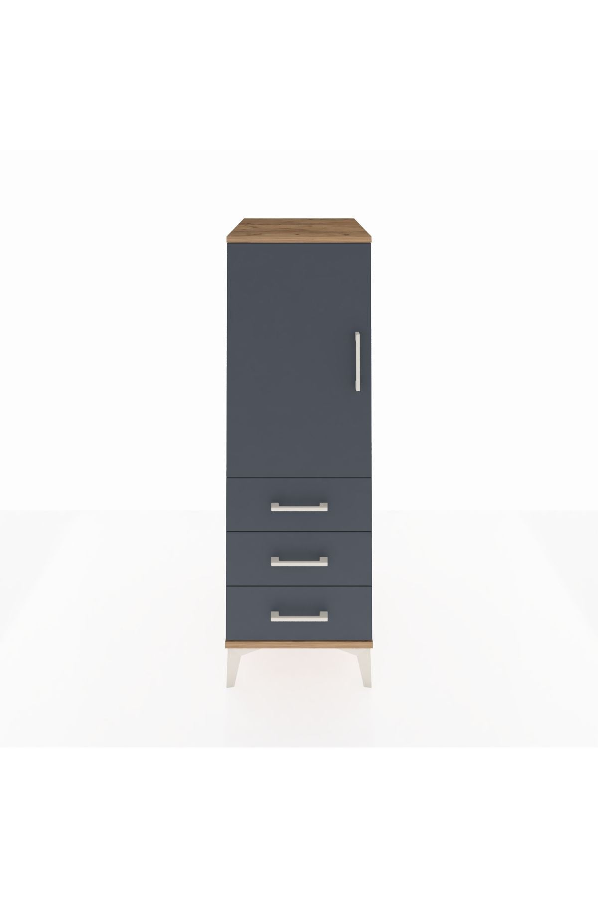 Kronos Dolap 2 Raflı 3 Çekmeceli Tek Kapaklı 44x59x134 Çam-Antrasit