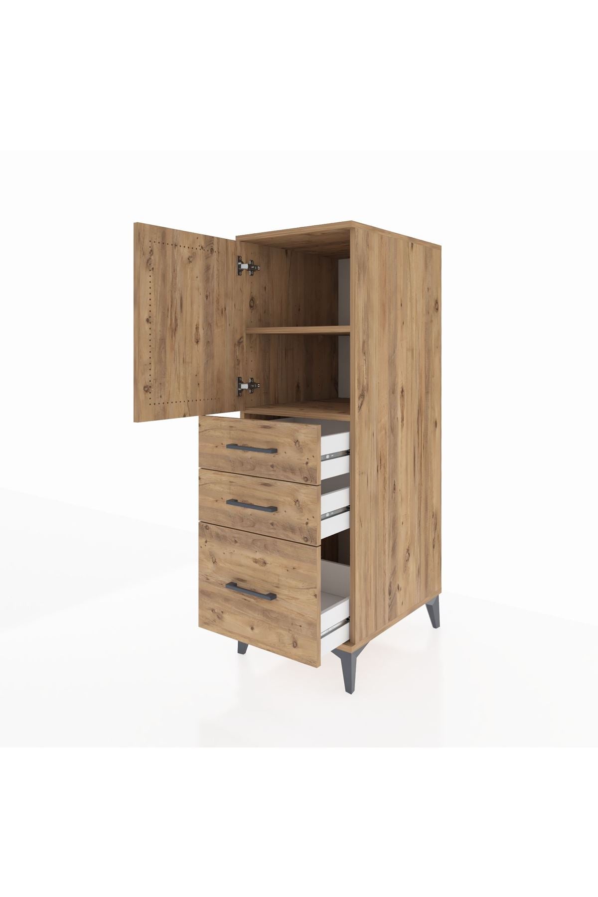 Kronos Dolap 2 Raflı 3 Çekmeceli Tek Kapaklı 44x59x134 Çam-Çam