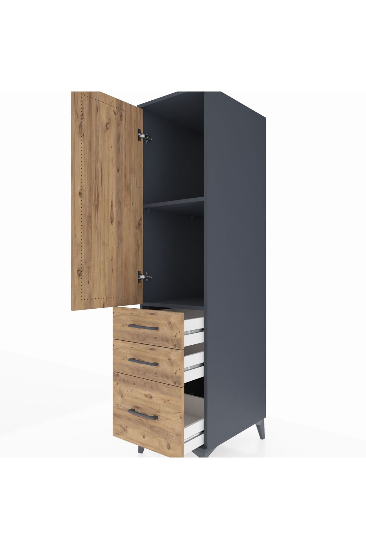 Kronos Dolap 2 Raflı 3 Çekmeceli Tek Kapaklı 44x59x182 Antrasit-Çam