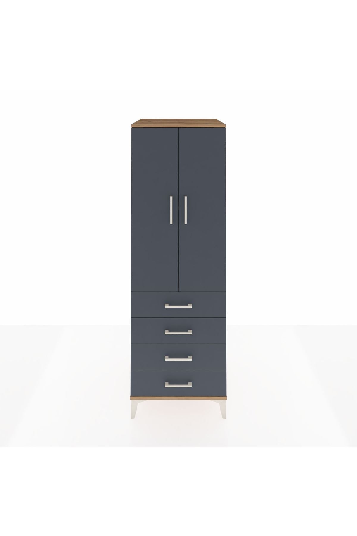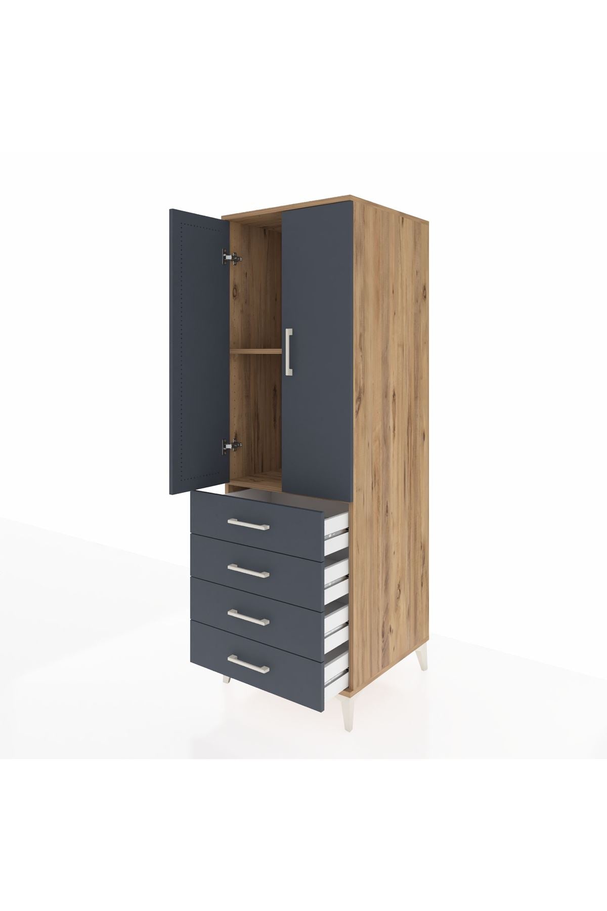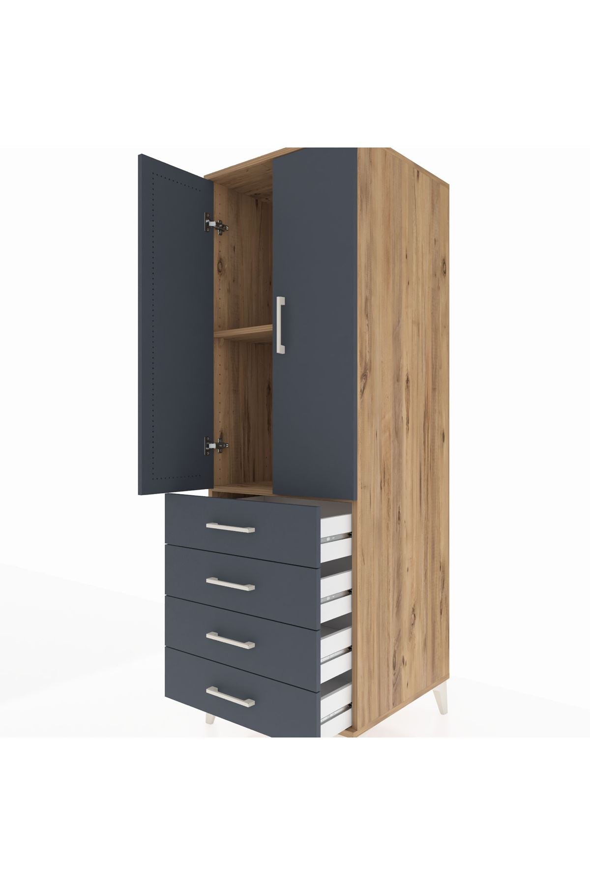 Kronos Dolap 2 Raflı 4 Çekmeceli 2 Kapaklı 60x59x182 Çam-Antrasit