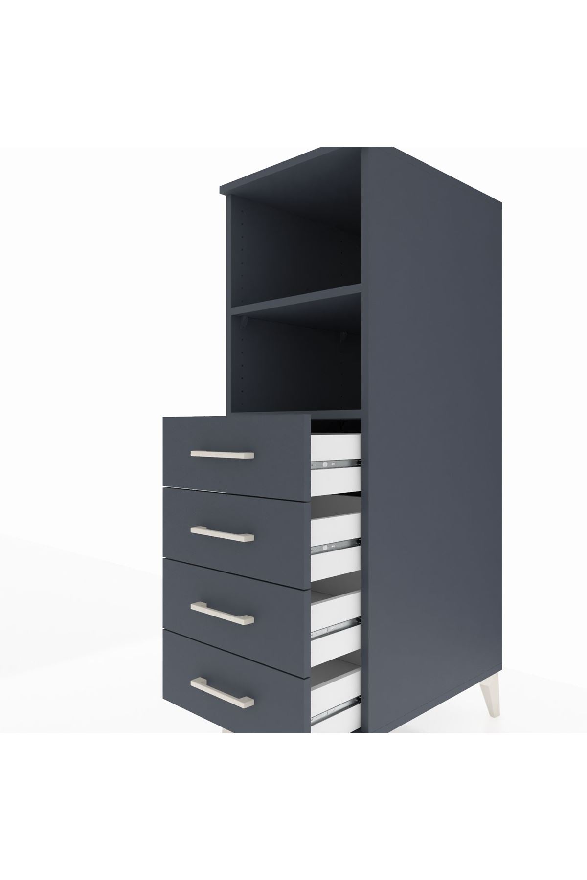 Kronos Dolap 2 Raflı 4 Çekmeceli 44x59x134 Antrasit-Antrasit