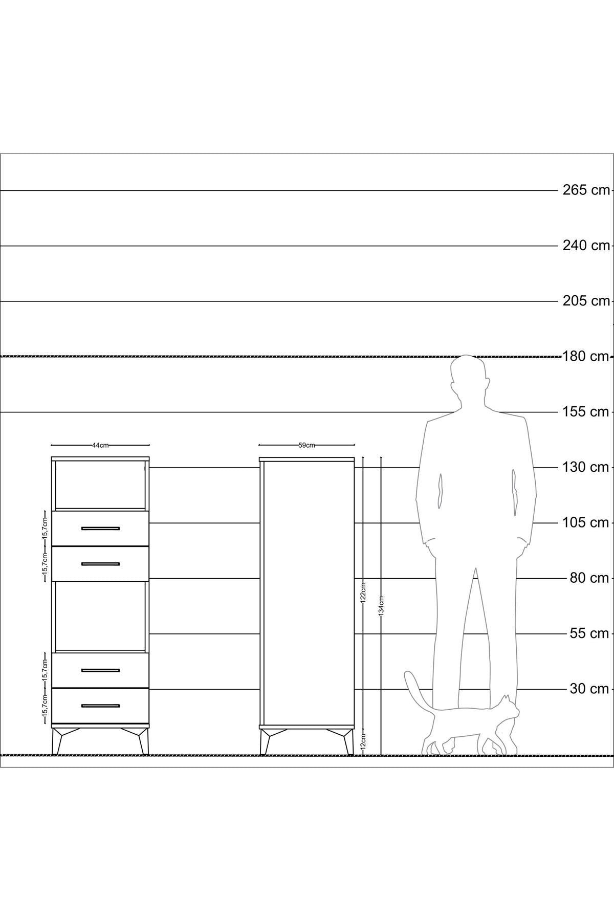 Kronos Dolap 2 Raflı 4 Çekmeceli 44x59x134 Antrasit-Çam