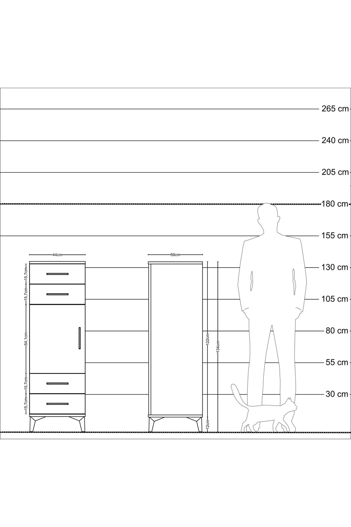 Kronos Dolap 2 Raflı 4 Çekmeceli Tek Kapaklı 44x59x134 Antrasit-Antrasit