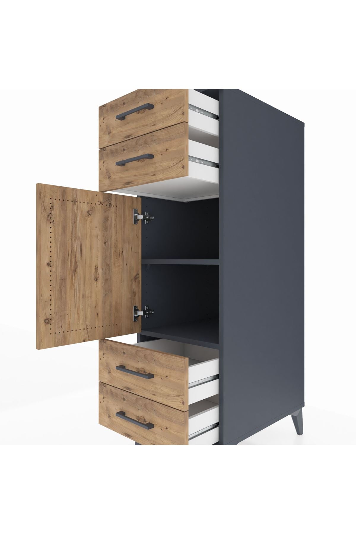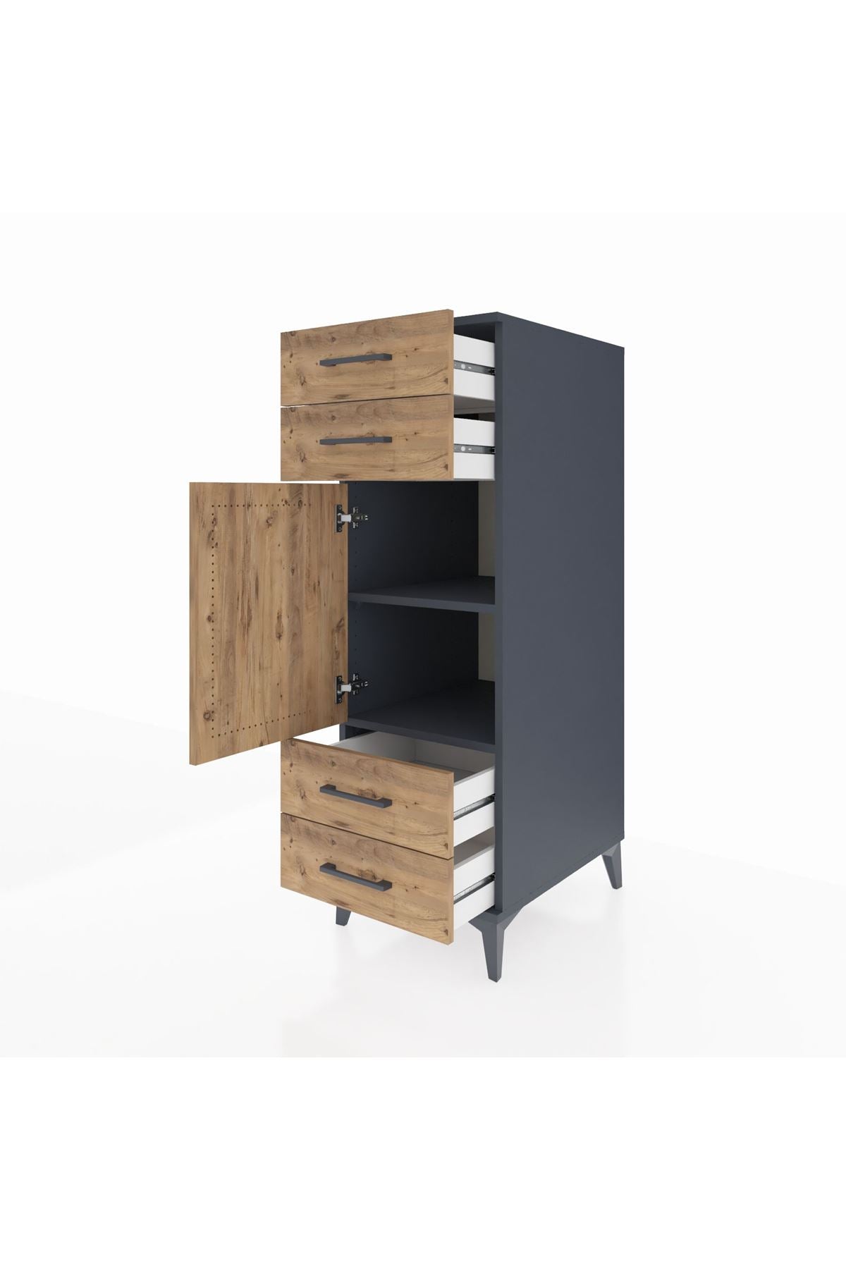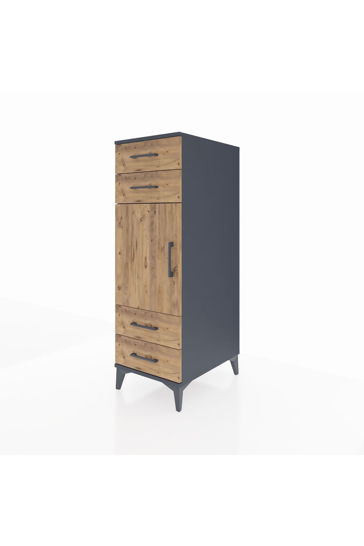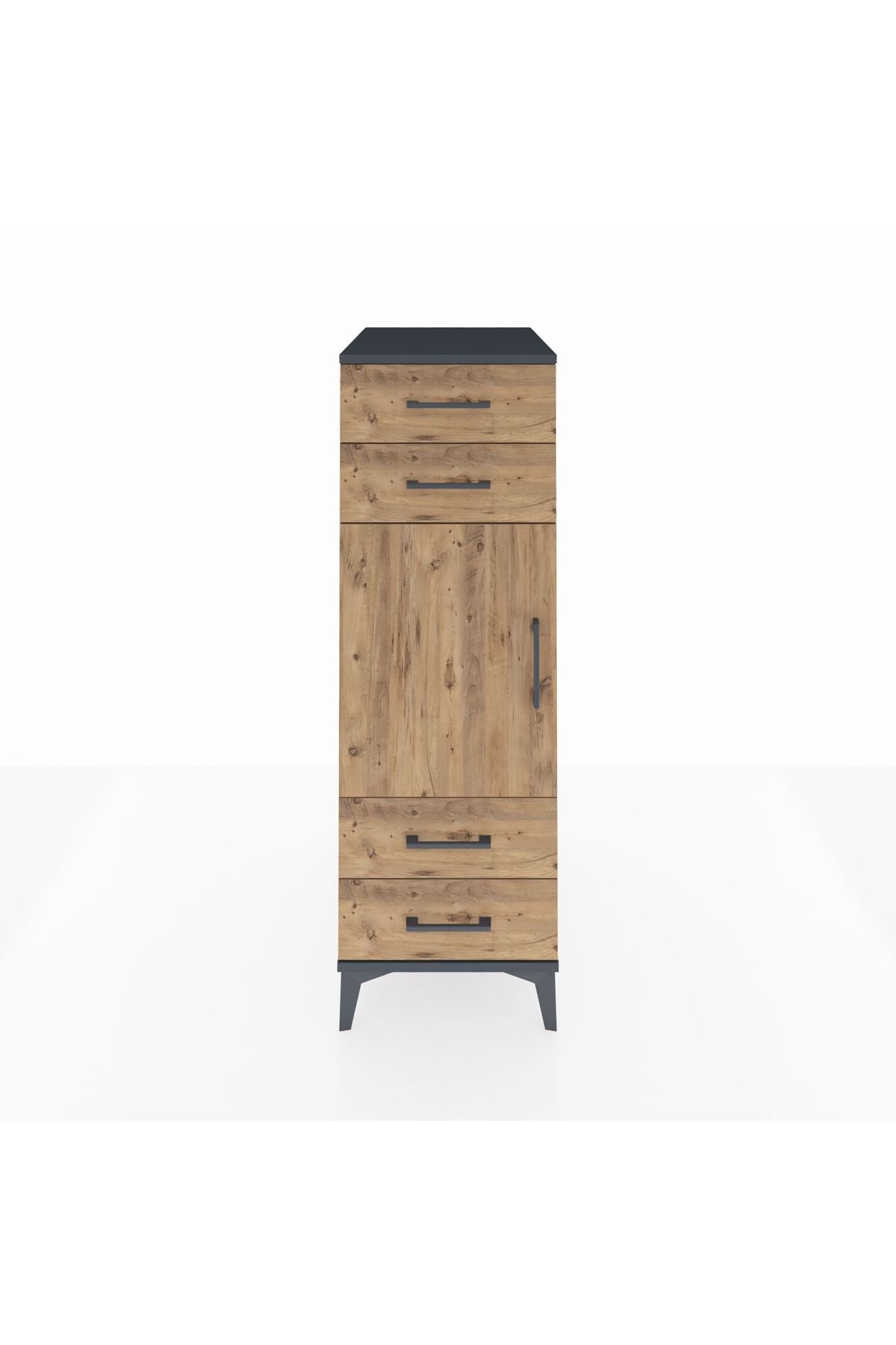 Kronos Dolap 2 Raflı 4 Çekmeceli Tek Kapaklı 44x59x134 Antrasit-Çam