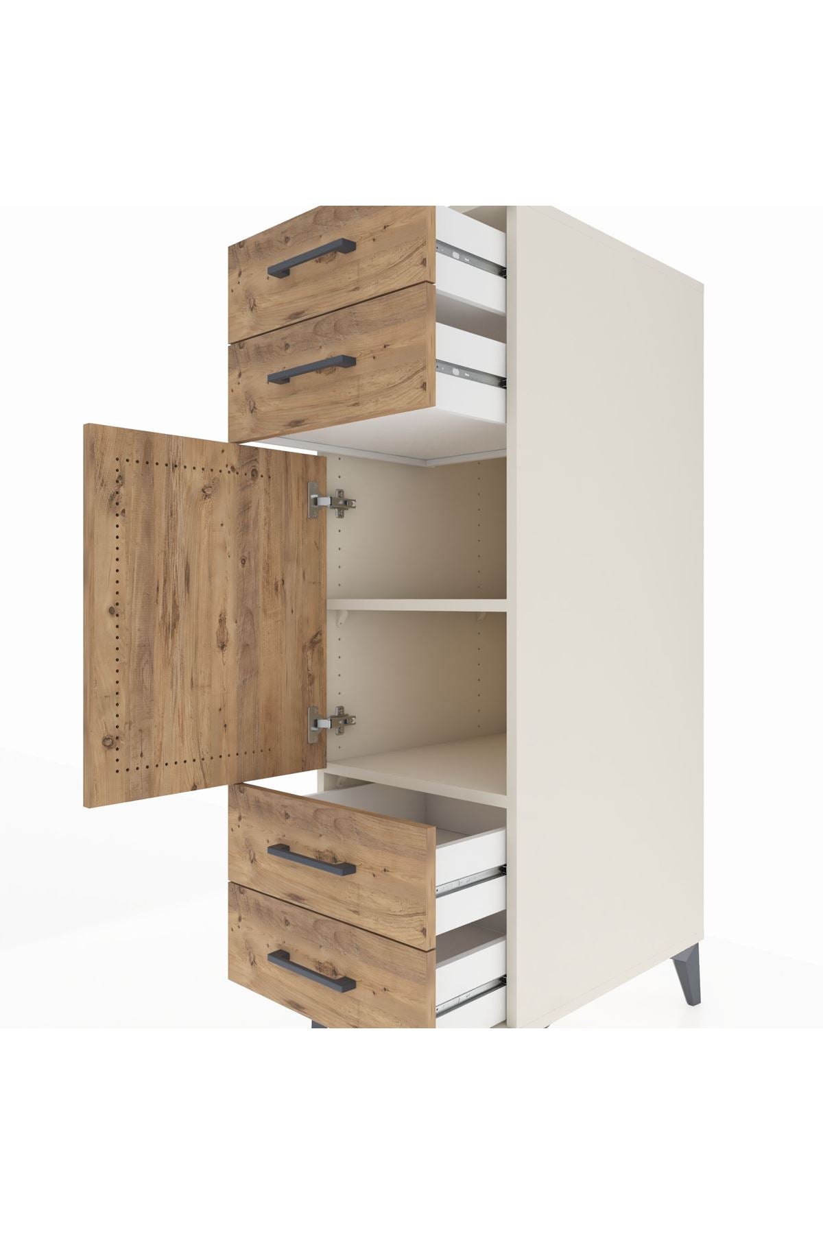 Kronos Dolap 2 Raflı 4 Çekmeceli Tek Kapaklı 44x59x134 Aytaşı-Çam
