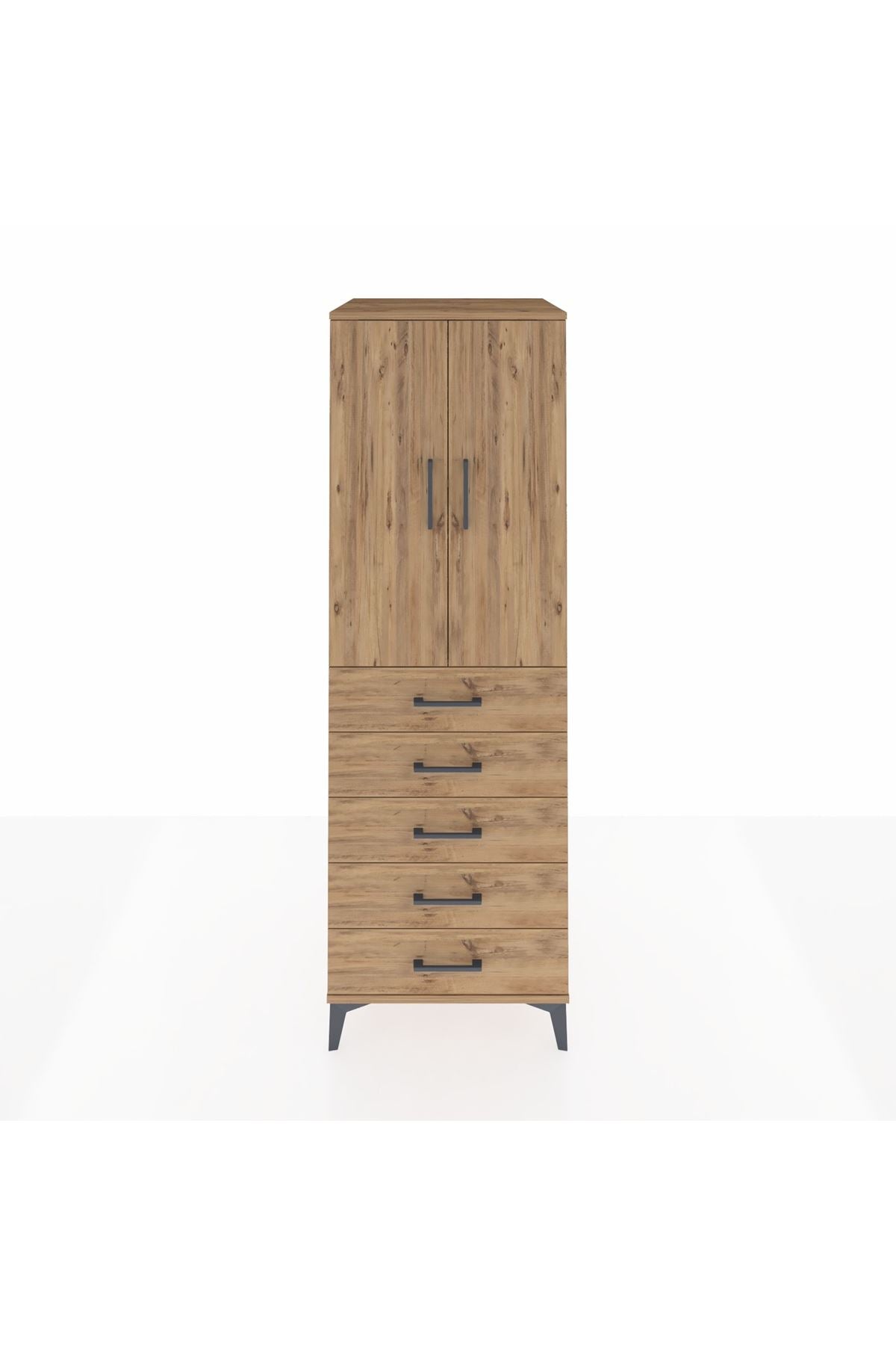 Kronos Dolap 2 Raflı 5 Çekmeceli 2 Kapaklı 60x59x182 Çam-Çam