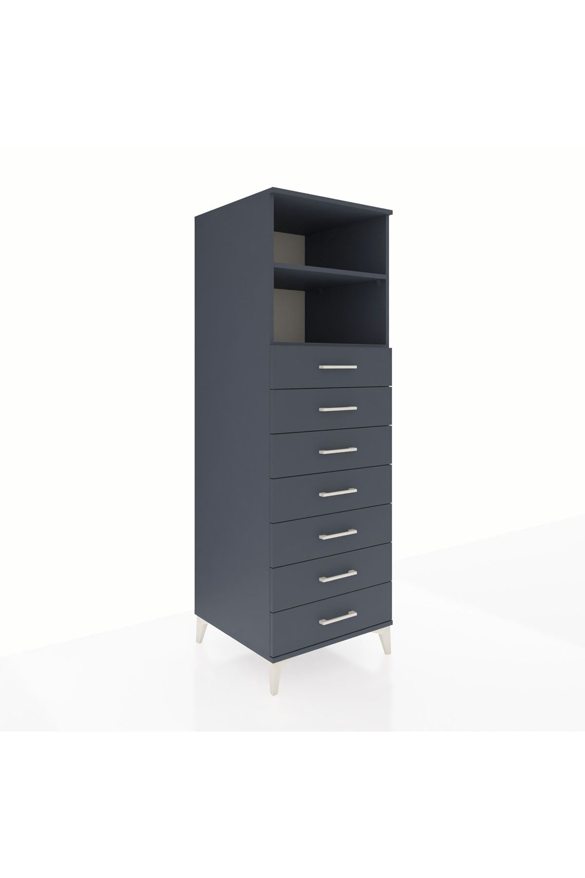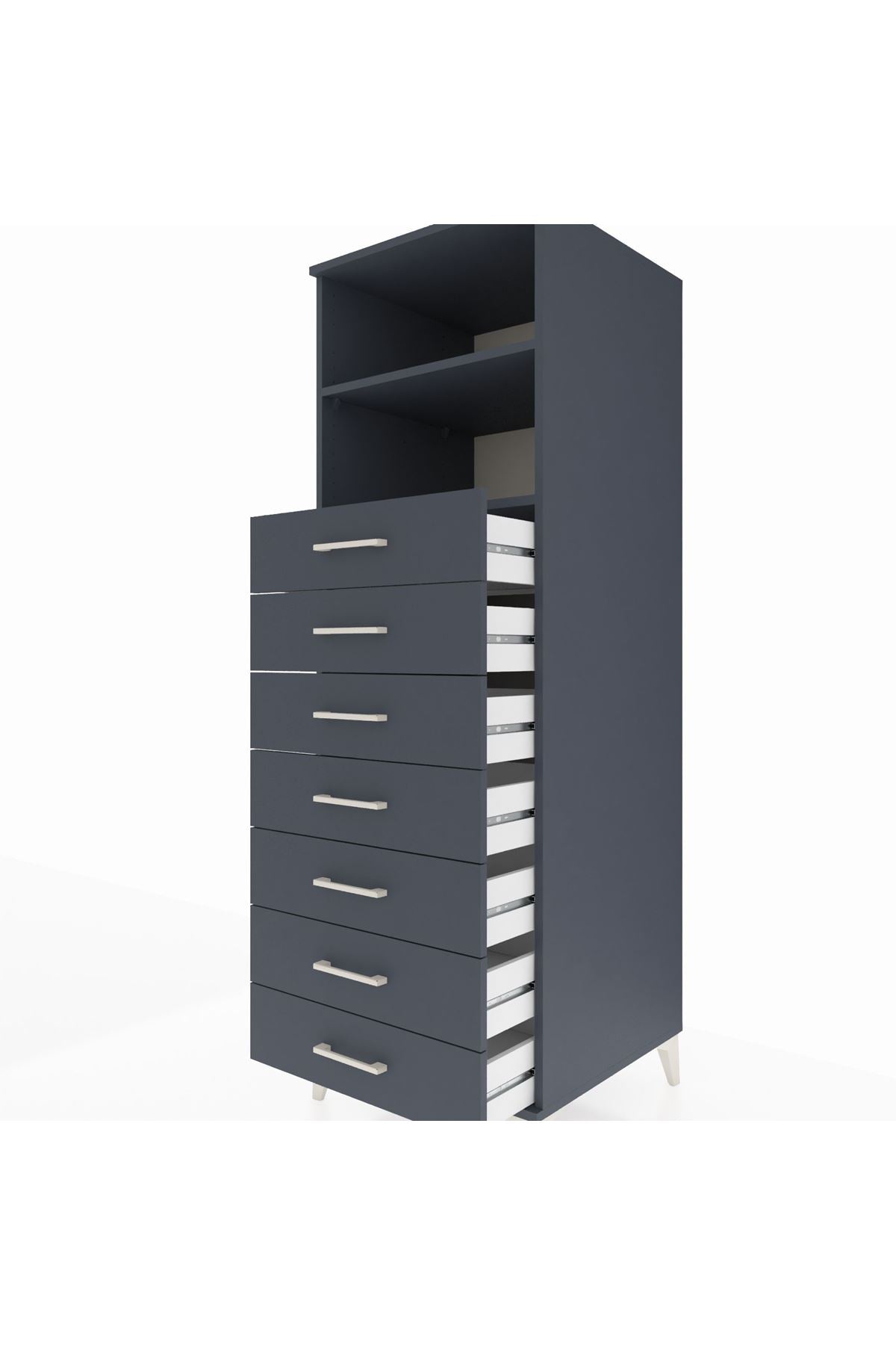 Kronos Dolap 2 Raflı 7 Çekmeceli 60x59x182 Antrasit-Antrasit
