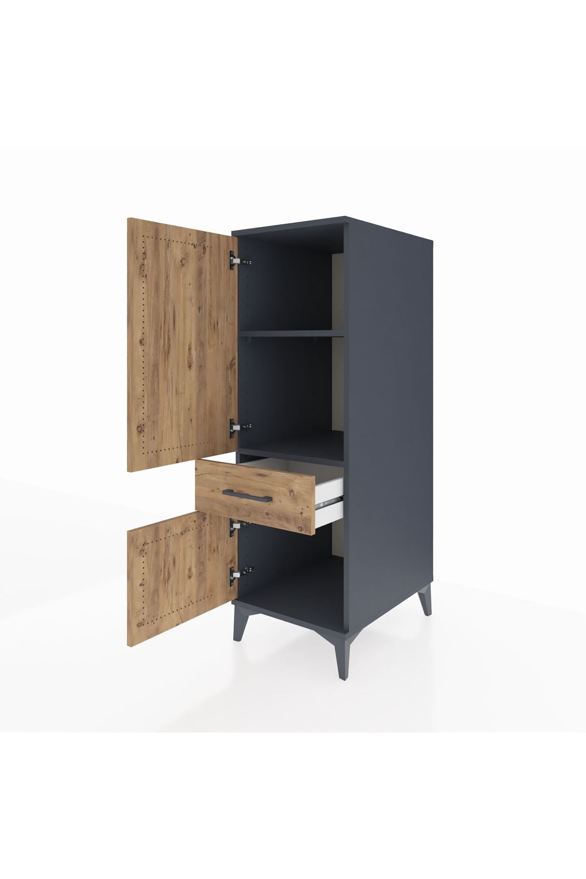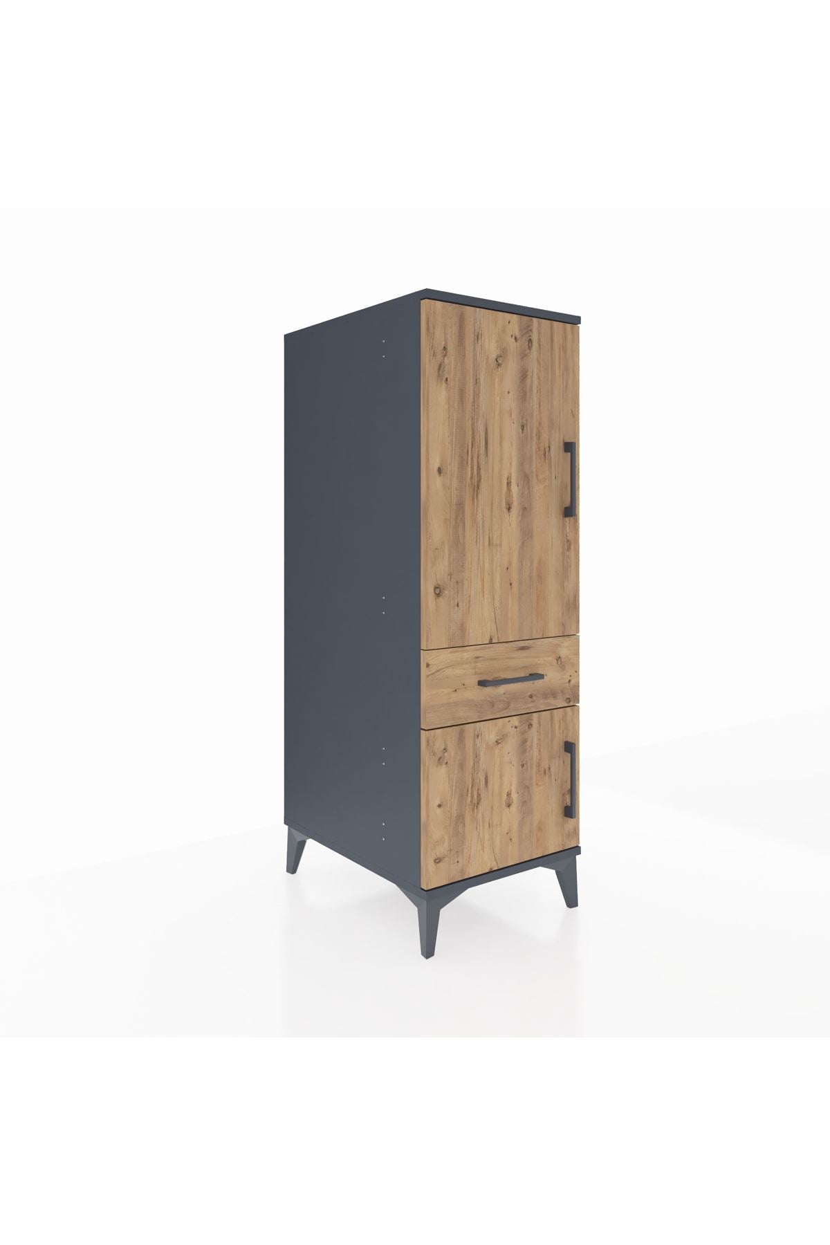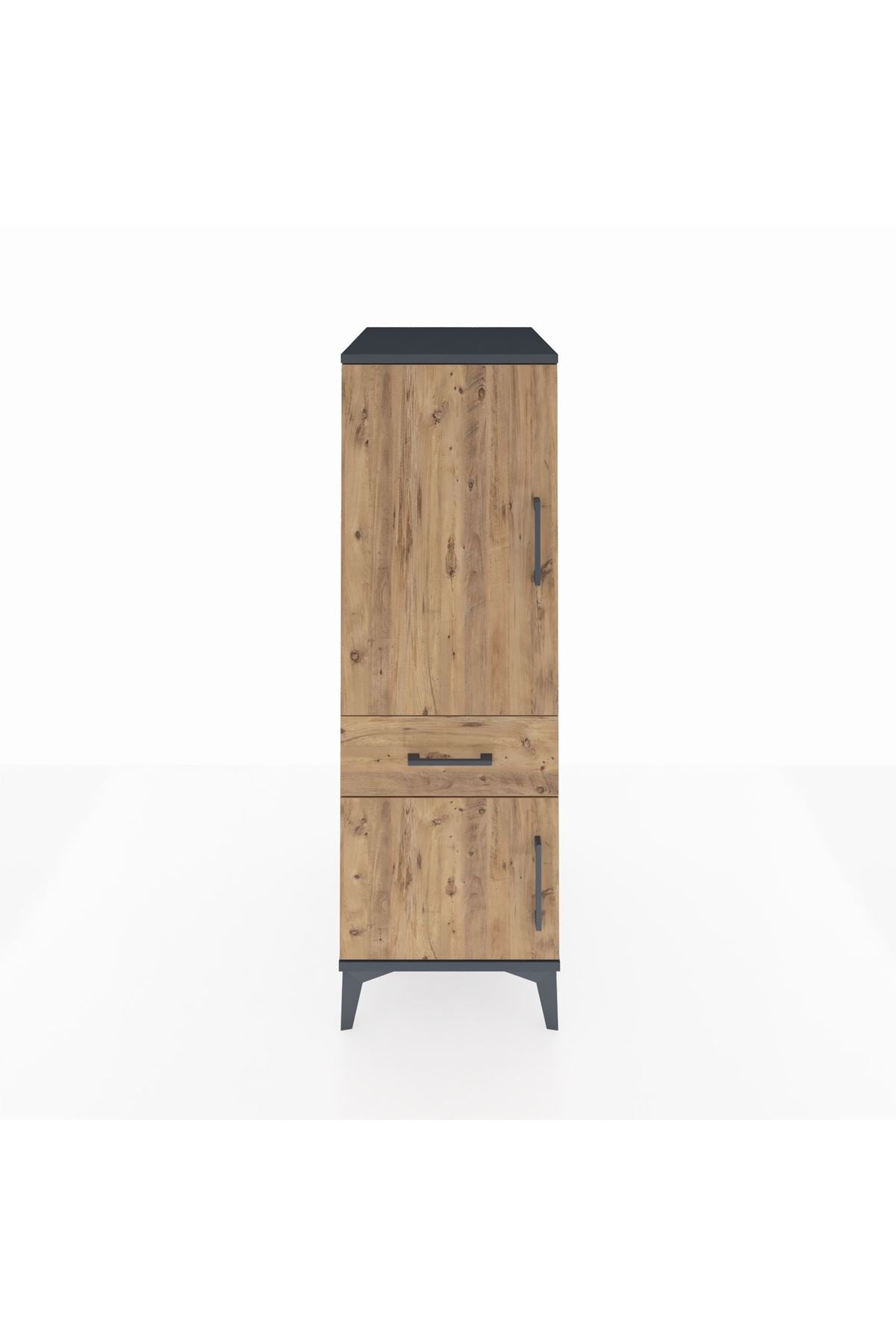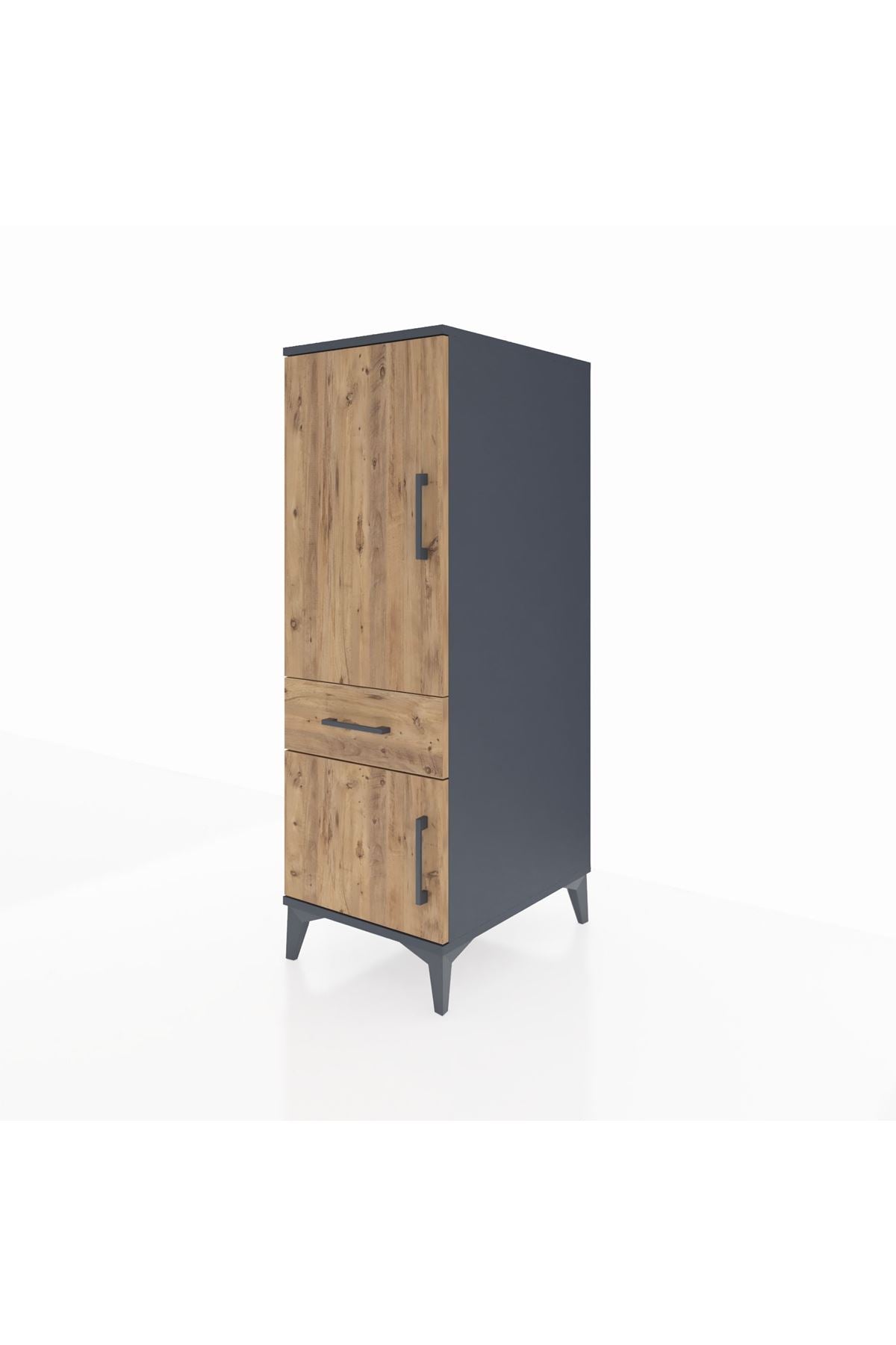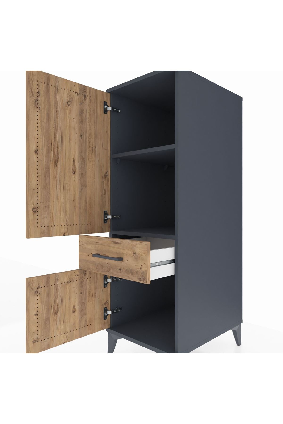 Kronos Dolap 2 Raflı Tek Çekmeceli 2 Kapaklı 44x59x134 Antrasit-Çam