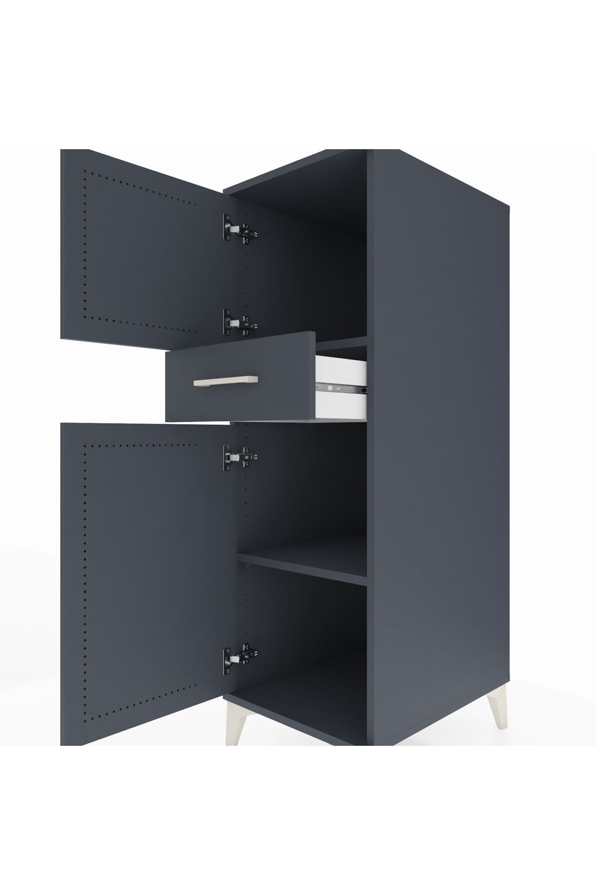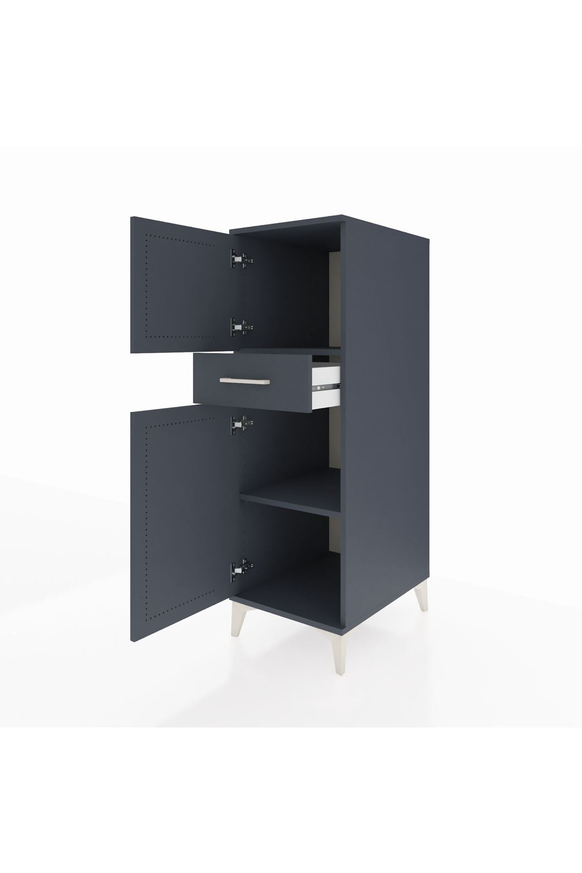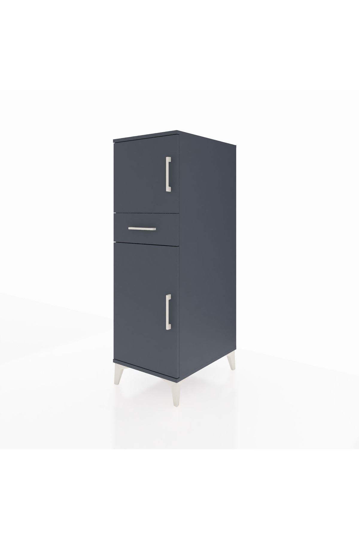 Kronos Dolap 2 Raflı Tek Çekmeceli 2 Kapaklı 44x59x134 Antrasit-Antrasit