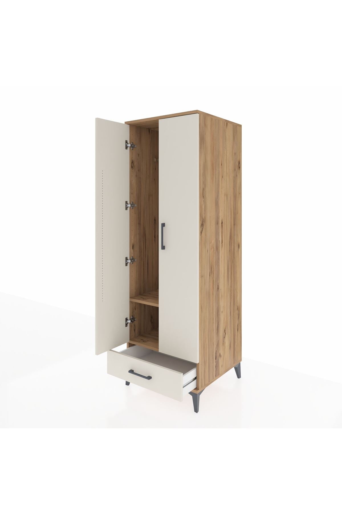 Kronos Dolap 2 Raflı Tek Çekmeceli Tek Askılı 60x59x182 Çam-Aytaşı