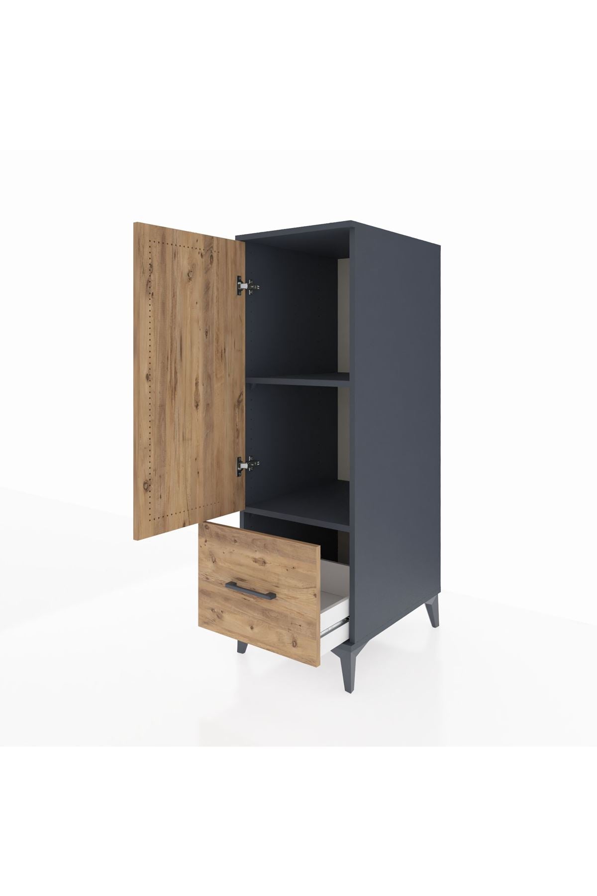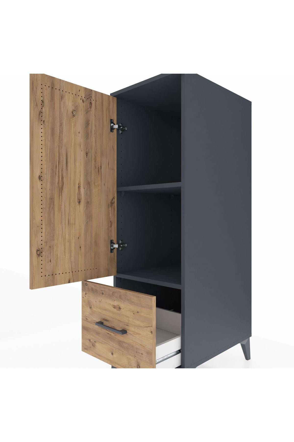 Kronos Dolap 2 Raflı Tek Çekmeceli Tek Kapaklı 44x59x134 Antrasit-Çam