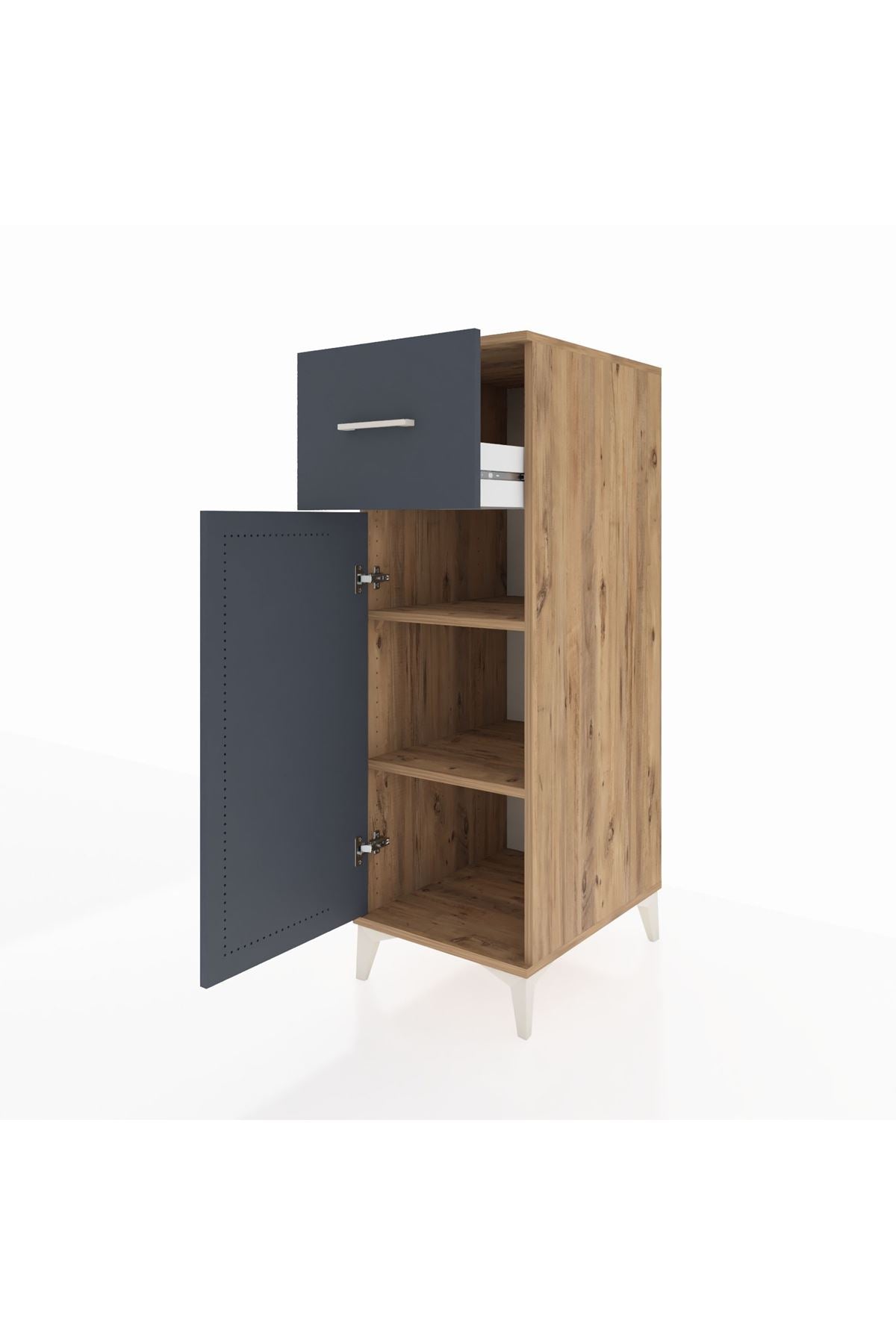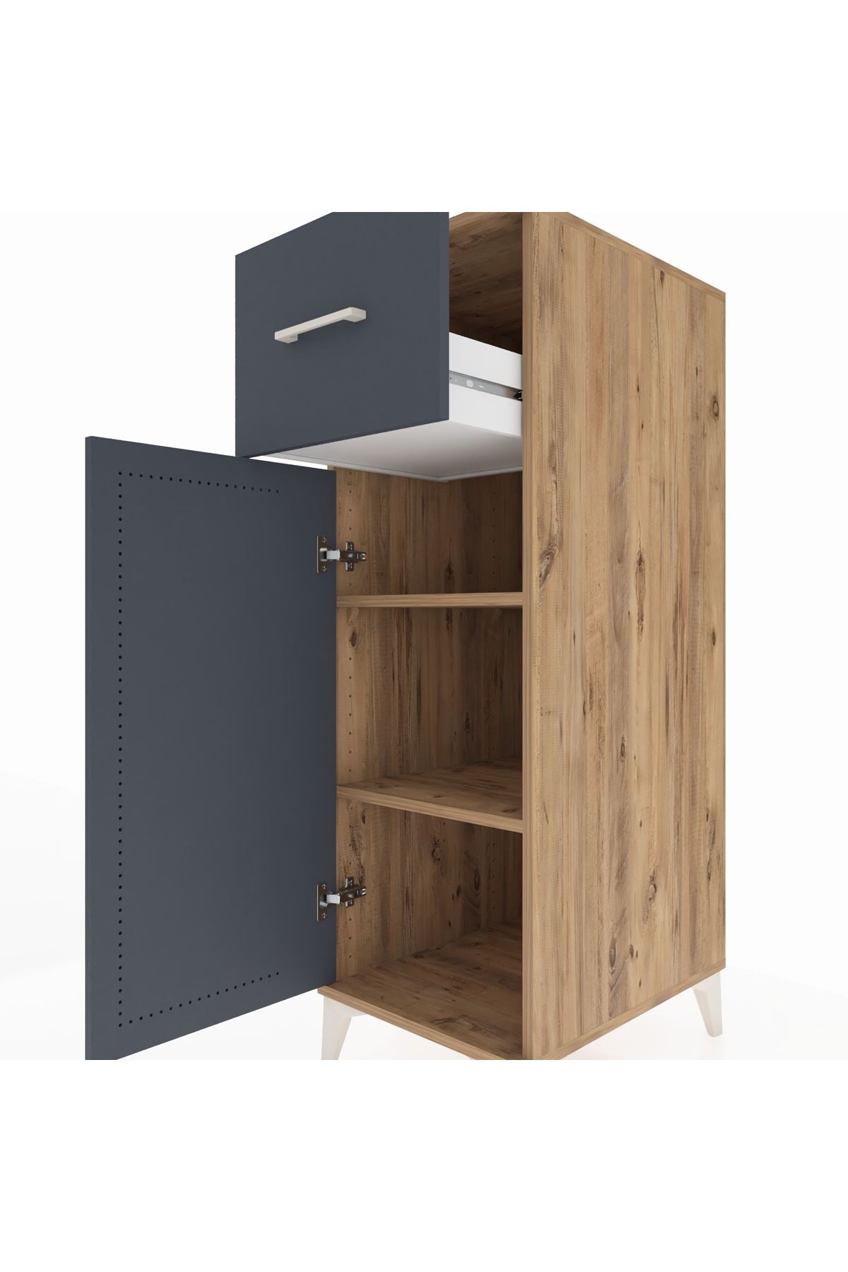 Kronos Dolap 2 Raflı Tek Çekmeceli Tek Kapaklı 44x59x134 Çam-Antrasit