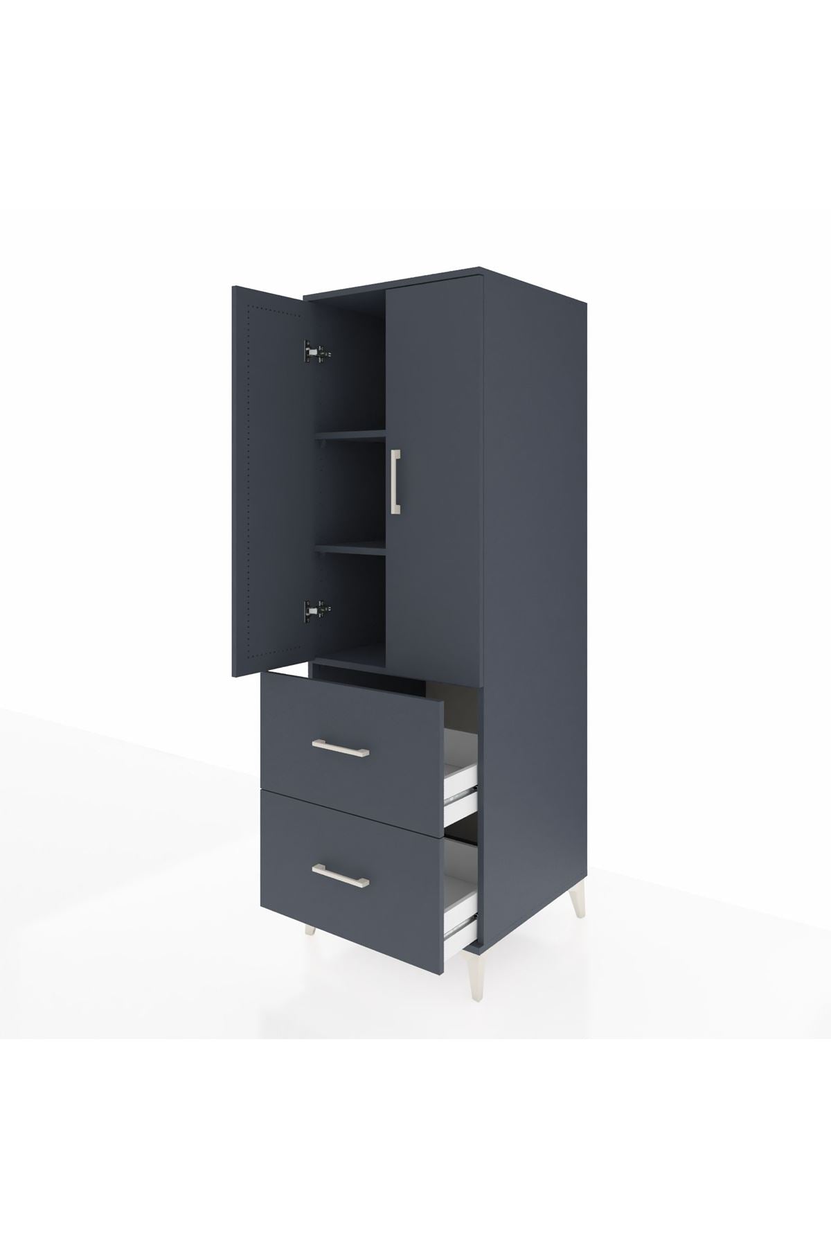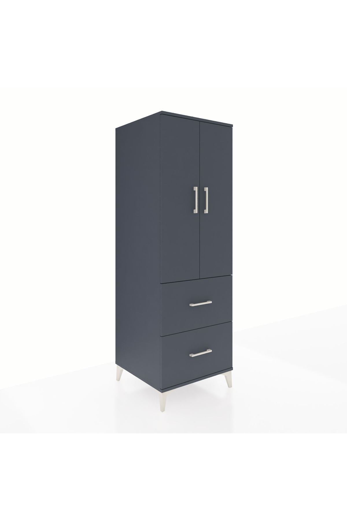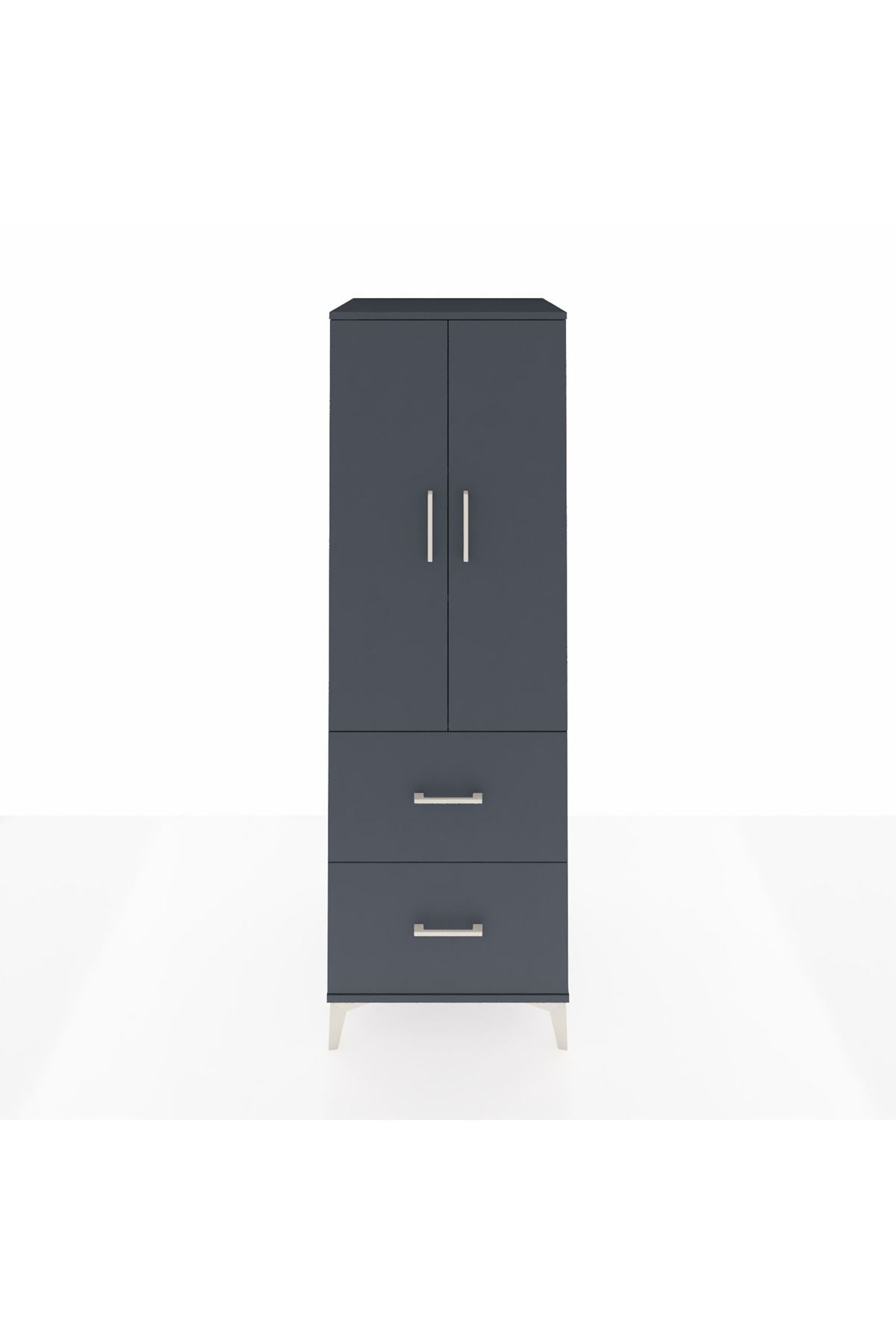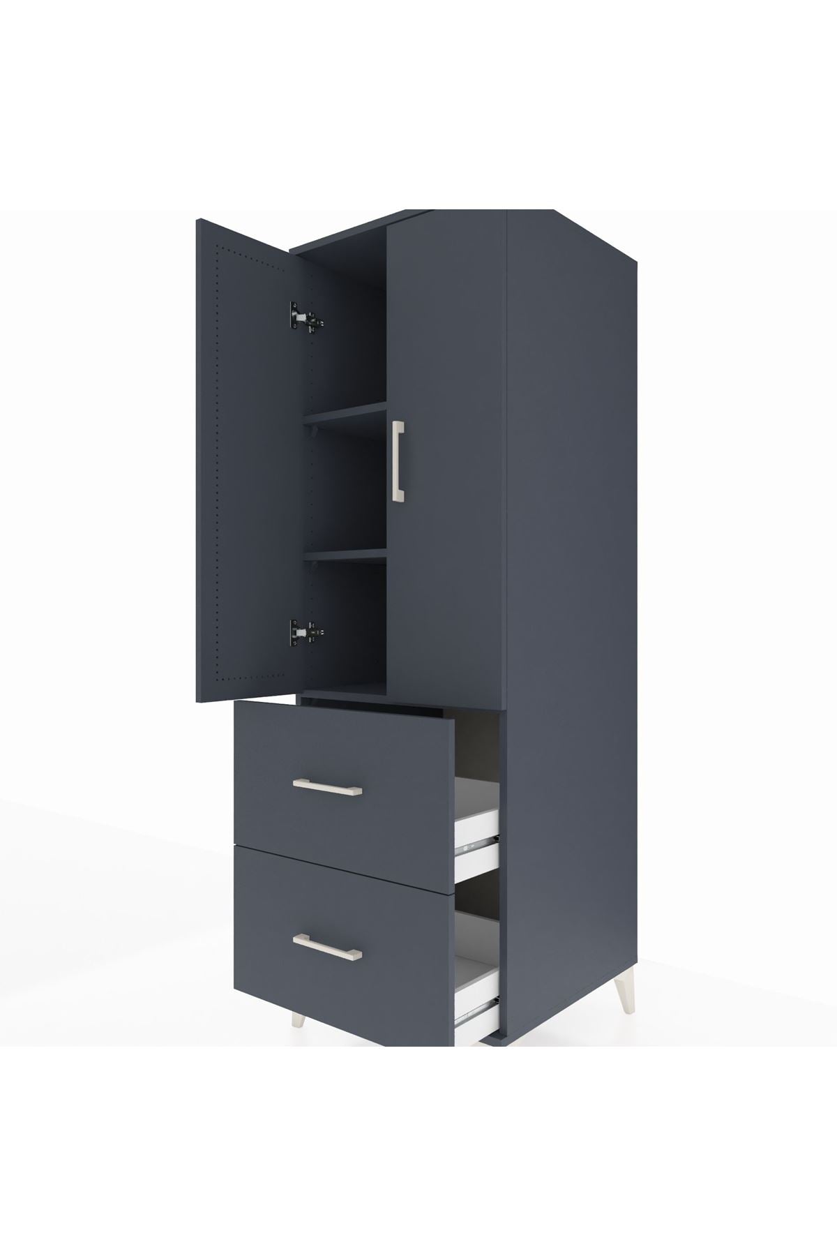 Kronos Dolap 3 Raflı 2 Çekmeceli 2 Kapaklı 60x59x182 Antrasit-Antrasit