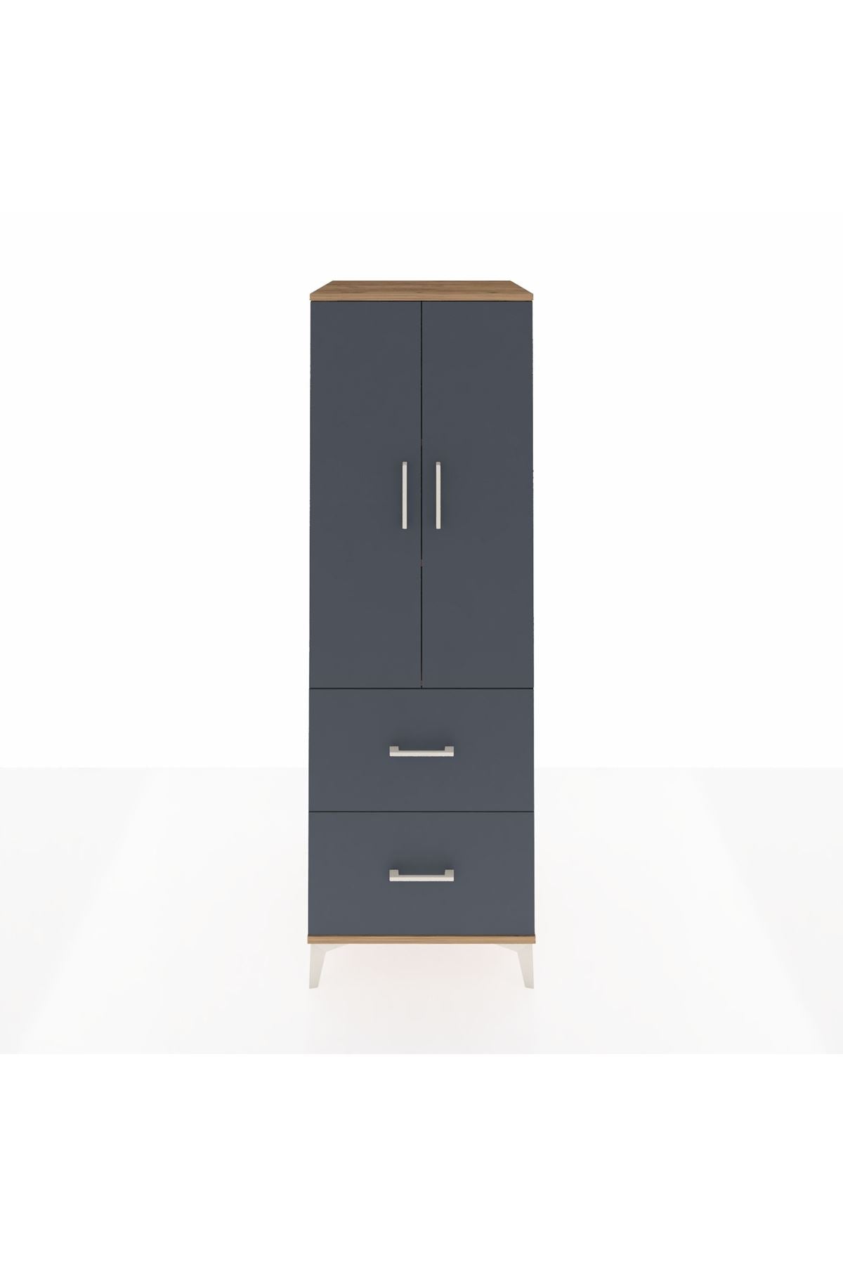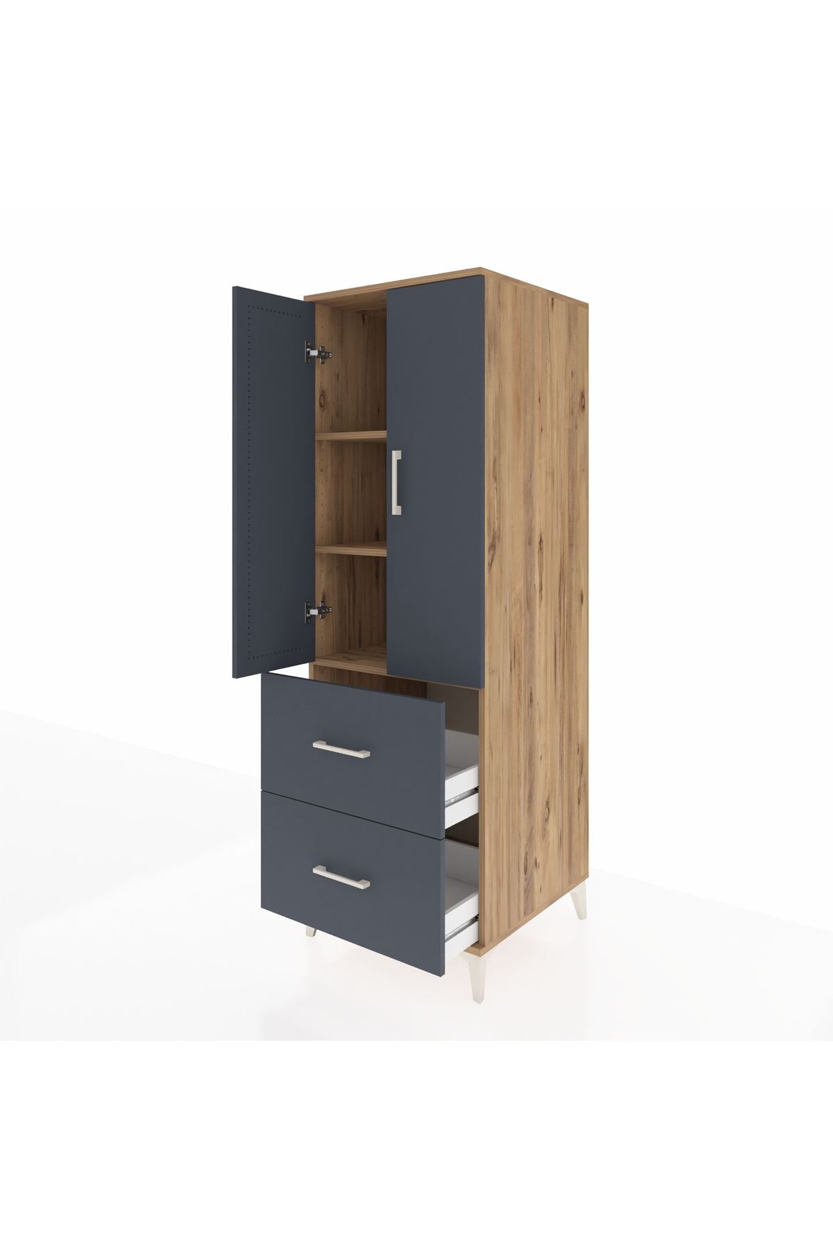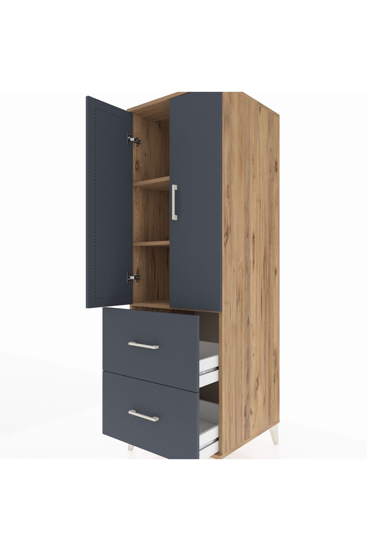 Kronos Dolap 3 Raflı 2 Çekmeceli 2 Kapaklı 60x59x182 Çam-Antrasit